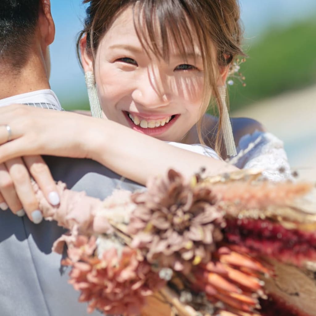 新婦様の笑顔とブーケの一枚。まぶしい笑顔が最高です!