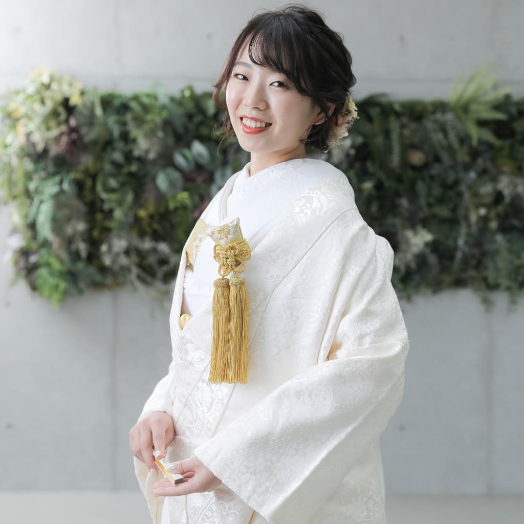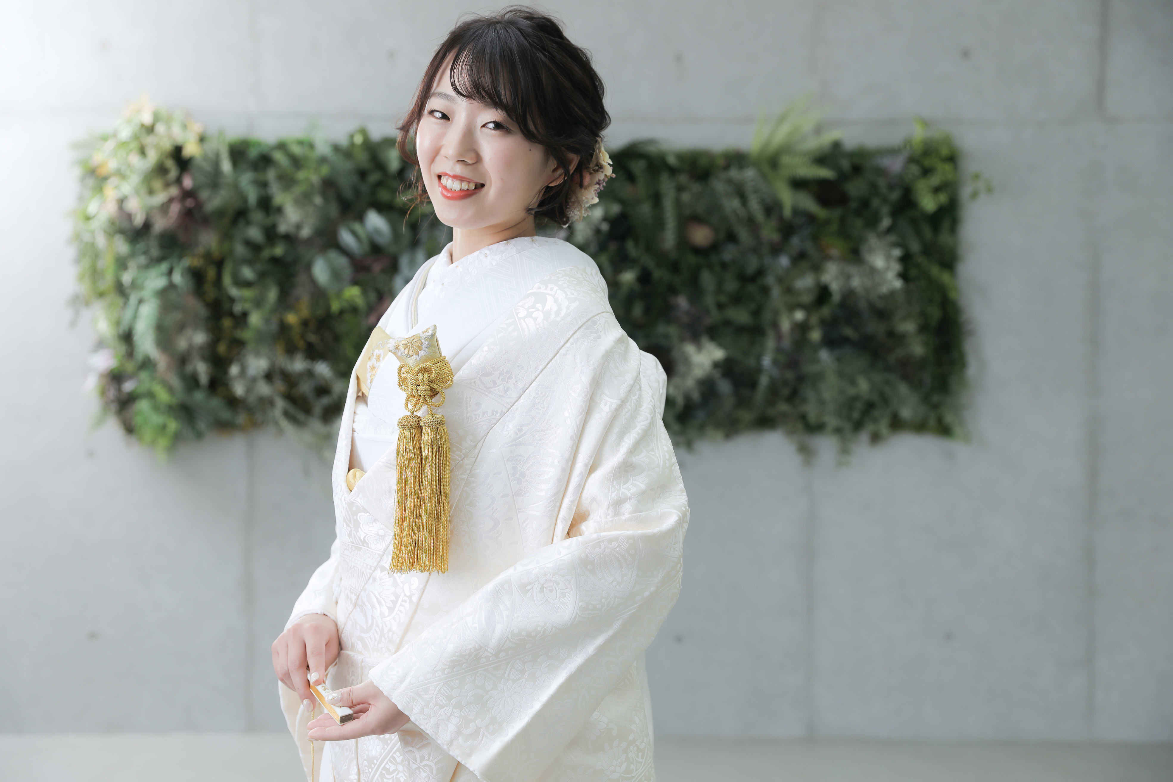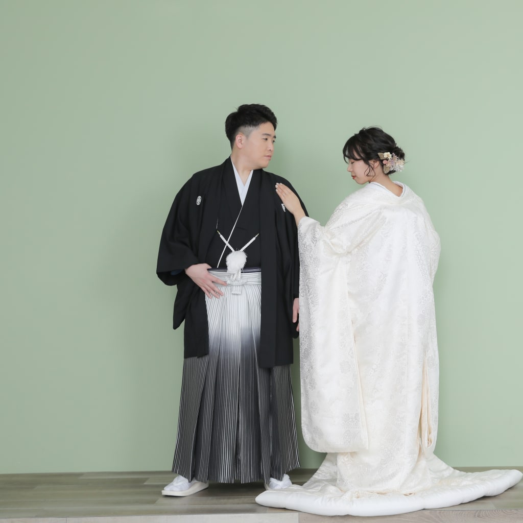 ピンクのお花の中に白無垢と黒紋付がとっても映えてます!!