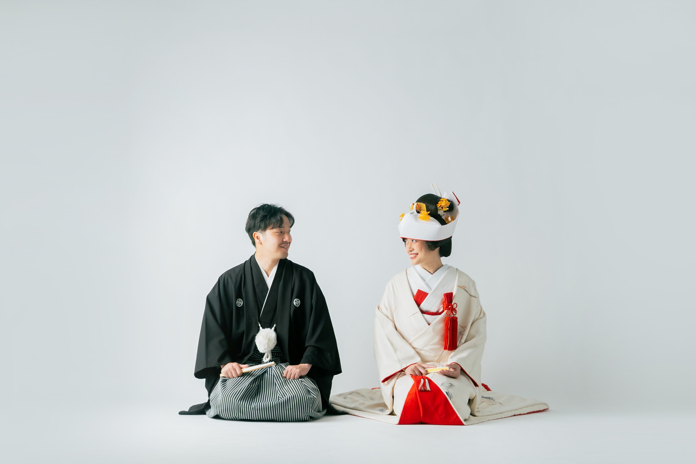新郎様は扇子を使ってかっこよく。キリッとした表情がとても似合っていますね!