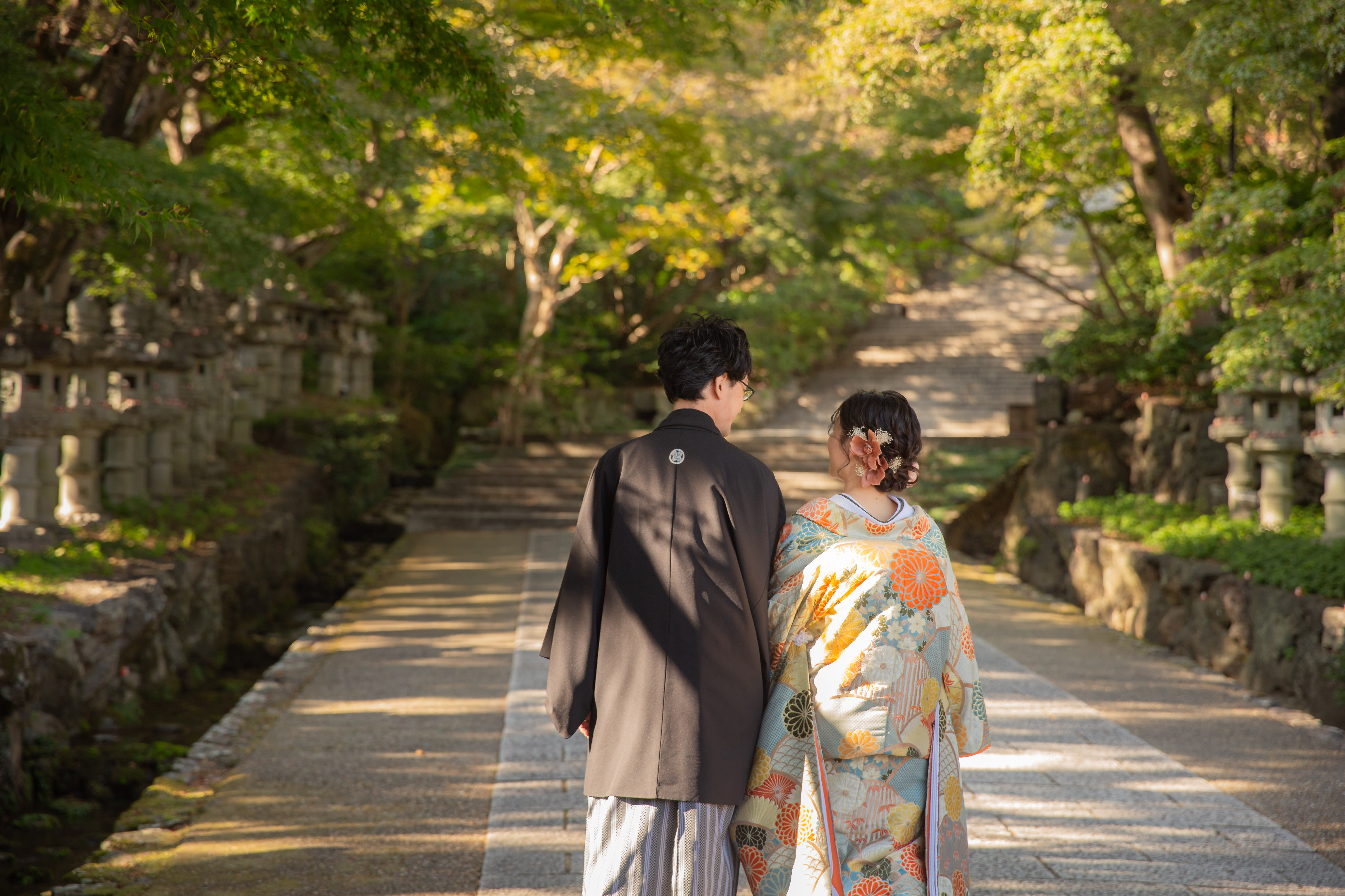 "勝運の寺" 勝尾寺で、縁起のよい結婚写真を