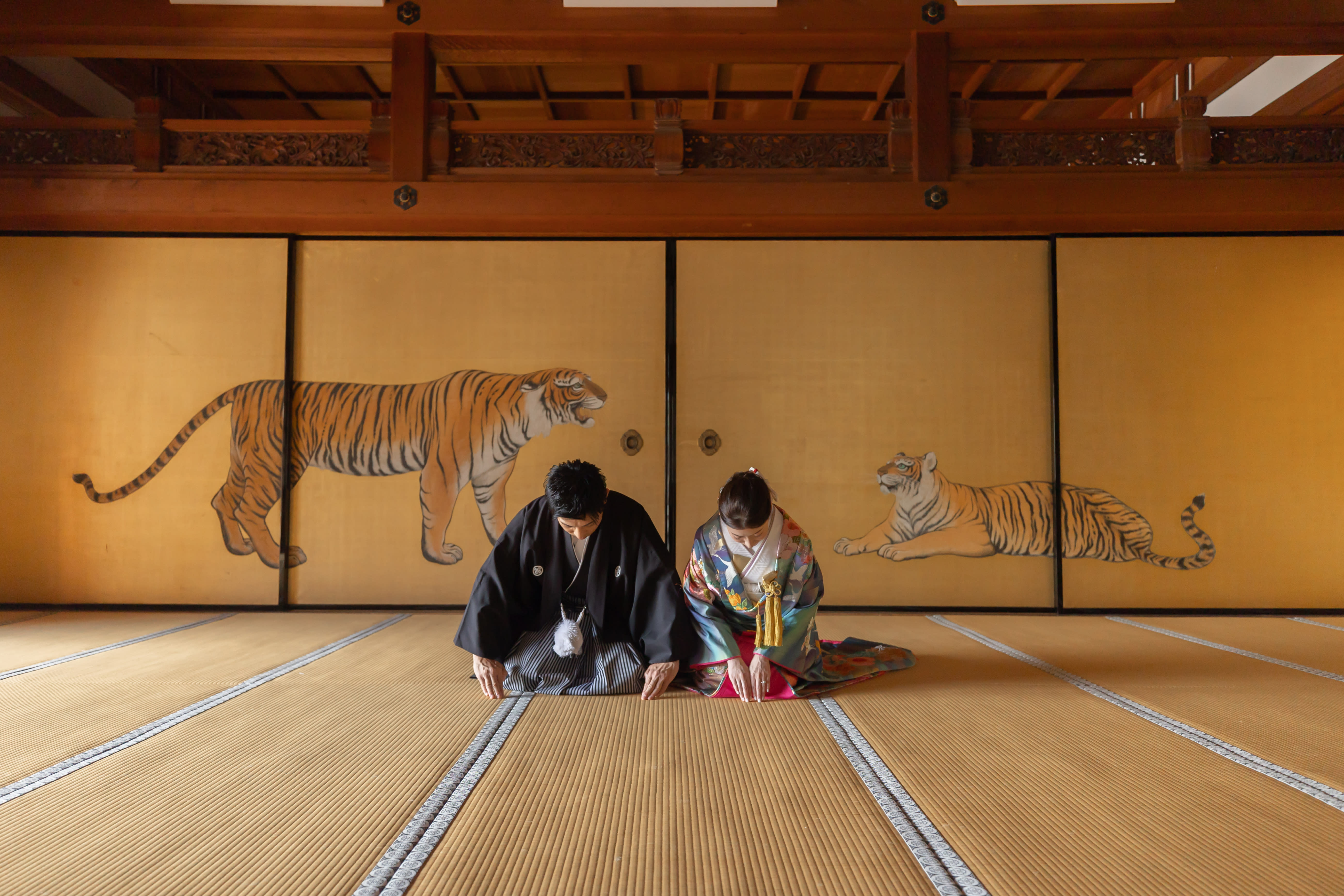 虎の襖の前で正座ご挨拶カット♡