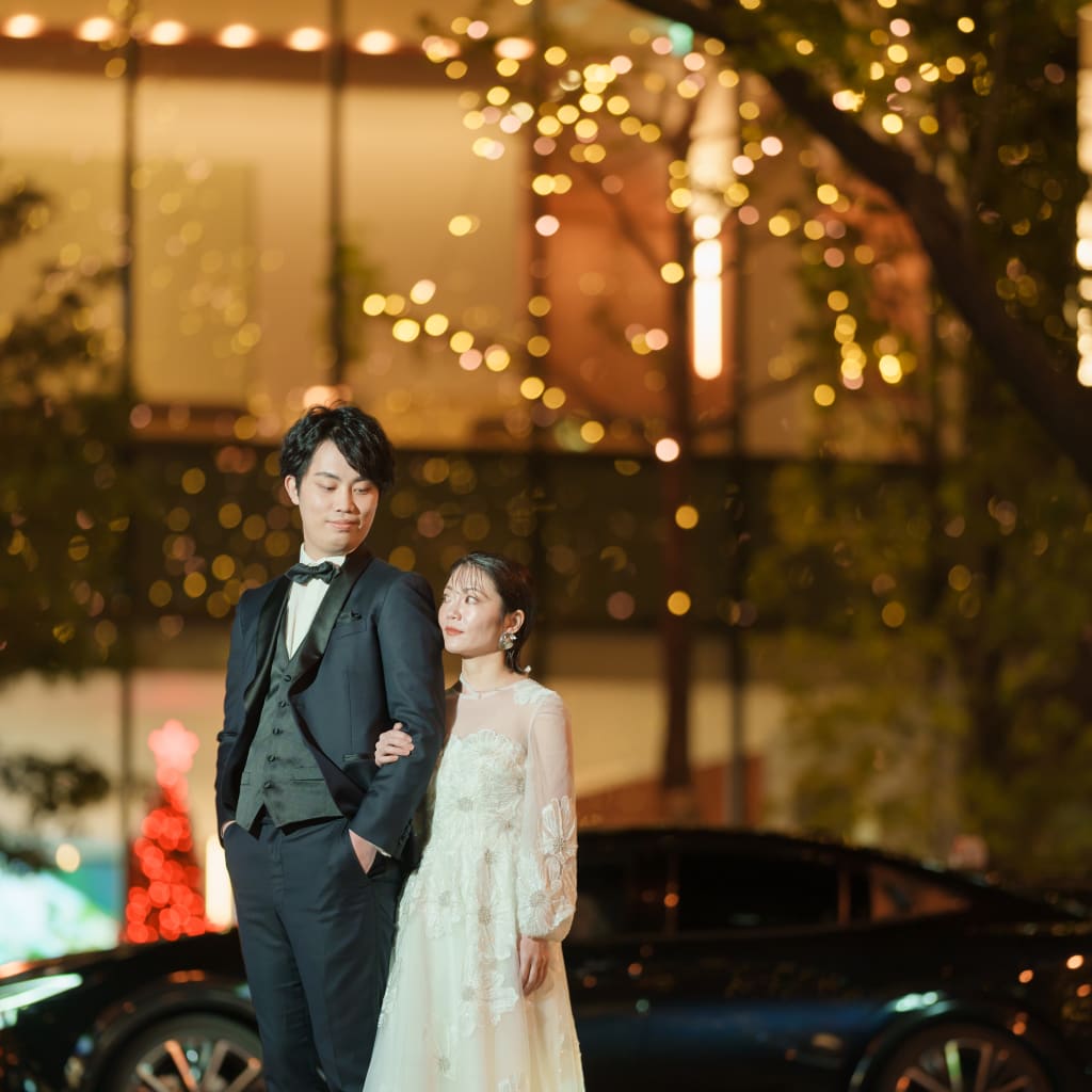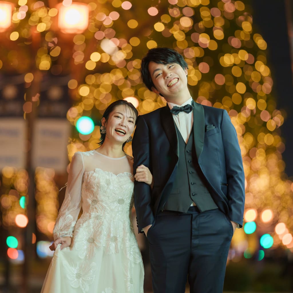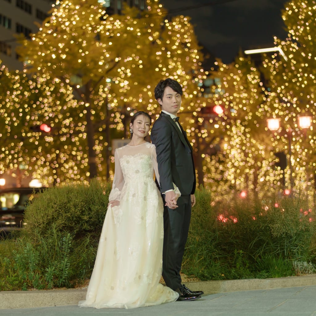 イルミネーションと新婦様 どちらもキラキラ美しいです^^