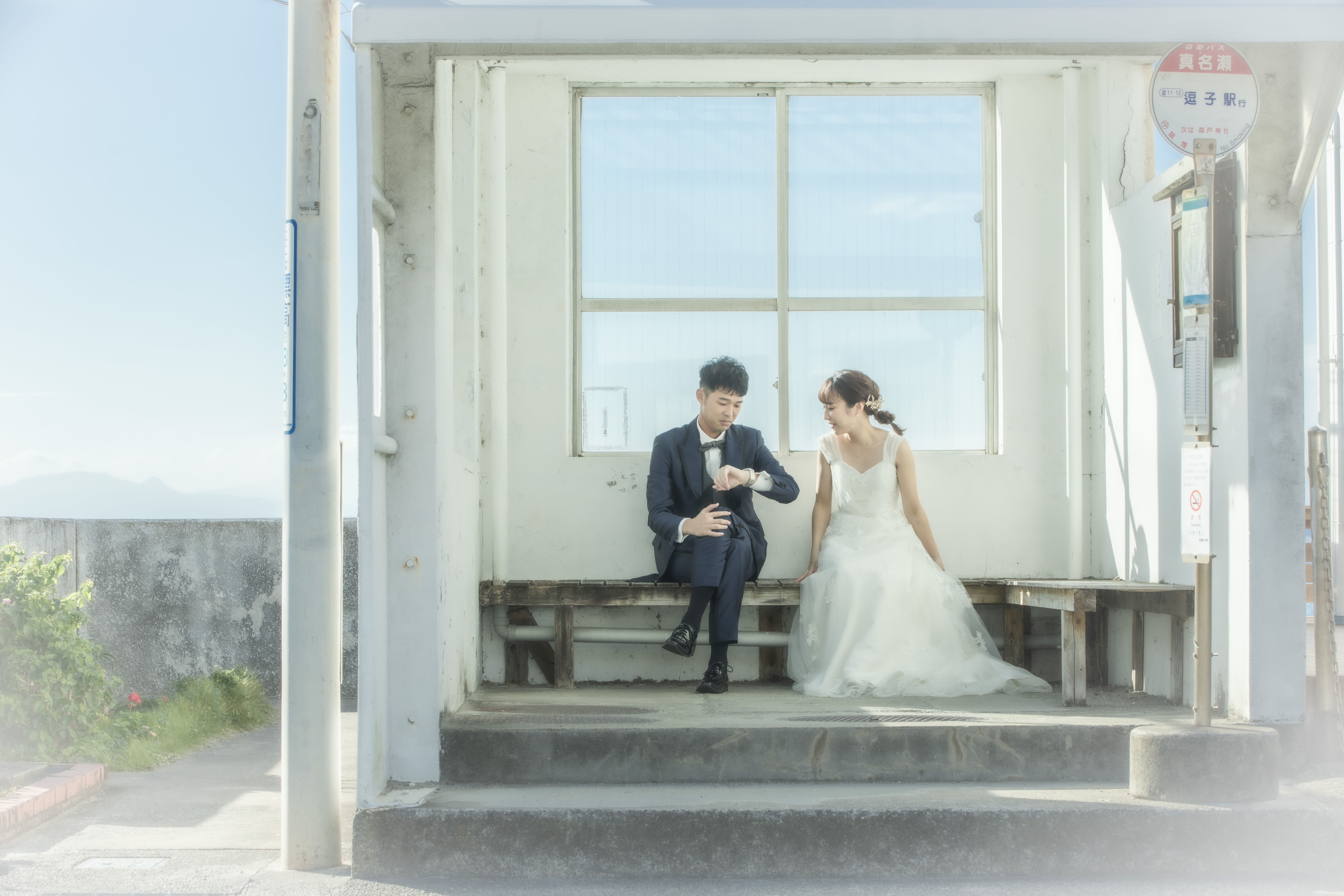 柔らかな光りが差し込むバス停はお二人同様ポカポカです