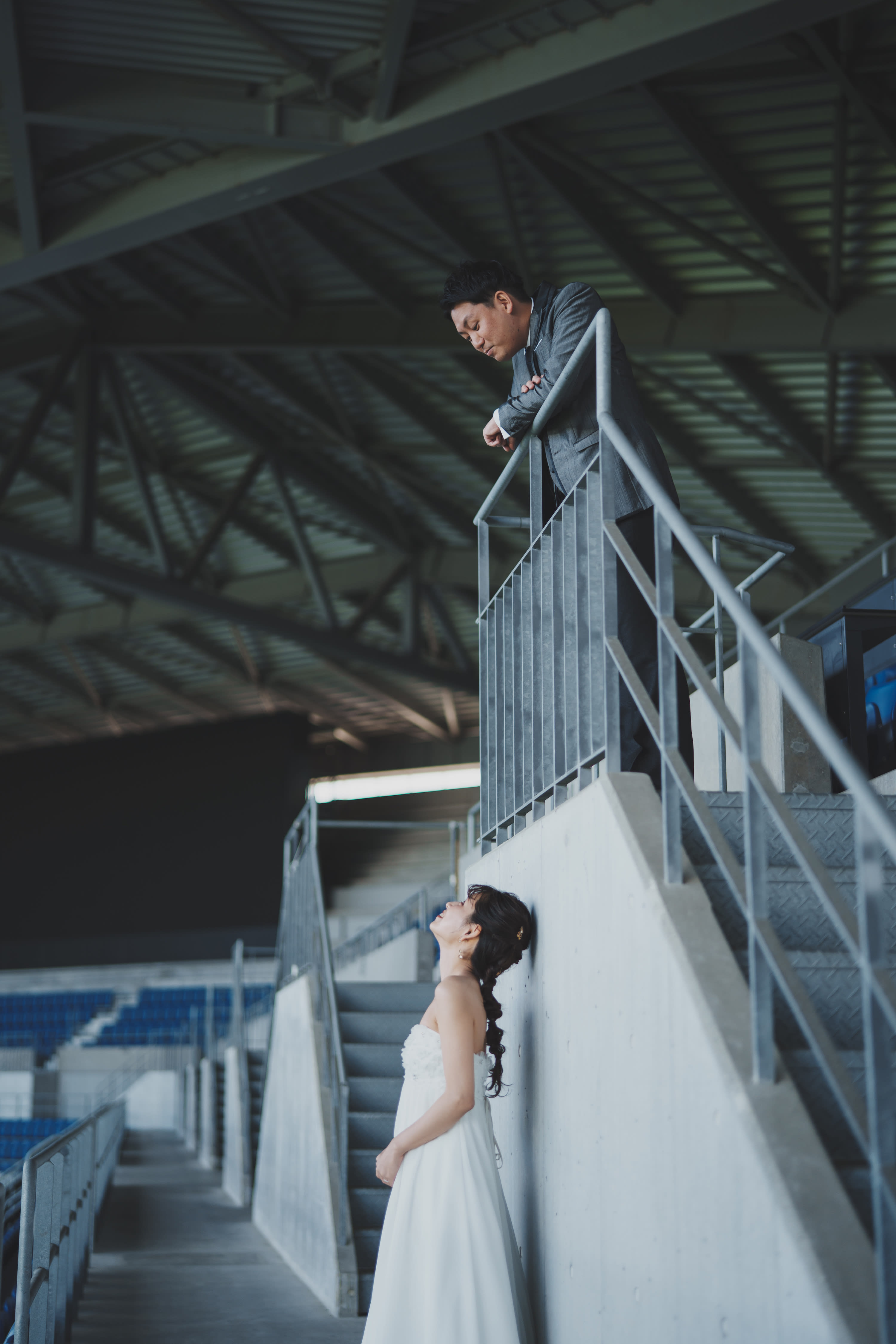 チャペルの階段のよう ピッチを眺める新婦様、嬉しそうです♪