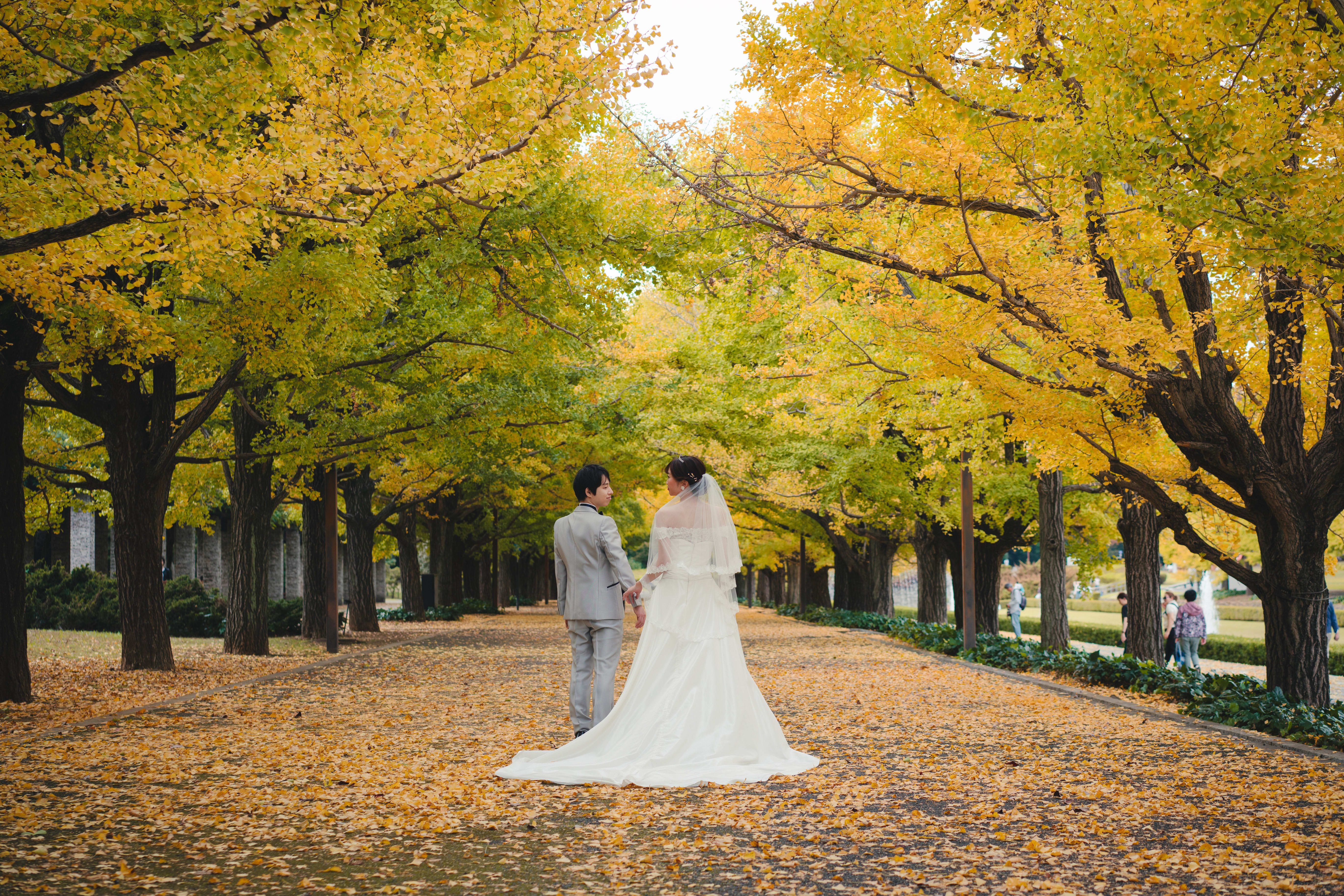 色づき始めた銀杏並木の横で、手を繋いでいただきました!