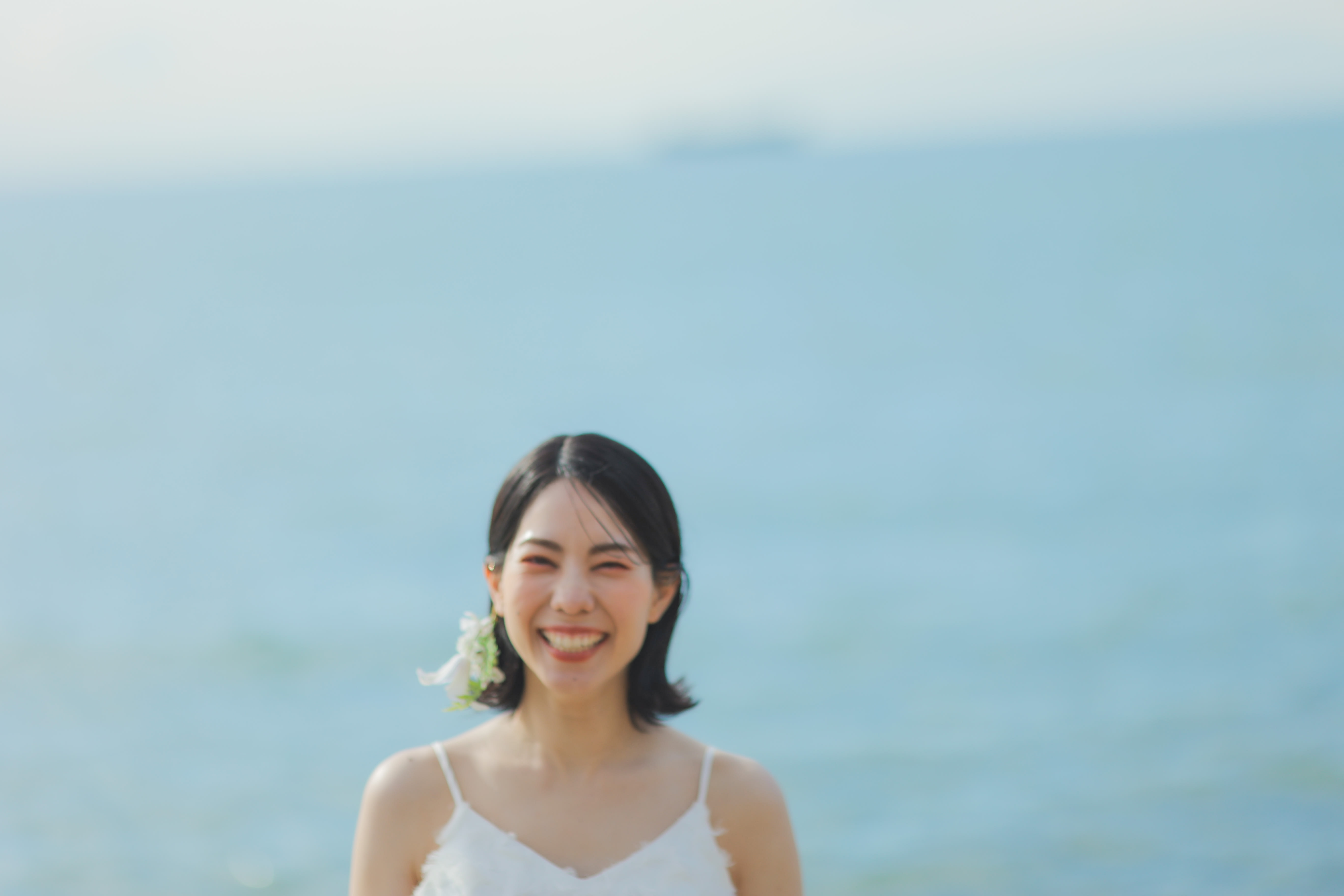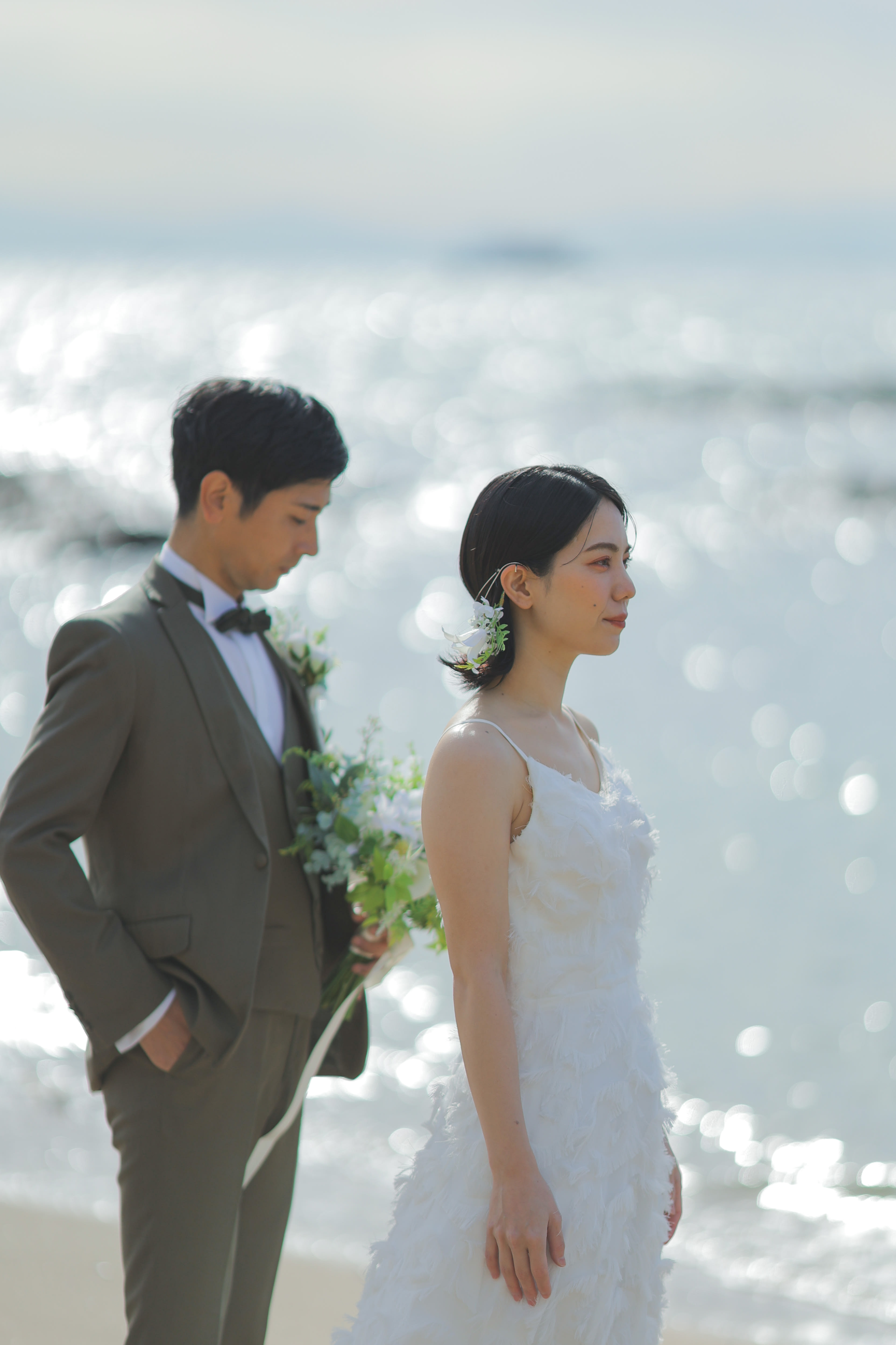 おふたりらしさ全開な海での撮影