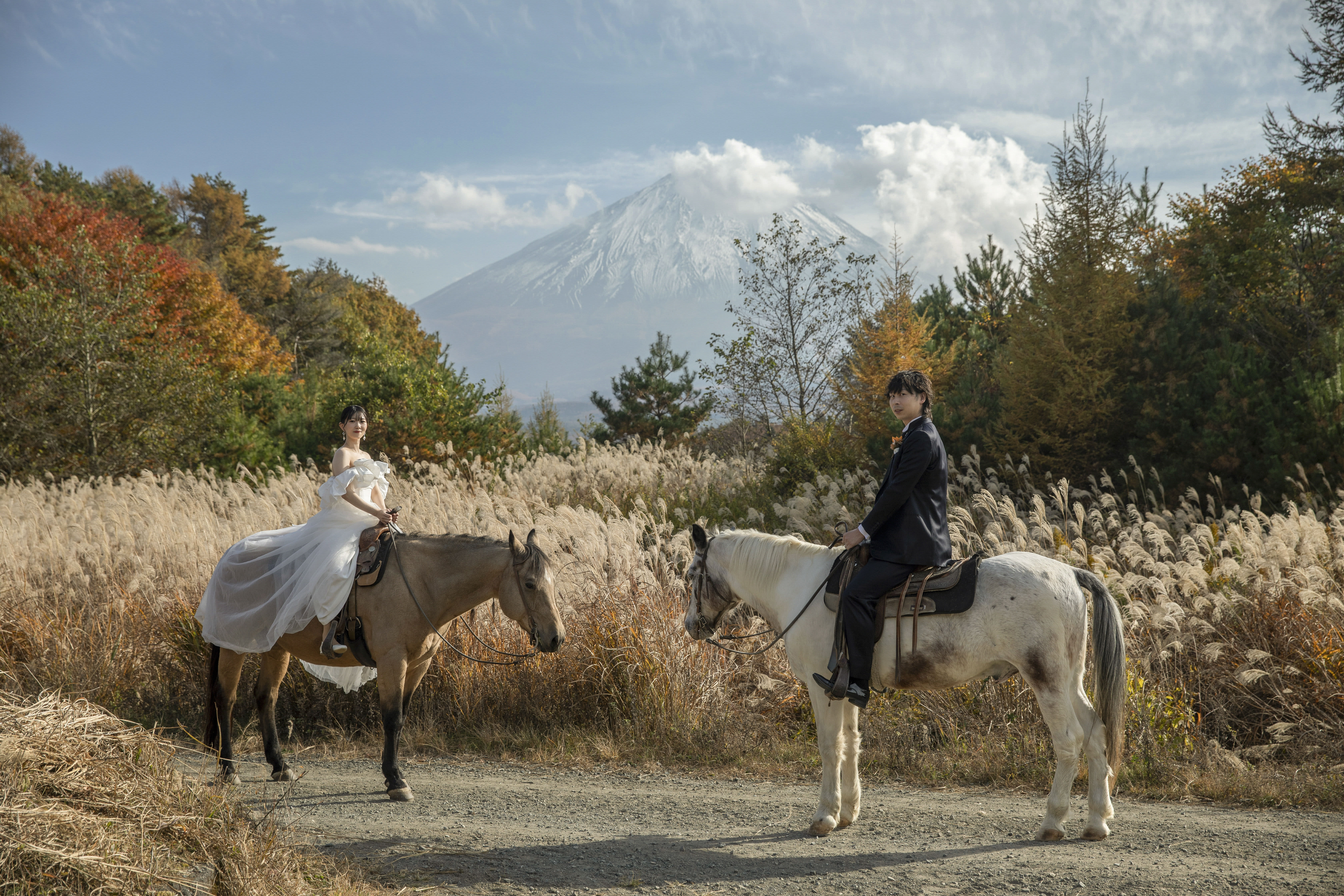 新婦様とお馬さんのツーショット。どちらもすごく嬉しそうでした