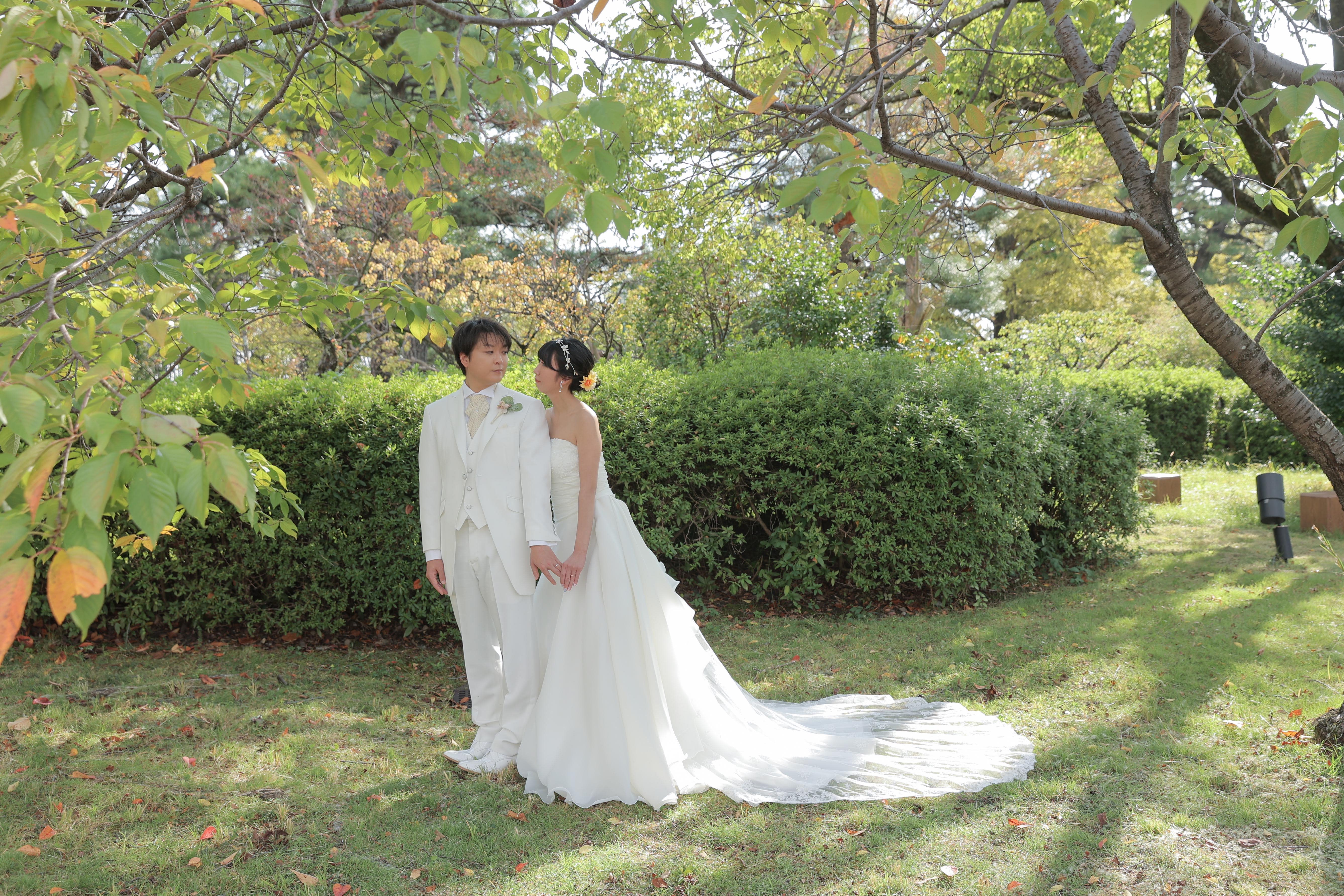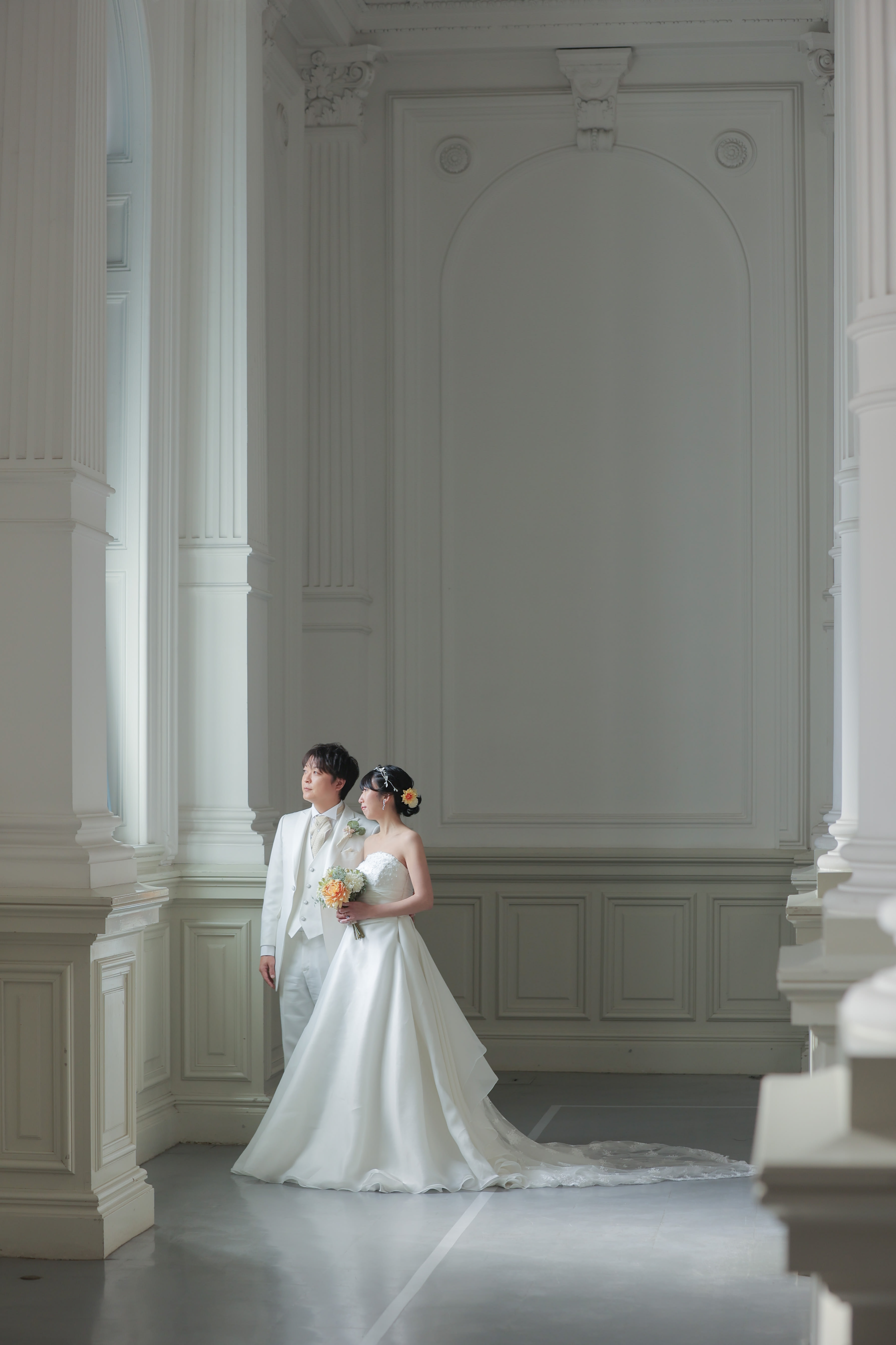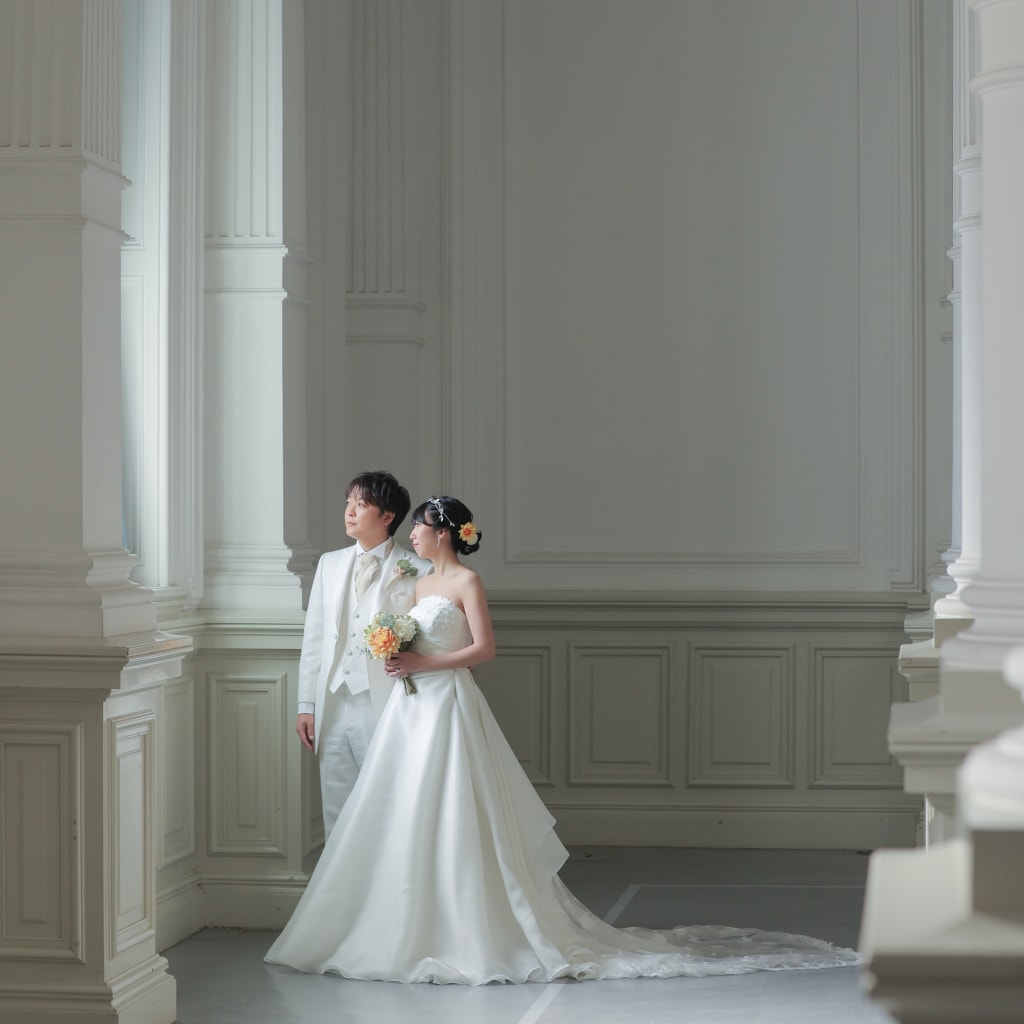 白を基調とした明治古都館に白のドレスとタキシードが合っていますね
