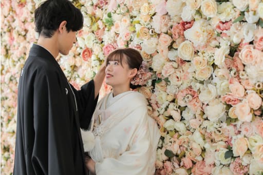 締めのカットは正座です! 優しくて温かいお二人のおかげで楽しい撮影でした!本当にありがとうございました! お幸せに♡