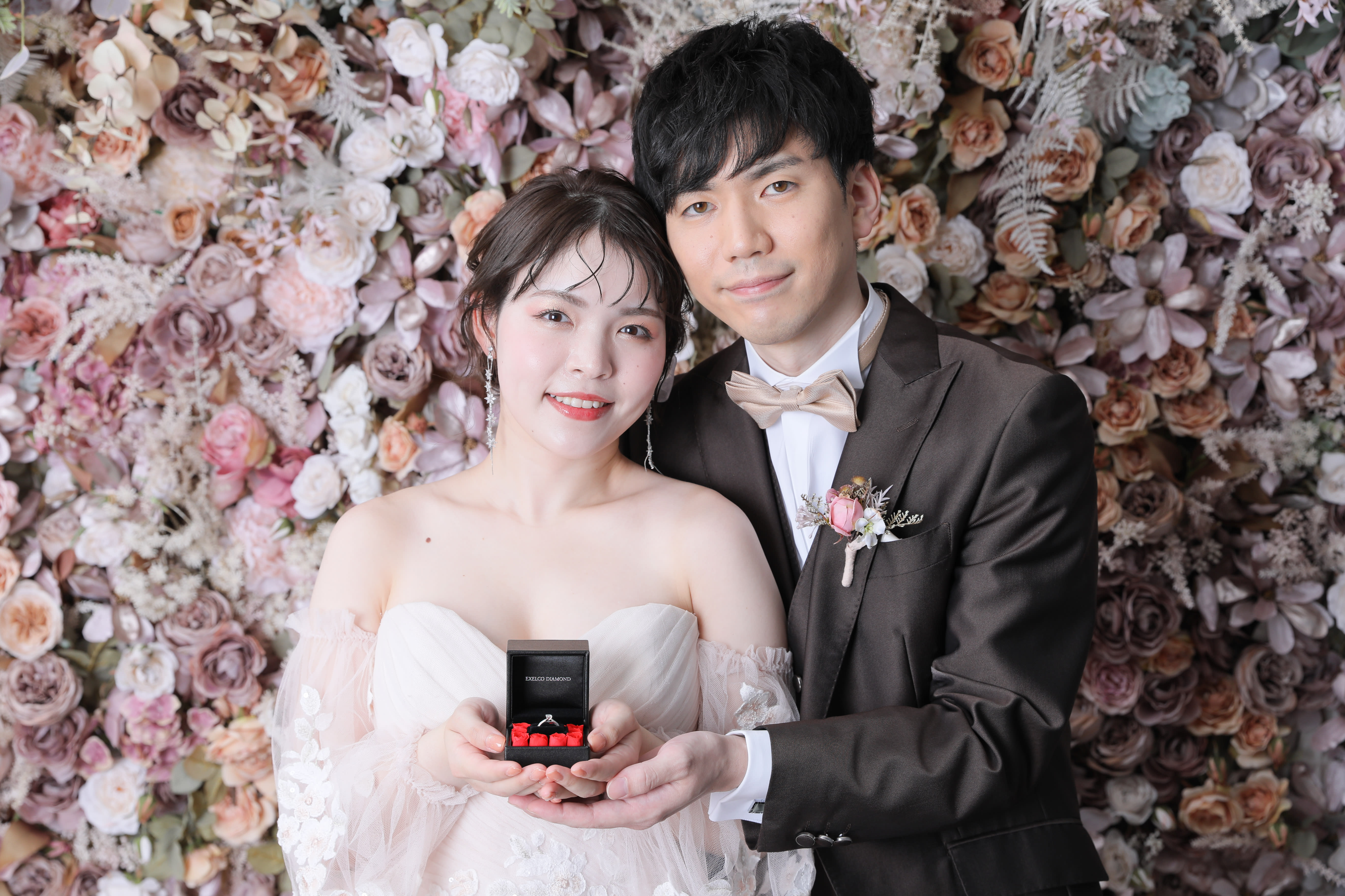 和装と洋装の撮影!まずは椿の花です! ご新郎様の小指をちょこんと掴んで。 ご新婦様の笑顔が可愛すぎてスタッフ一同叫びました!