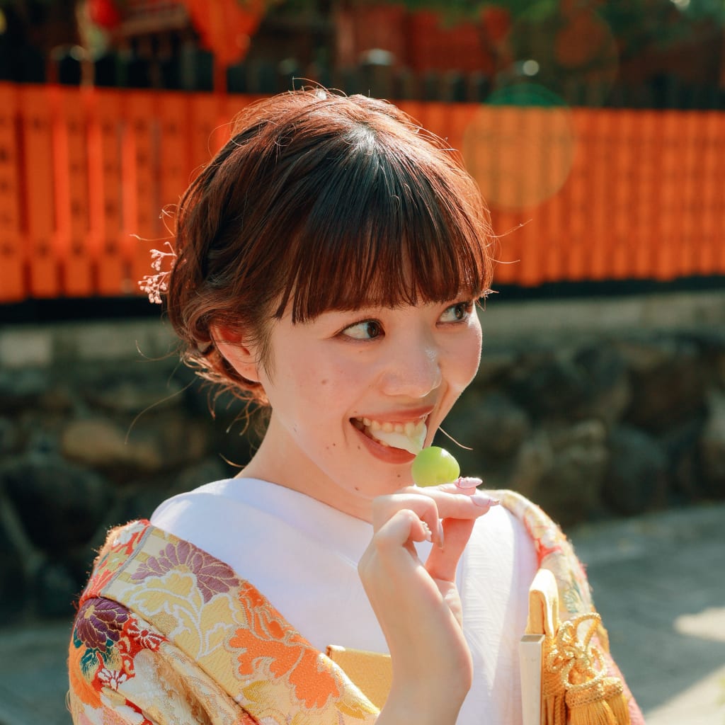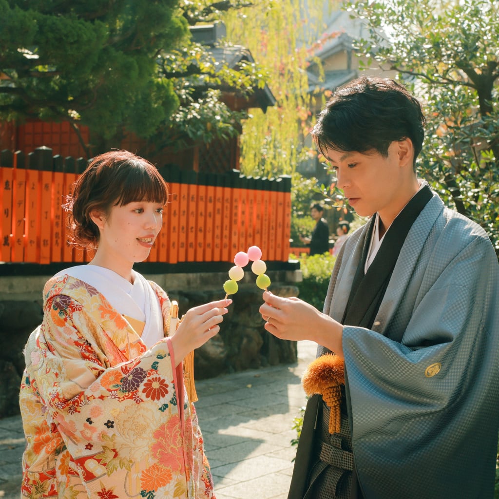 笑顔でお団子を食べる新婦様がとてもキュート!