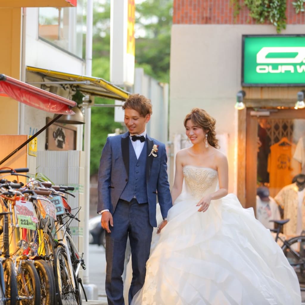 いつも通る道もドレスとタキシードで歩けばフォトジェニックなスポットに!