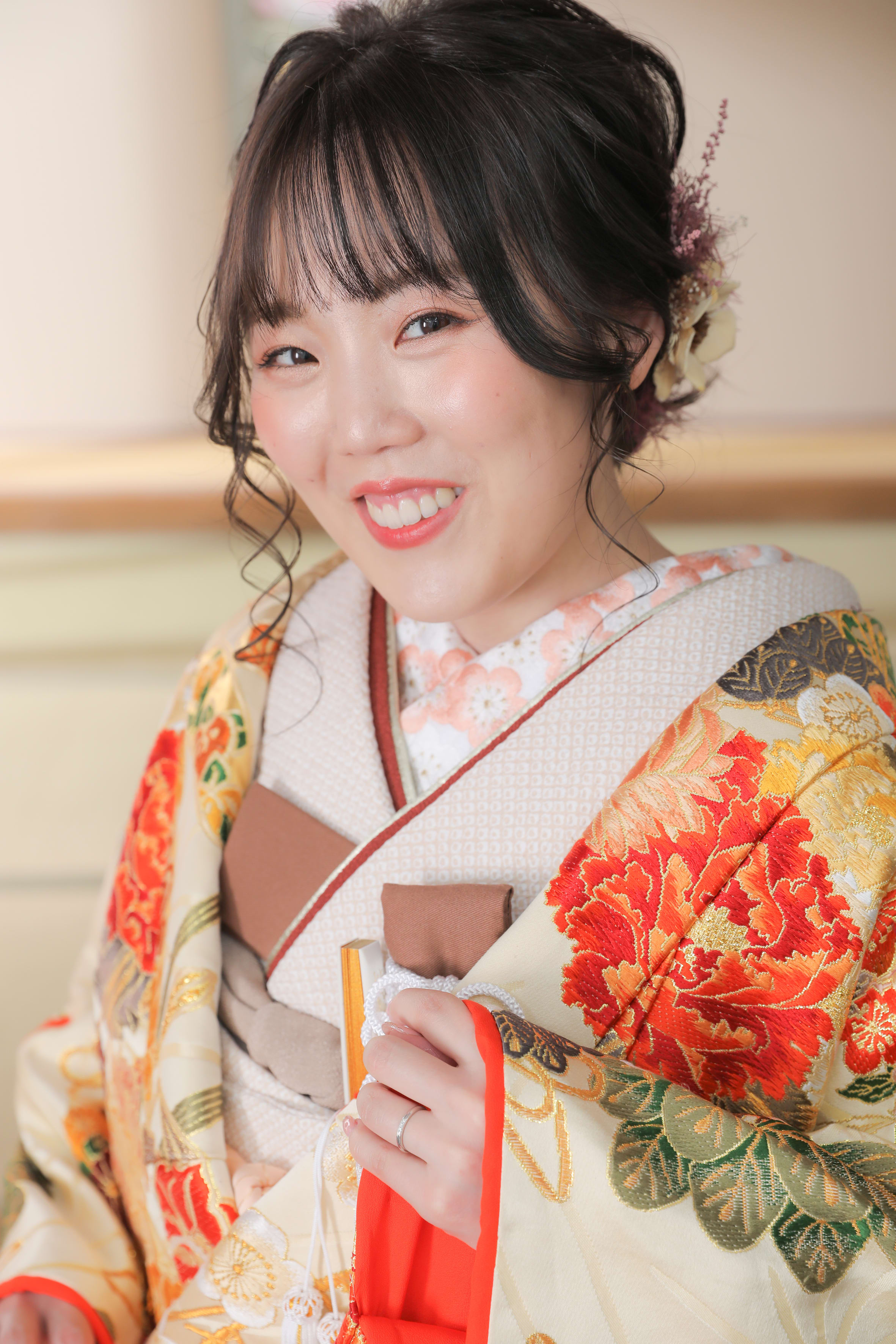 先程のしっかりとした正面ポーズと後ろ姿でお着物の色々な表情も撮影していきましょう!