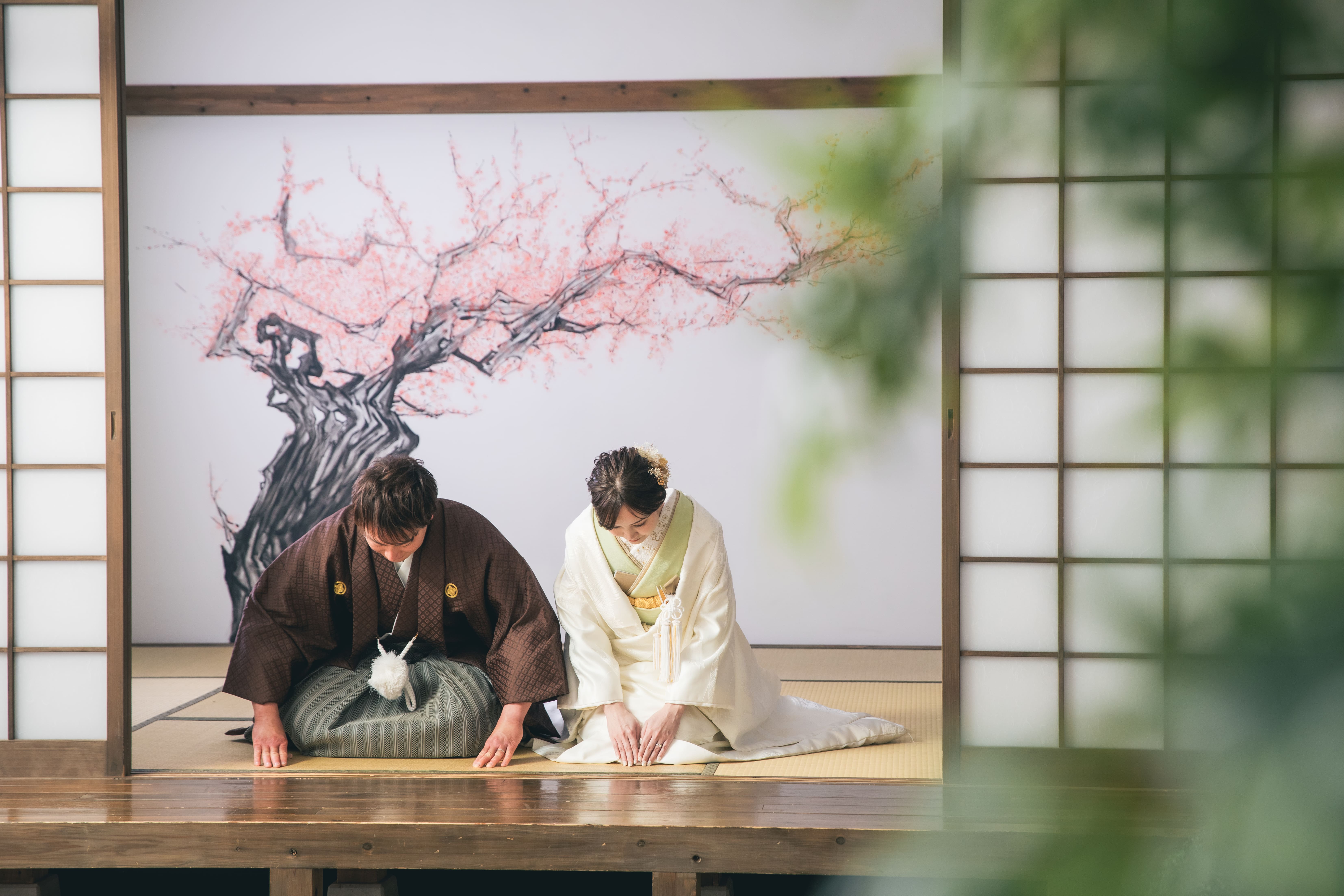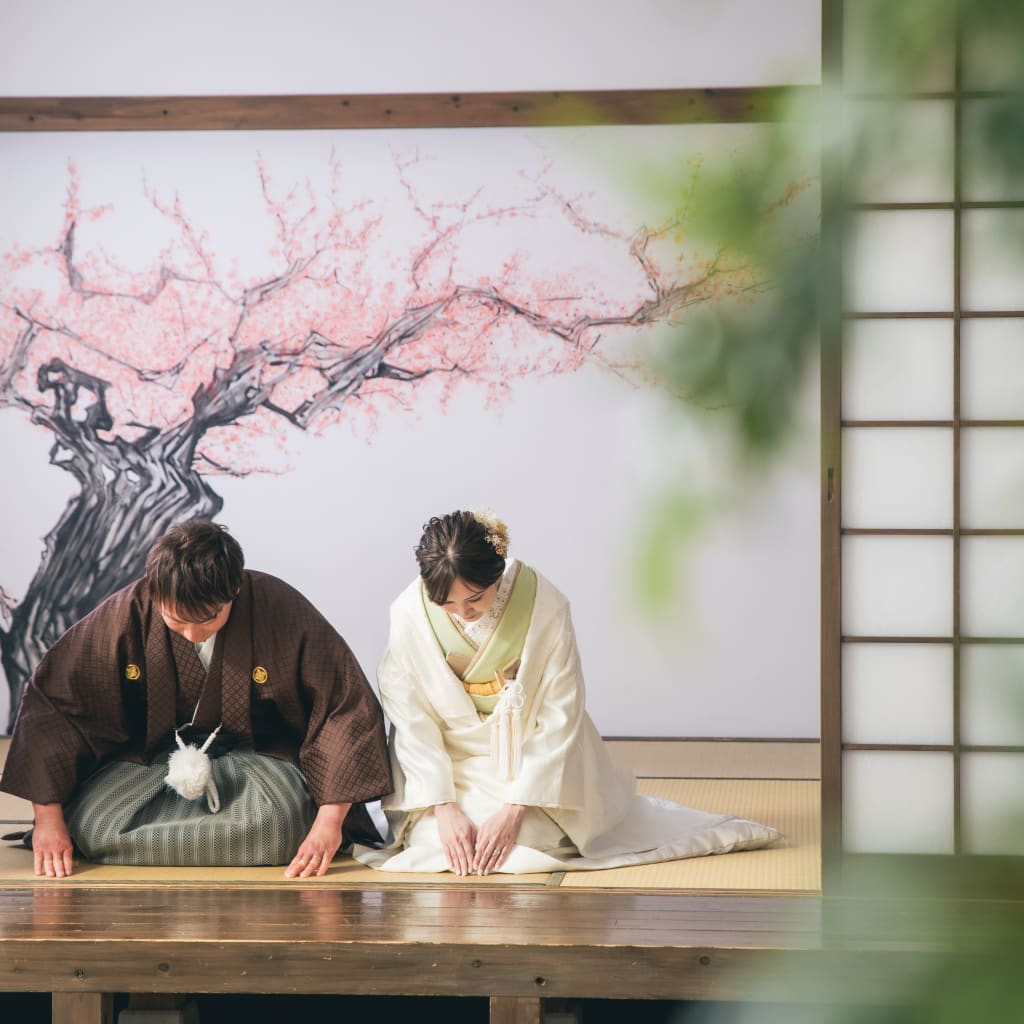 横浜みなとみらい店人気No.1。本格的な茶室スタジオで撮影する、和装の結婚写真
