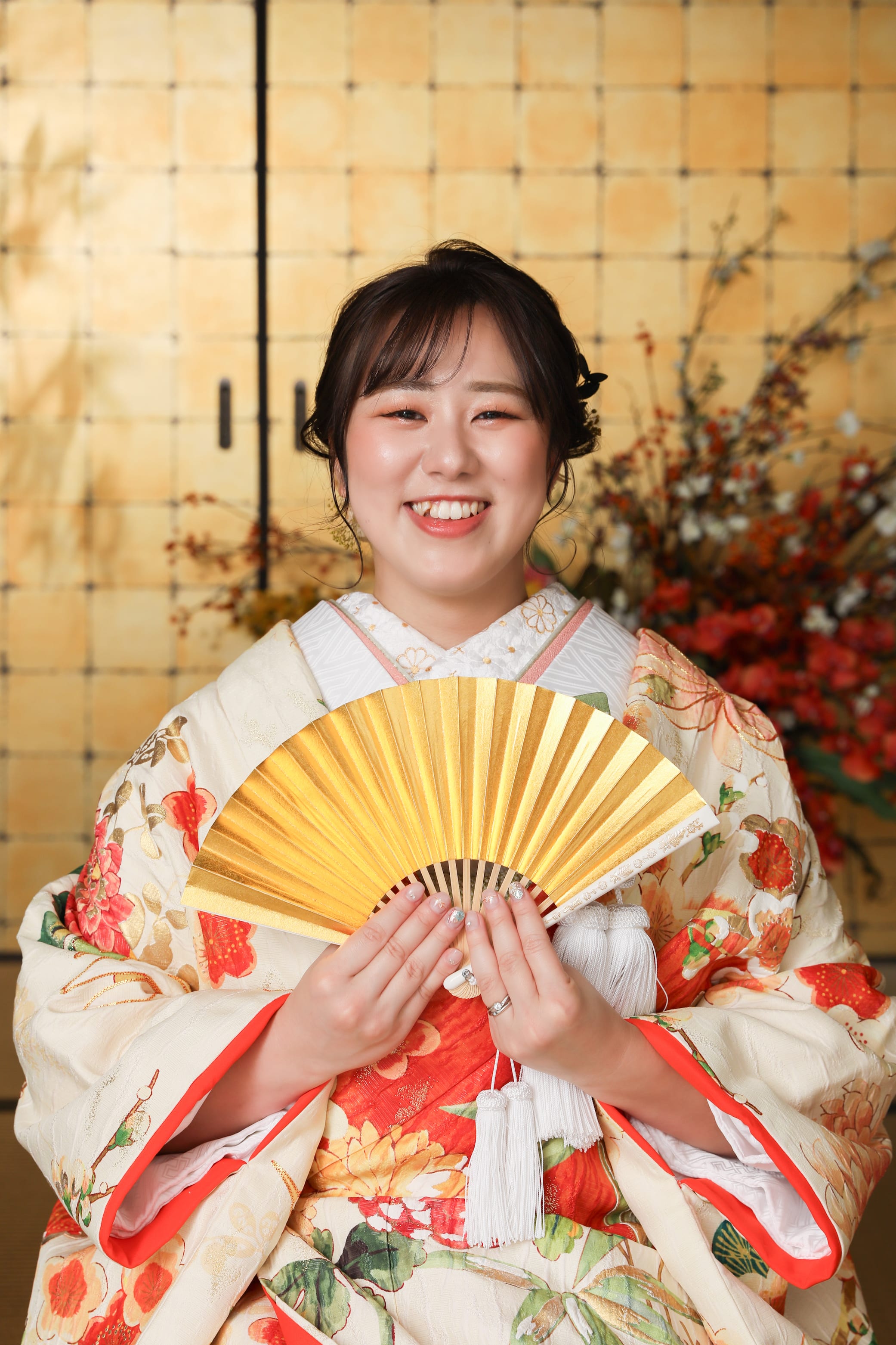 お二人の優しそうな雰囲気に合わせて柔らかいお花の木漏れ日ライトをご提案させていただきました!すごくぴったりで素敵でした!!