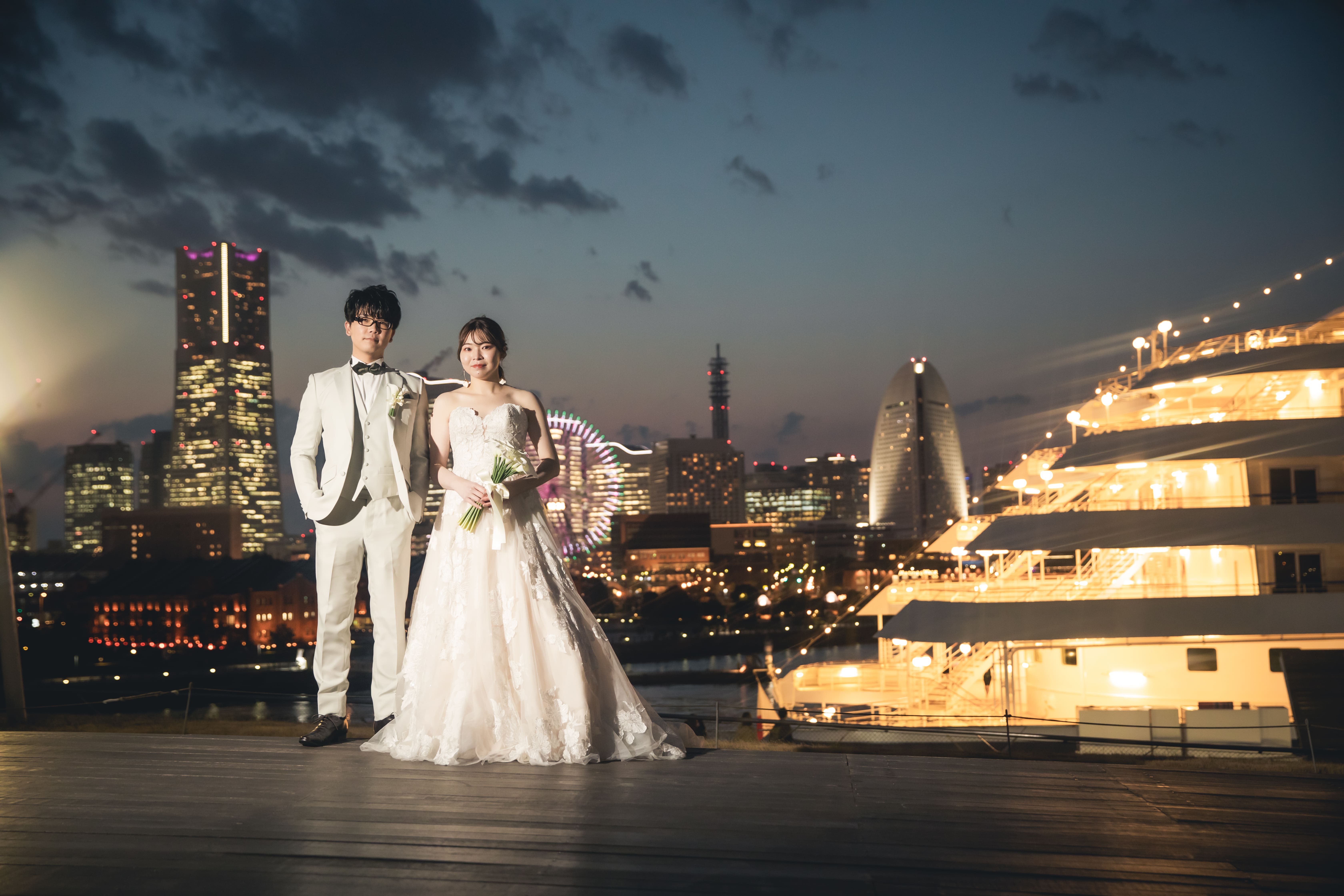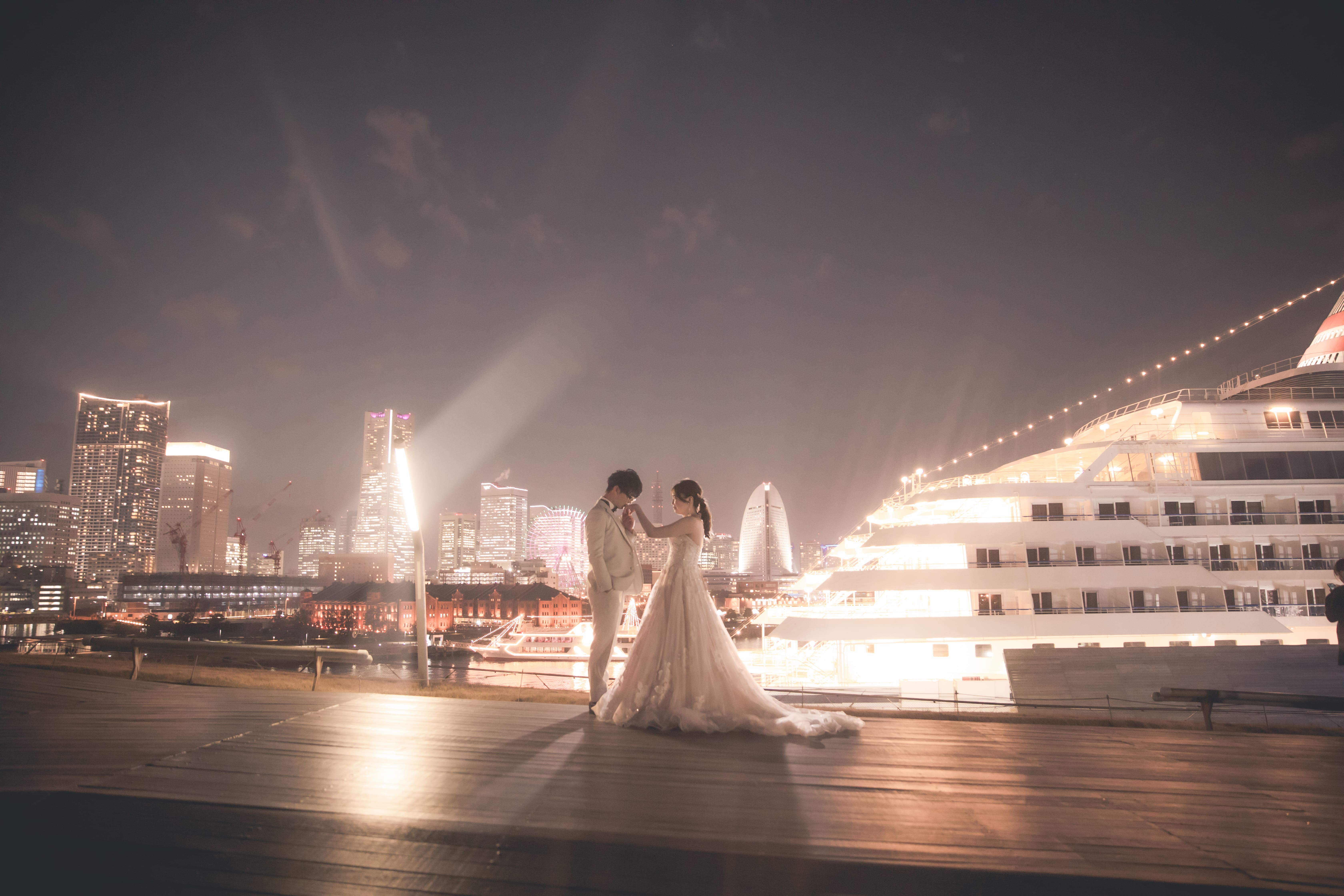 【横浜で記念日】汽笛が二人のスタートを祝う横浜のロケーションで美しい一枚を