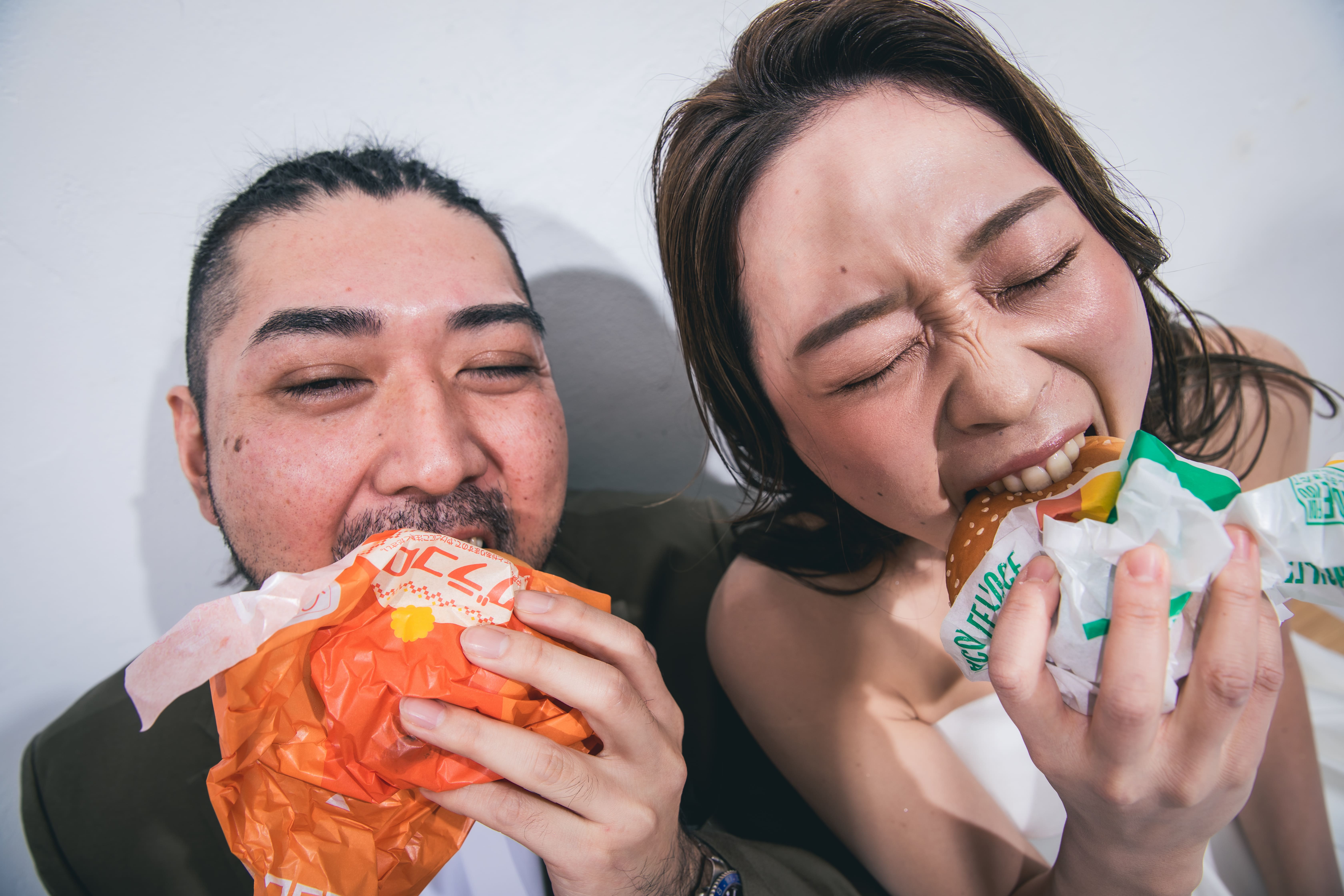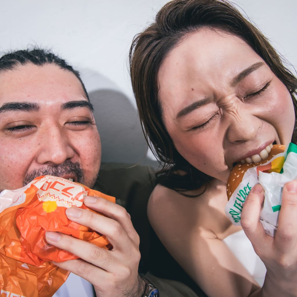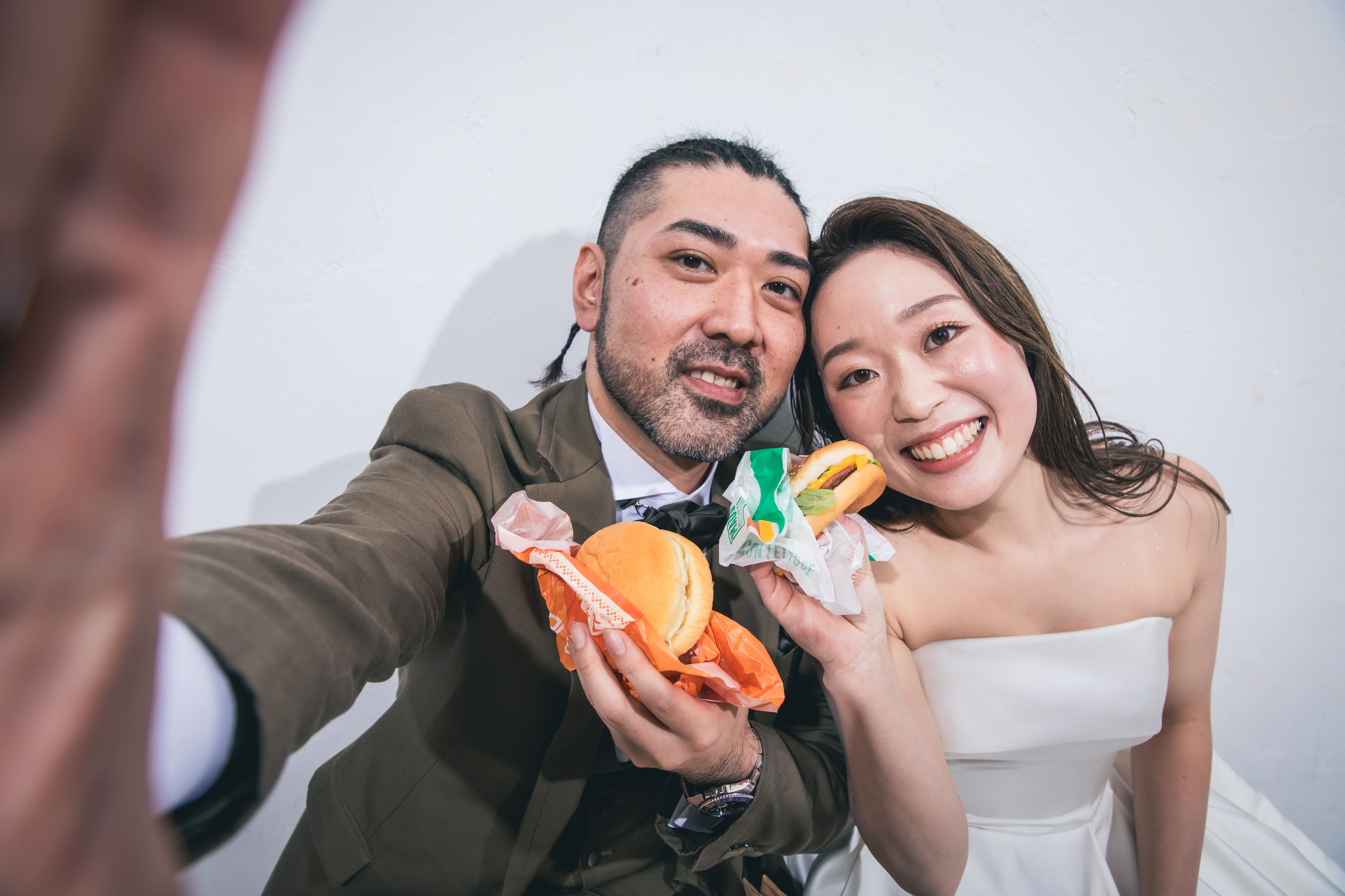 シンプルな背景が、お二人の幸せな表情を主役にする一枚