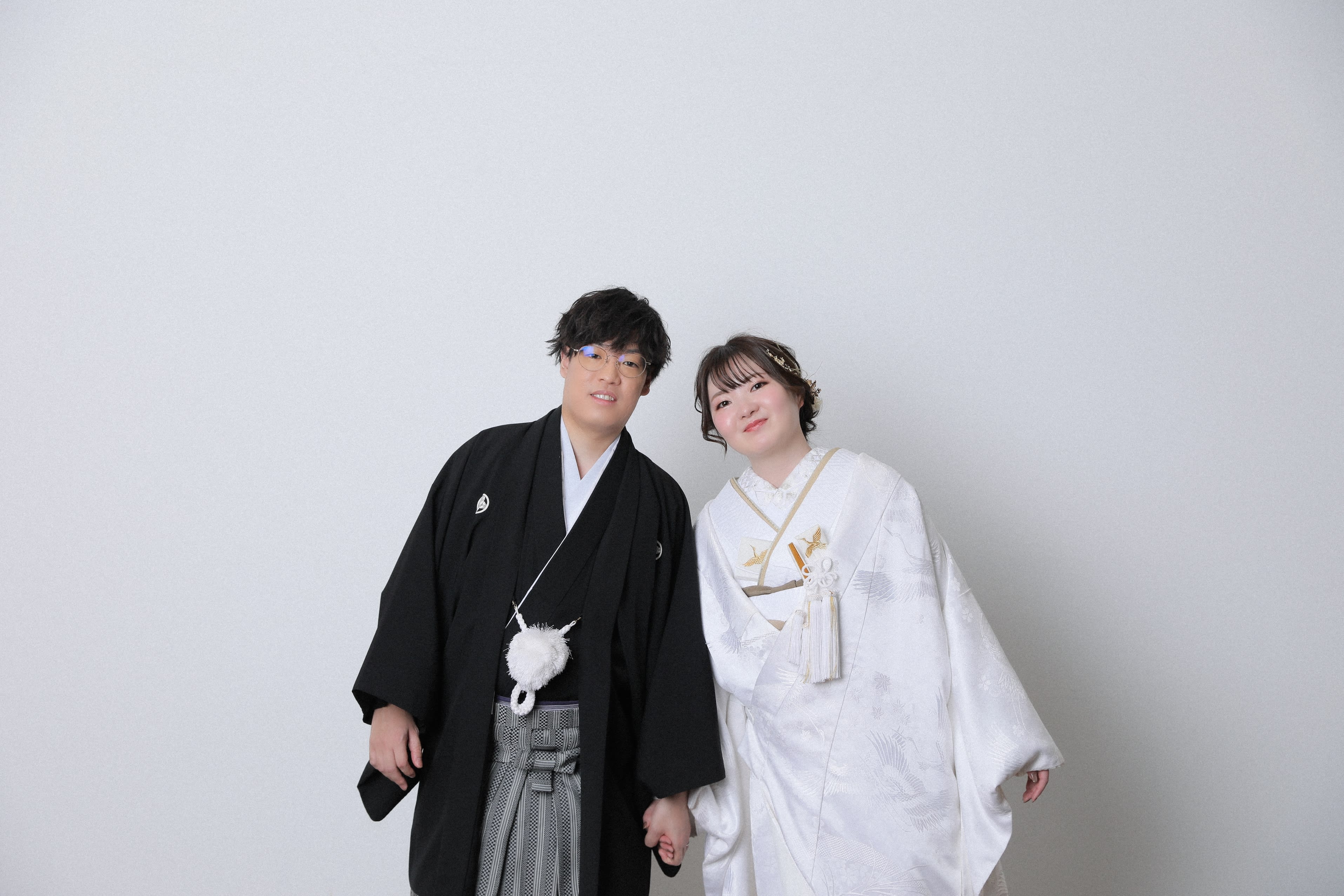 斜めの影を活かしてクールな1枚に。 白無垢の白が映えます。
