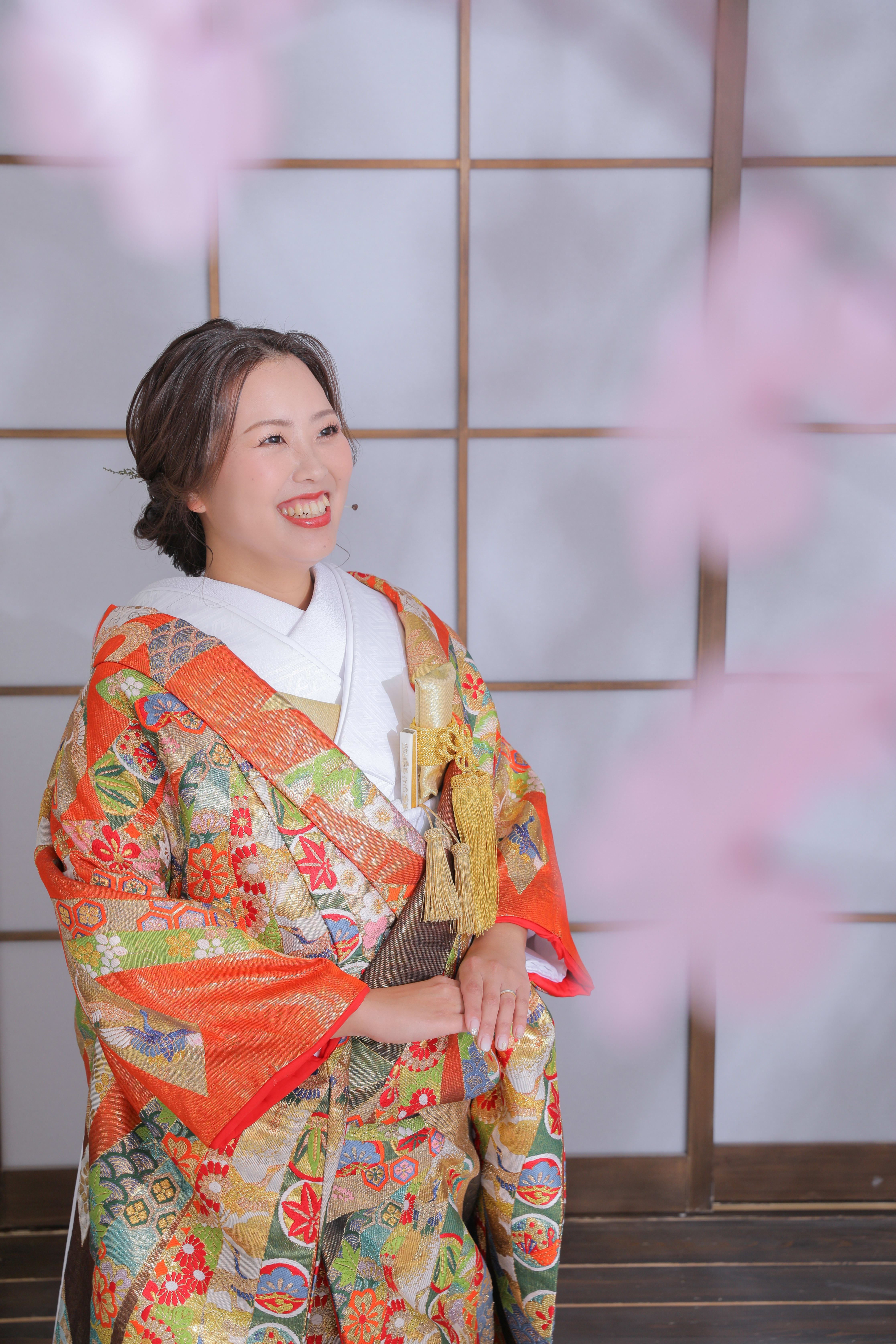 屋内庭園でひと足先にお花見撮影。