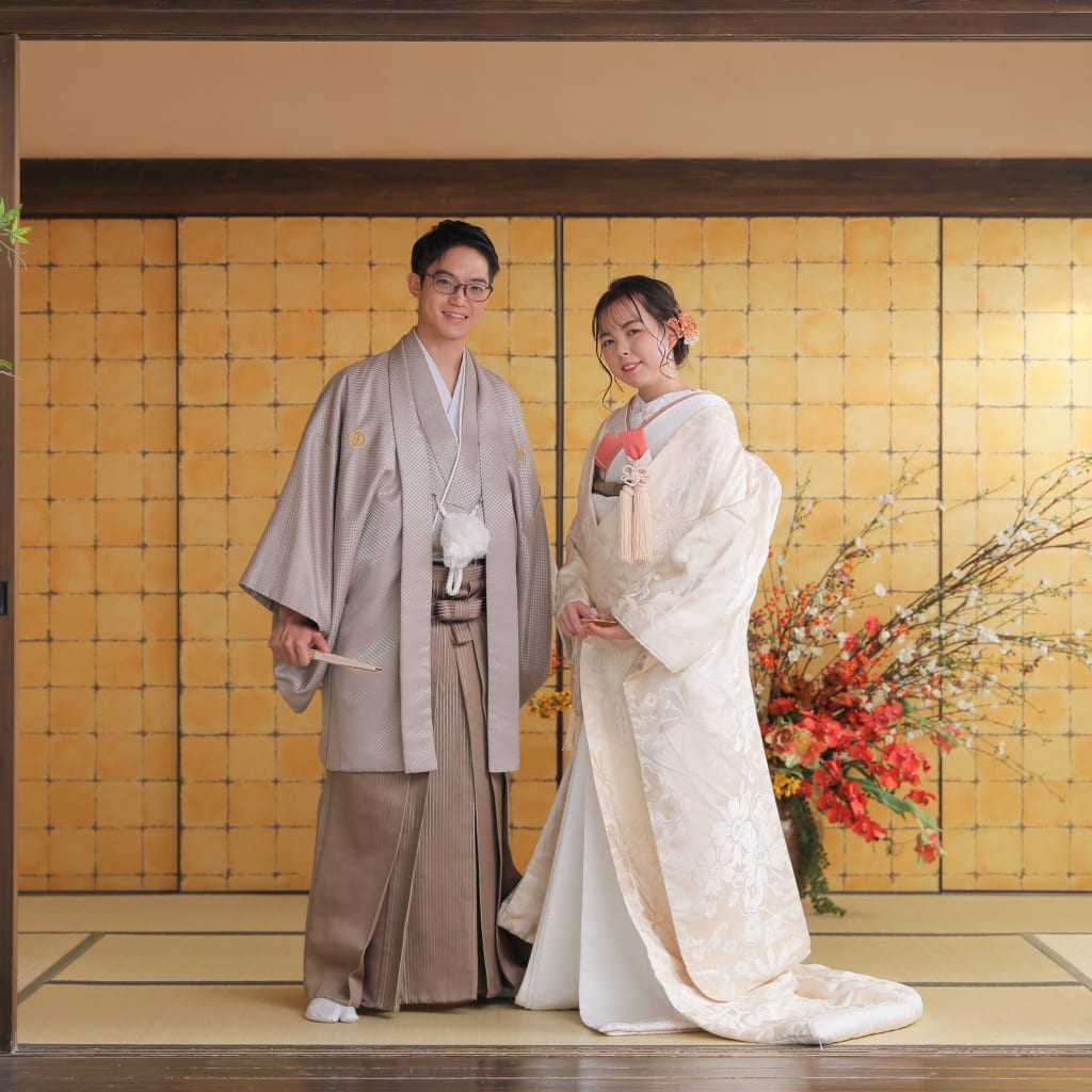 紅白の和傘を持ってお散歩! 庭の景色を見ながらルンルン♫