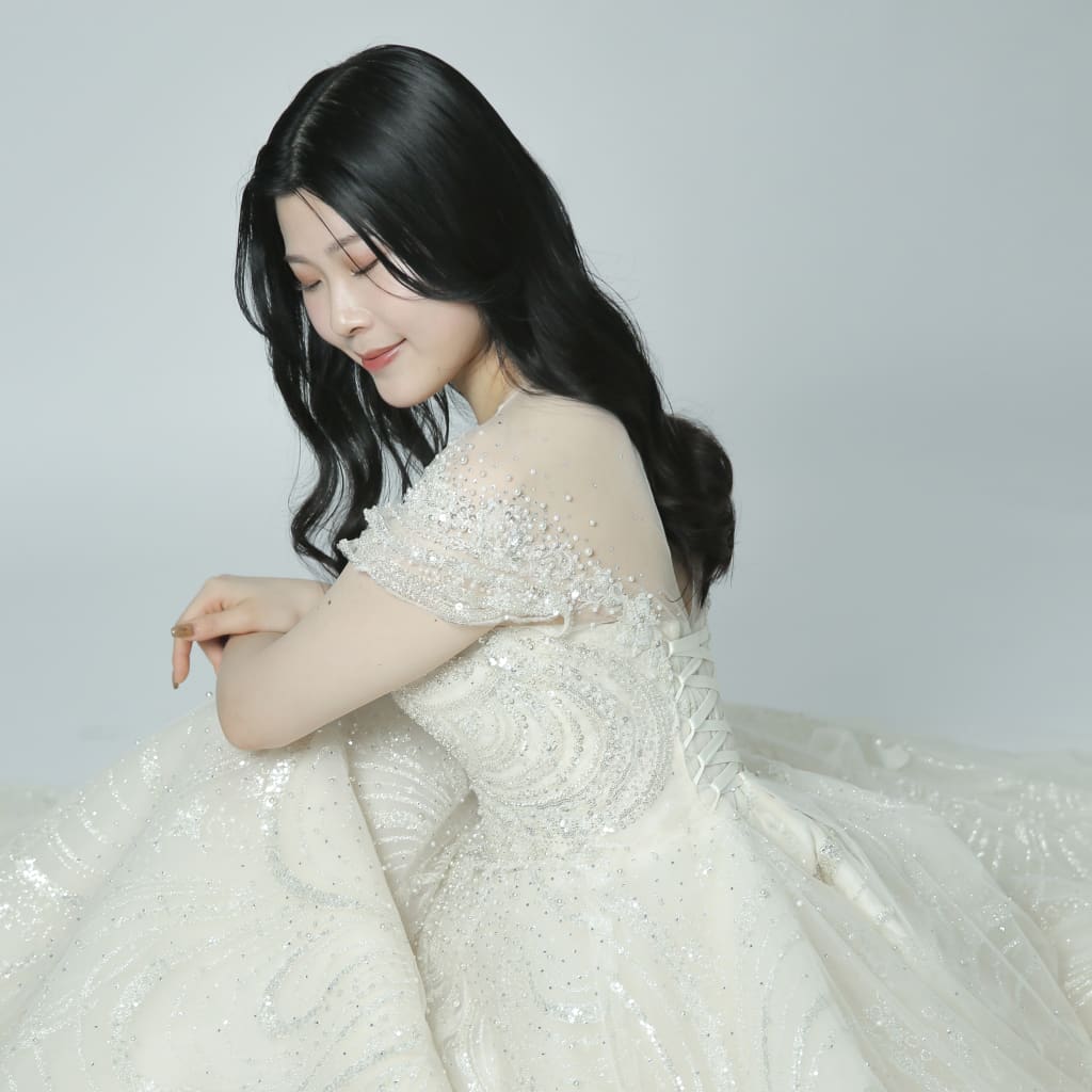 ディズニープリンセスを思わせるようなボリューム感と全身に星屑を纏わせたかのような溢れんばかりのビーズの輝き。