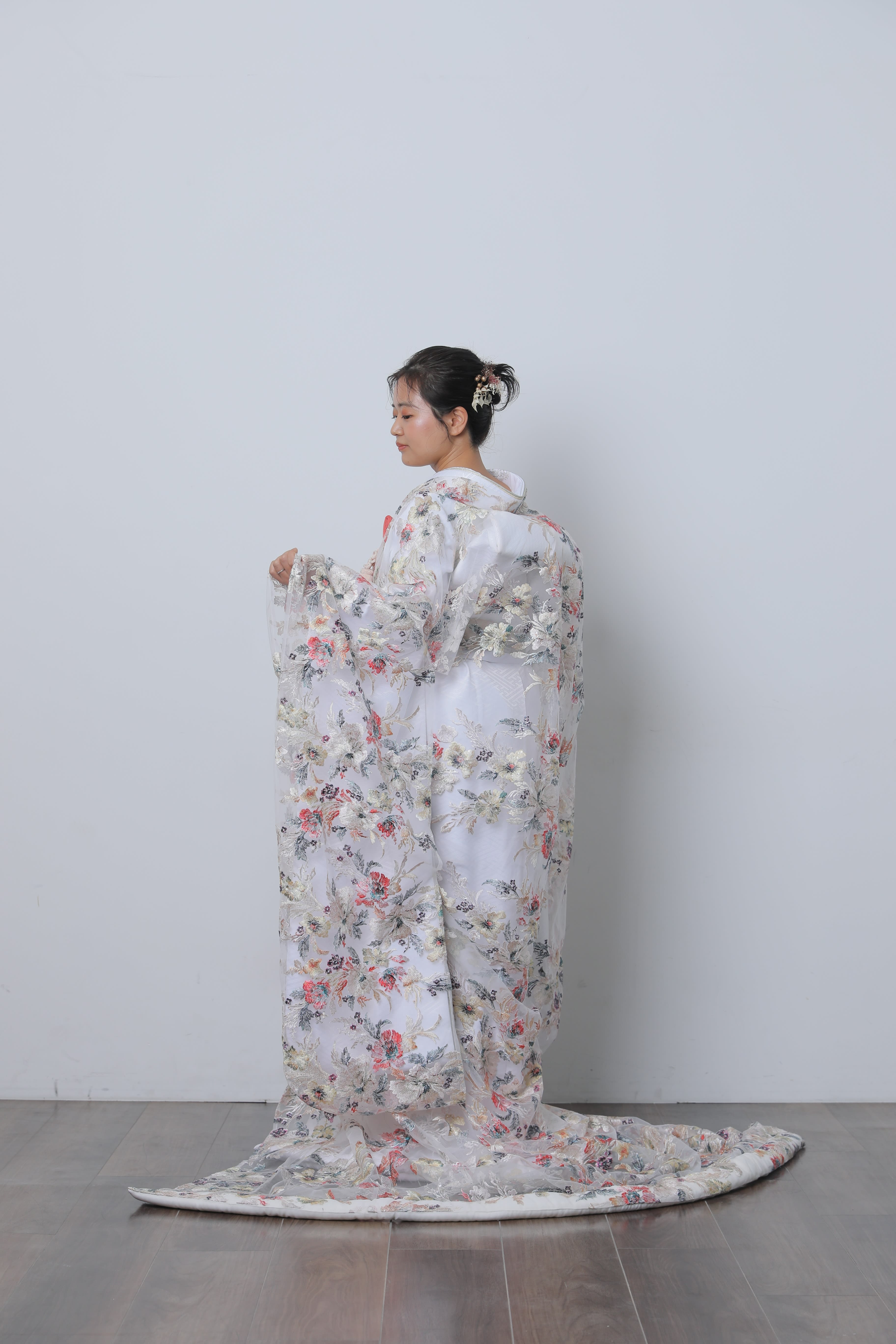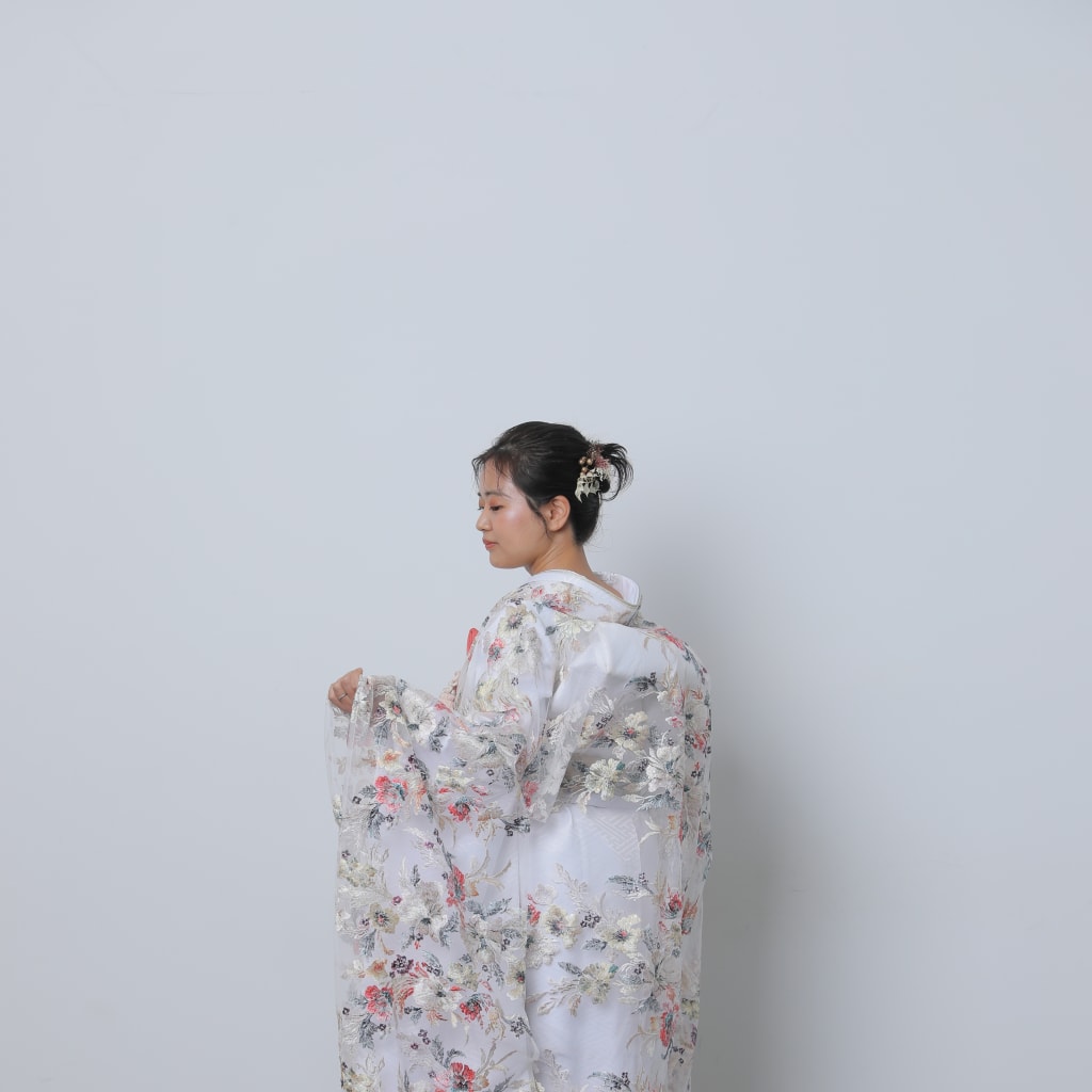 本日はハウススタジオで和装と洋装の撮影のご紹介です! 衣装の色味がとても可愛いので、まずはシンプルに白の背景で◎