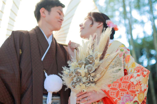 花嫁様が選んだブーケを手に持って。和装でも似合うドライフラワーのブーケです!