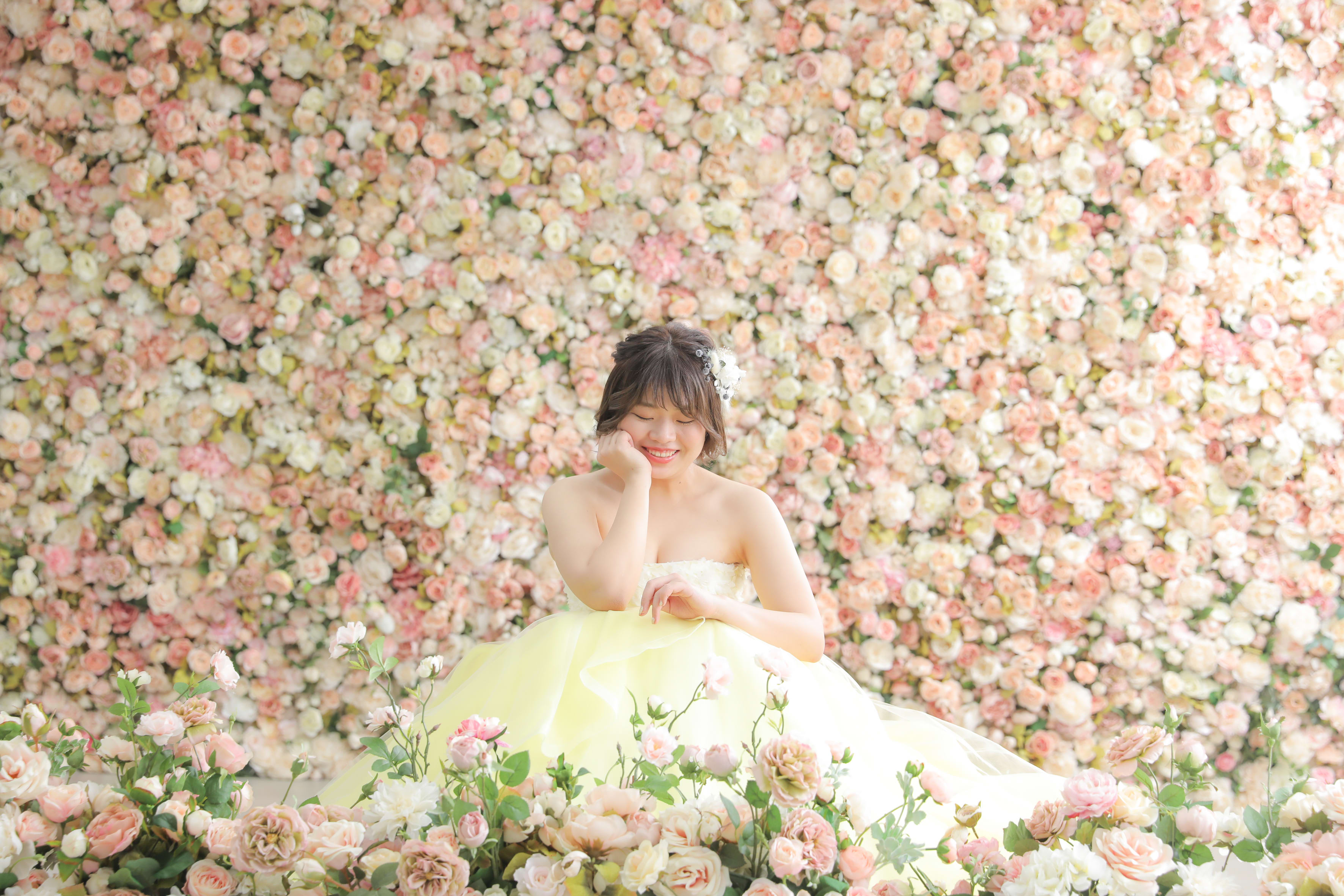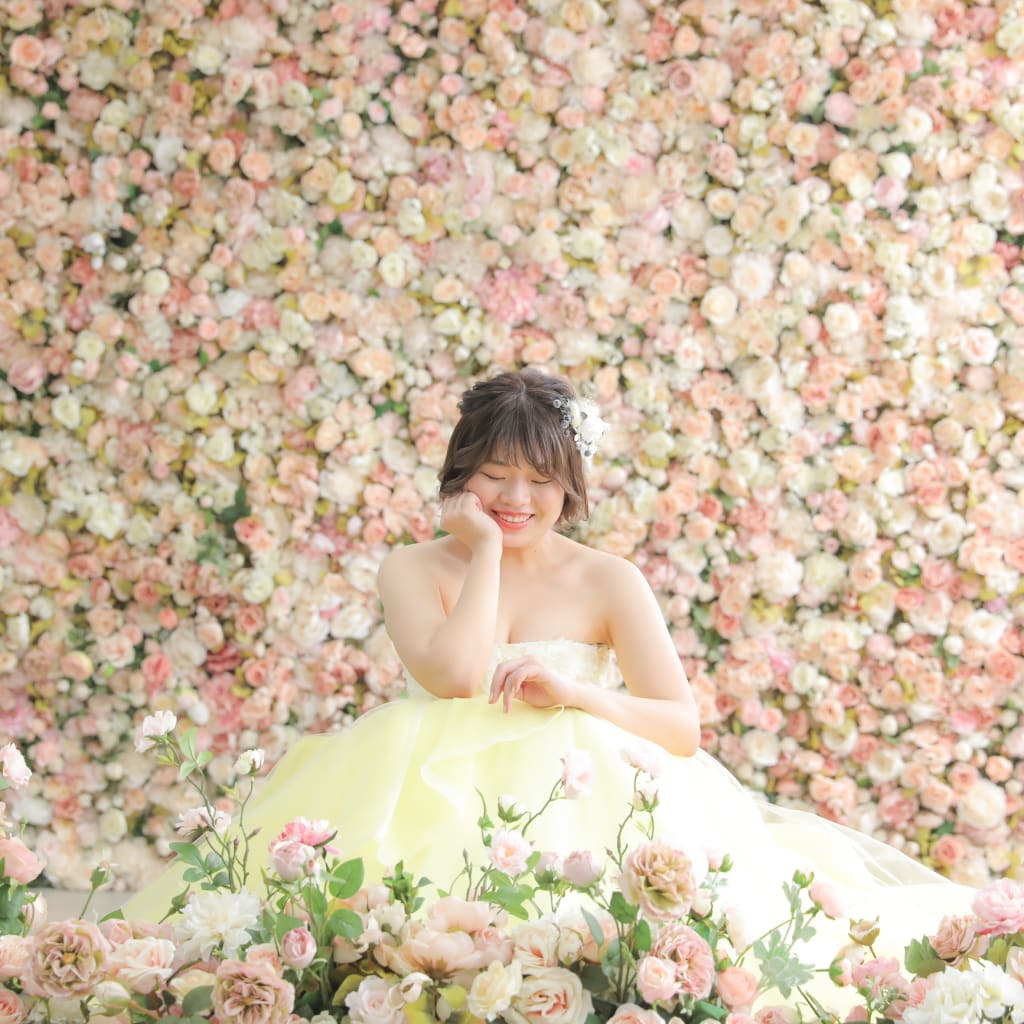 実は新婦様、カラードレスも選んでくださいました! 優しい黄色のドレスがよくお似合いです^^