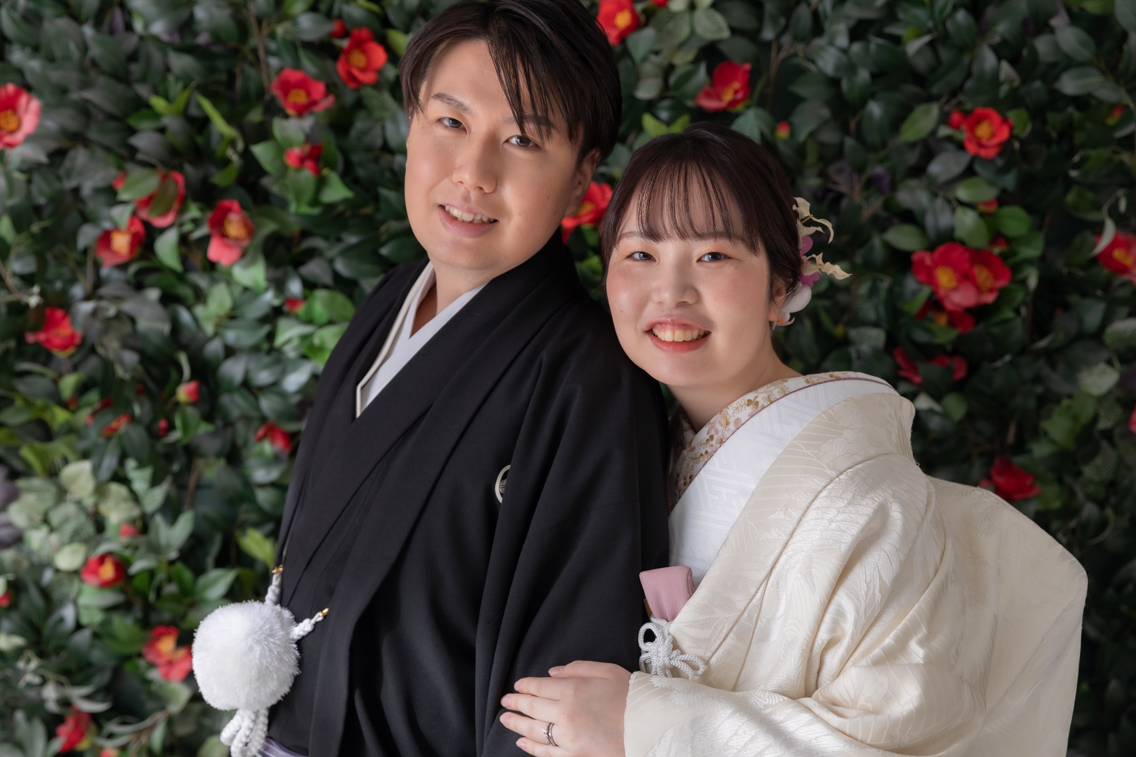 アルファベットのブロックを使った写真。 お二人はきゅっと寄り添って。