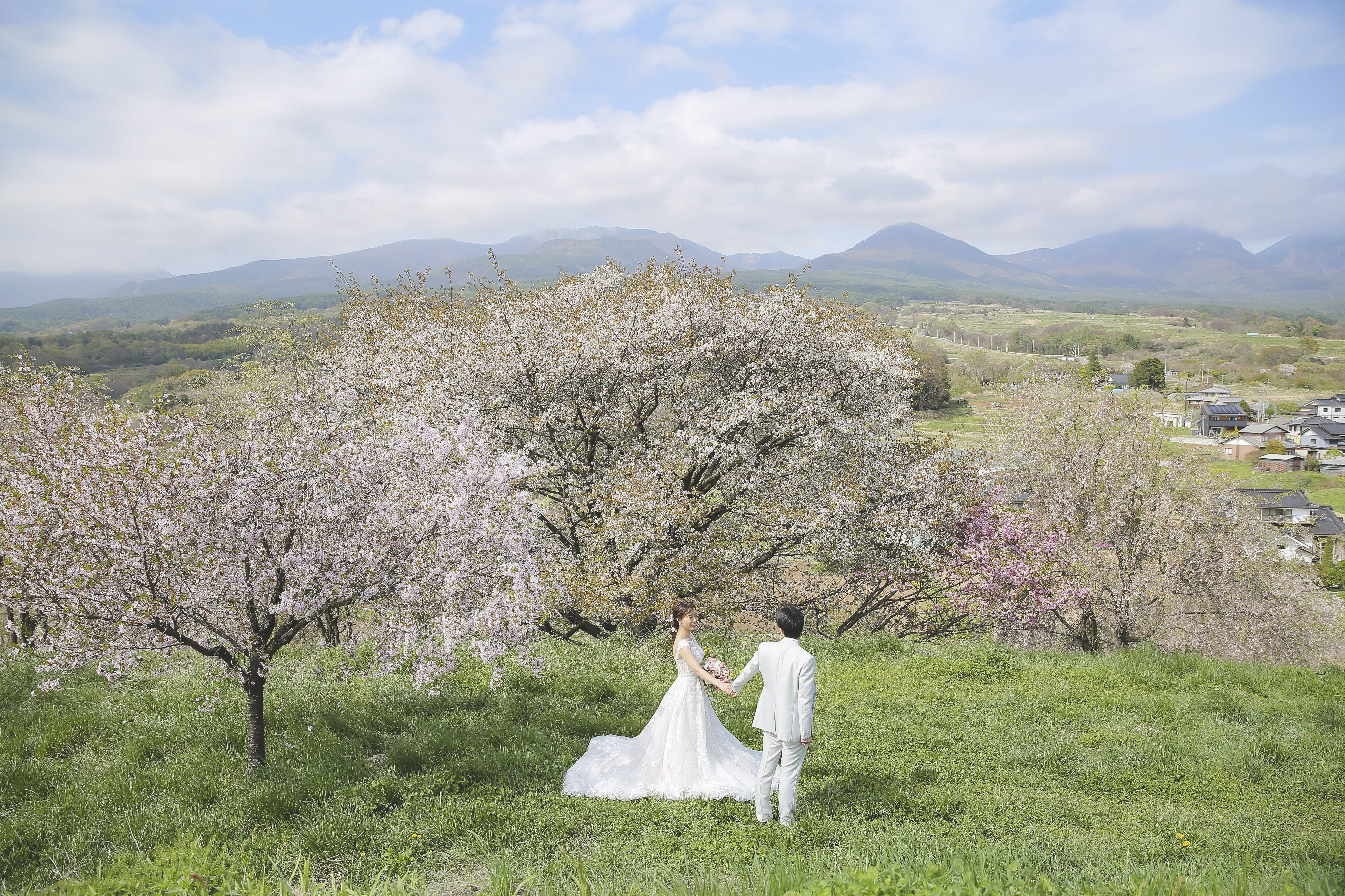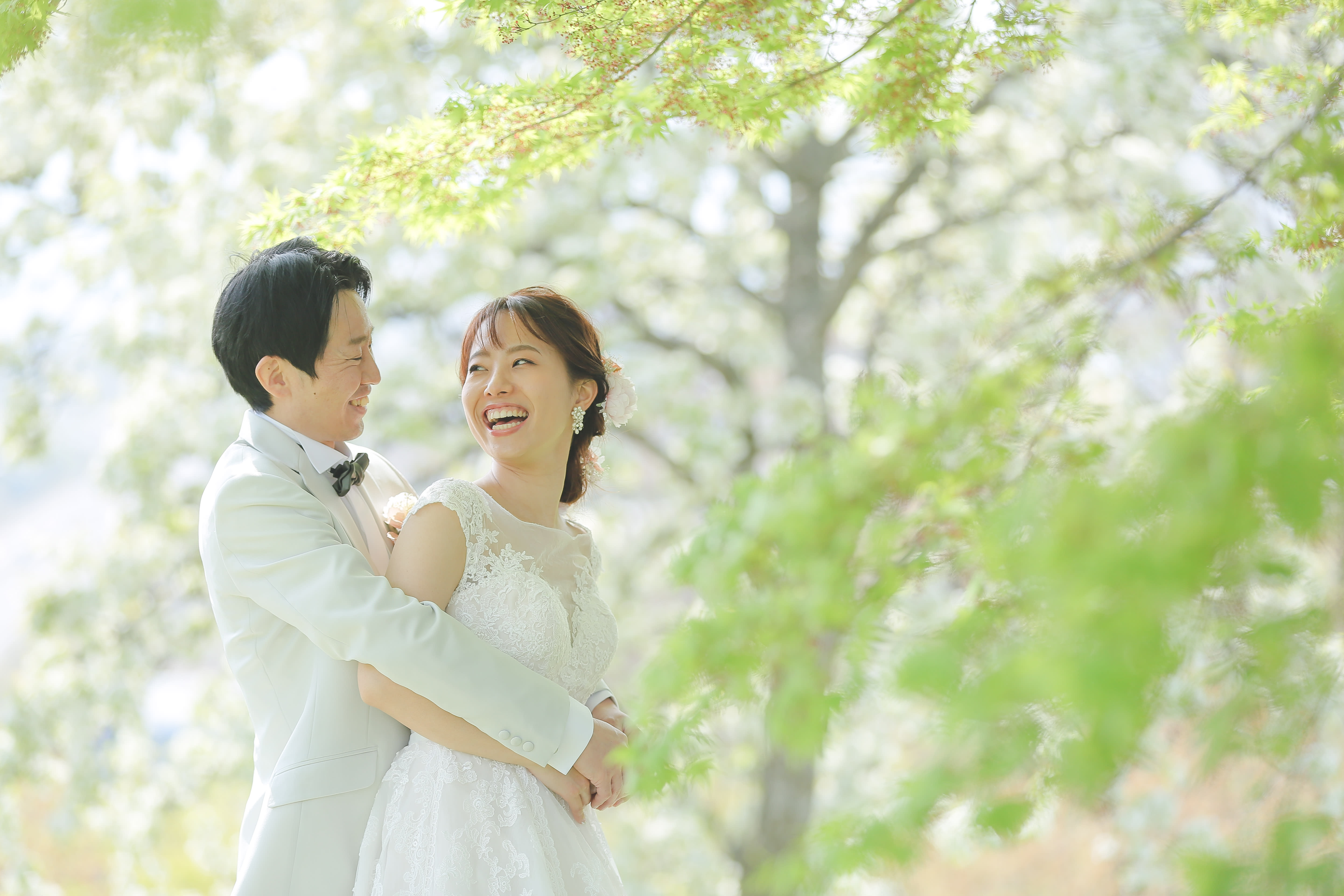 お二人の背景を桜だけにすることもできました!桜の期間が長いロケ地です!
