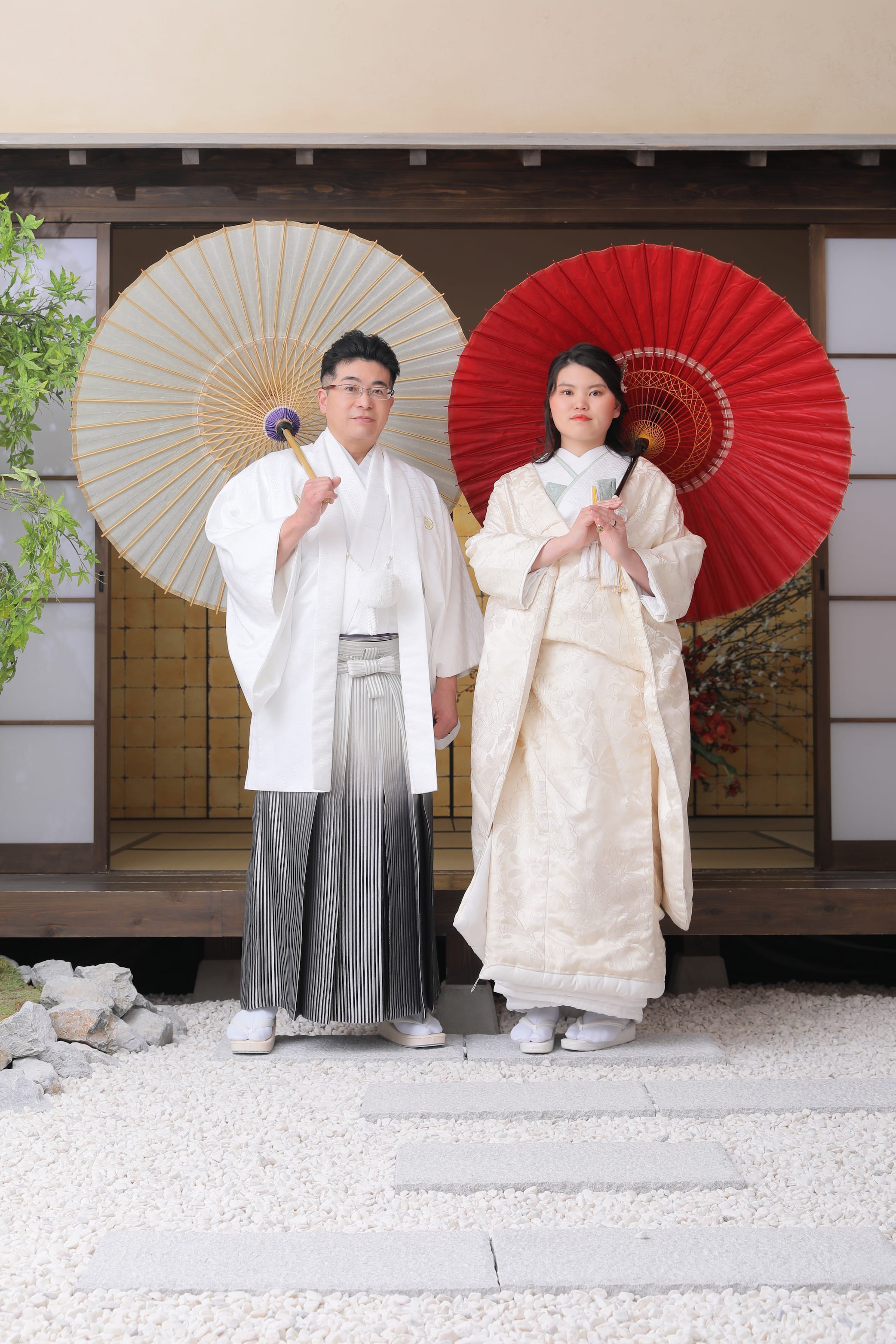和傘をもったアップのお写真!お二人の柔らかい表情が素敵!!