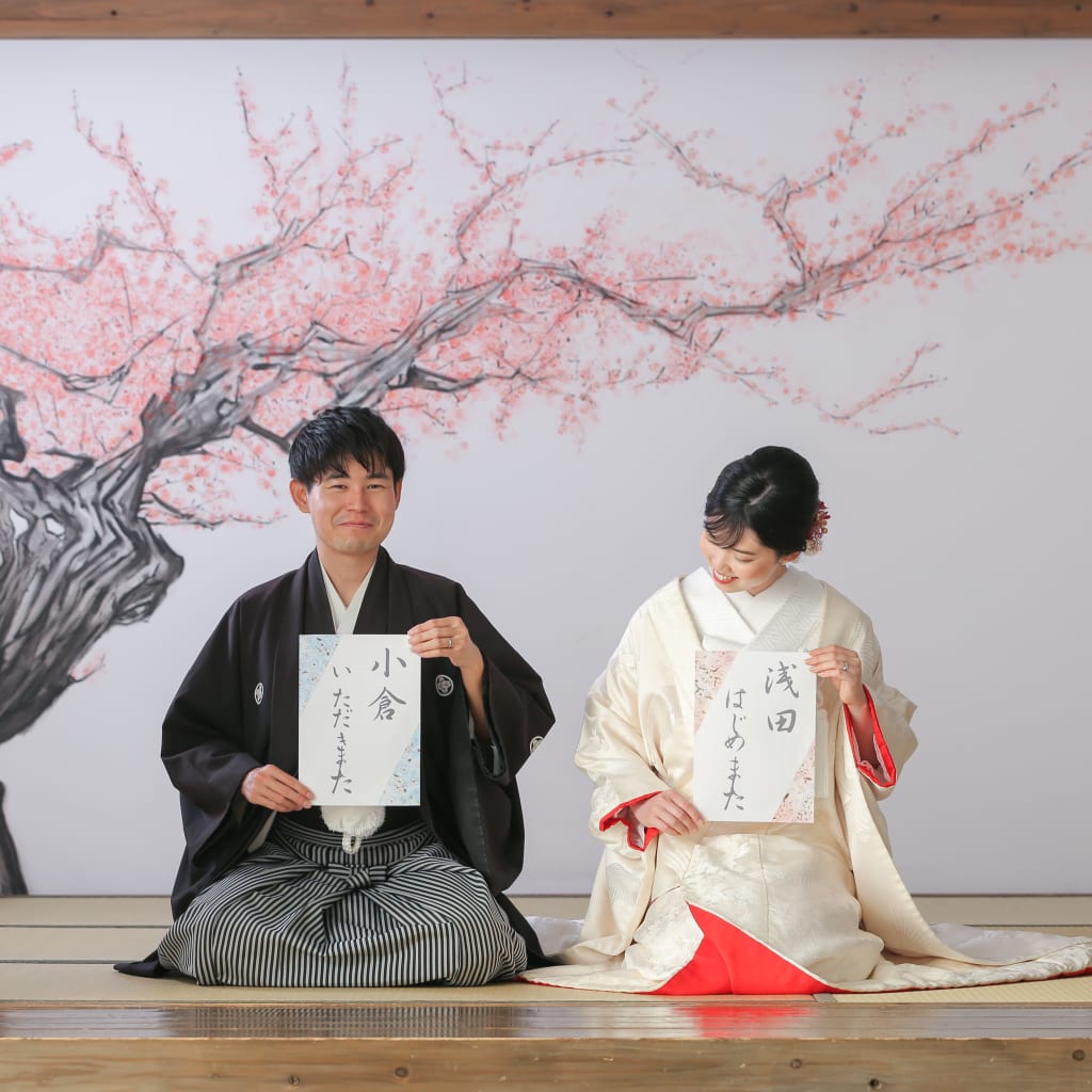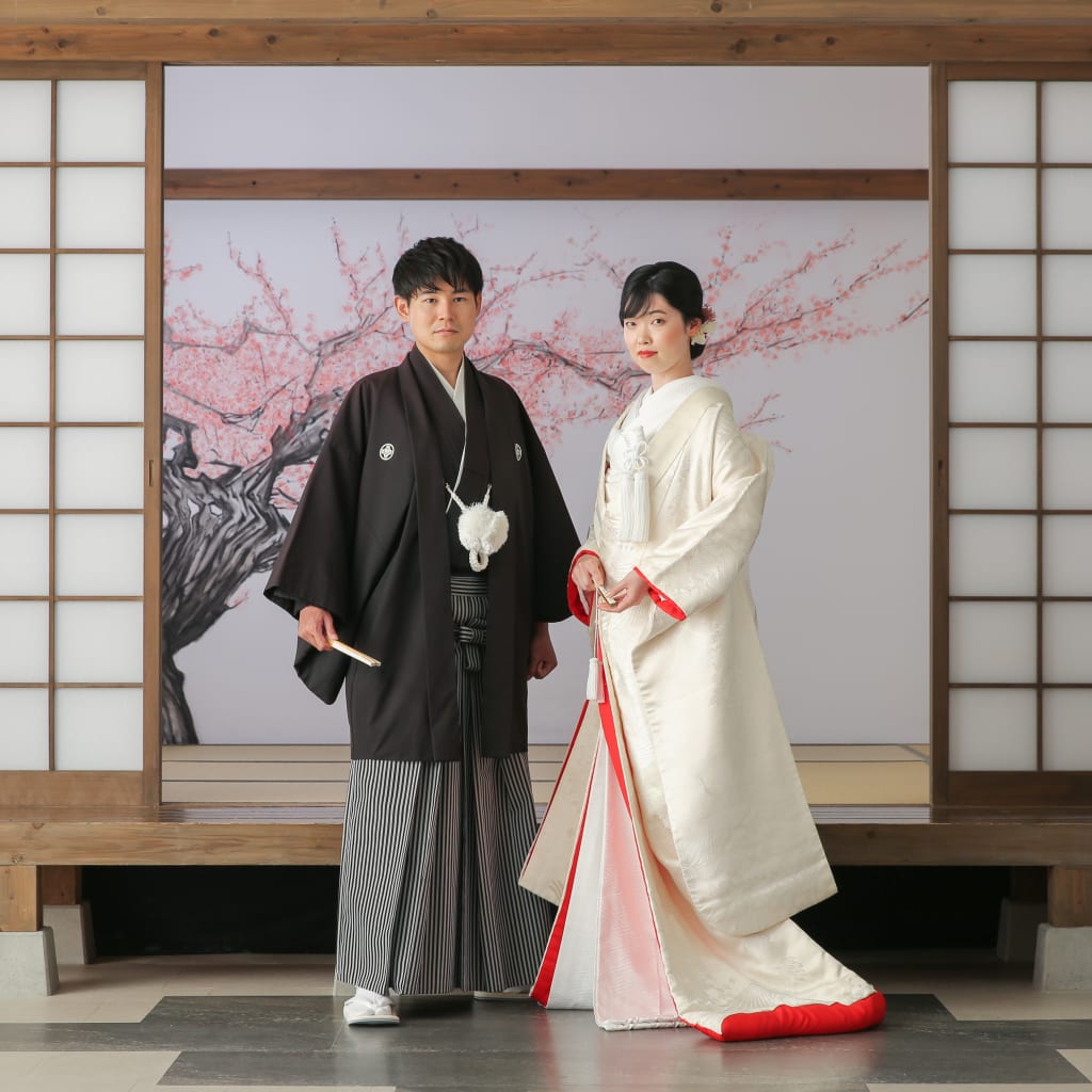 少し緊張感のある最初の内に、かっちりしたカットを撮っていきましょう♪黒紋付と白無垢「赤比翼」、落ち着いた感じが良いですね!