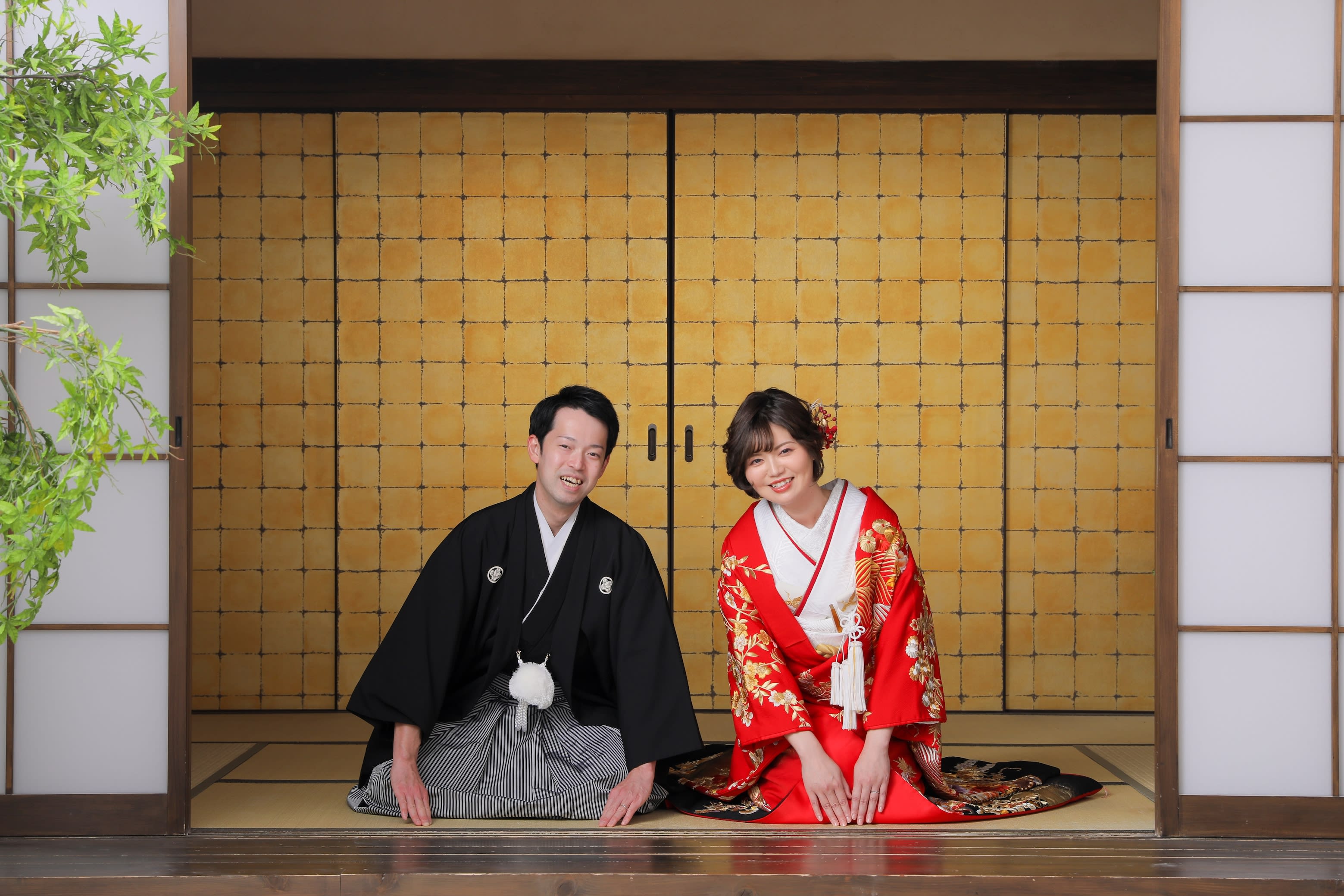 和装といえば!屋内庭園スタジオ!フォーマルなポーズはもちろん、お二人のご要望に合わせていろんな背景・セットで撮影可能です。