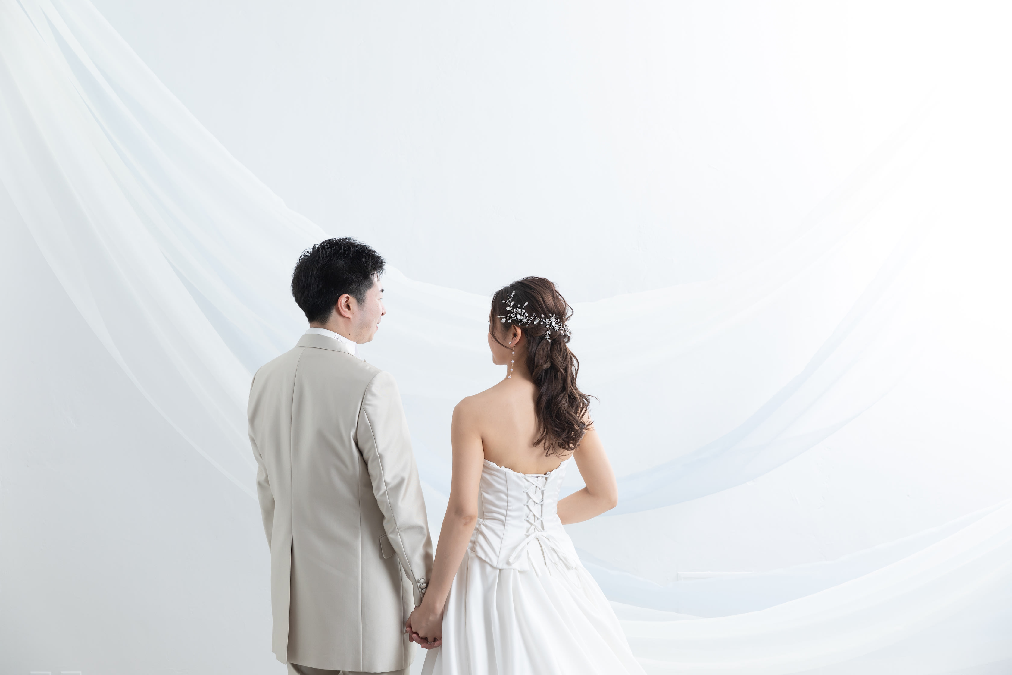 続いては洋装にお着替え!和装とは打って変わってシンプルな背景をお選びいただきました。