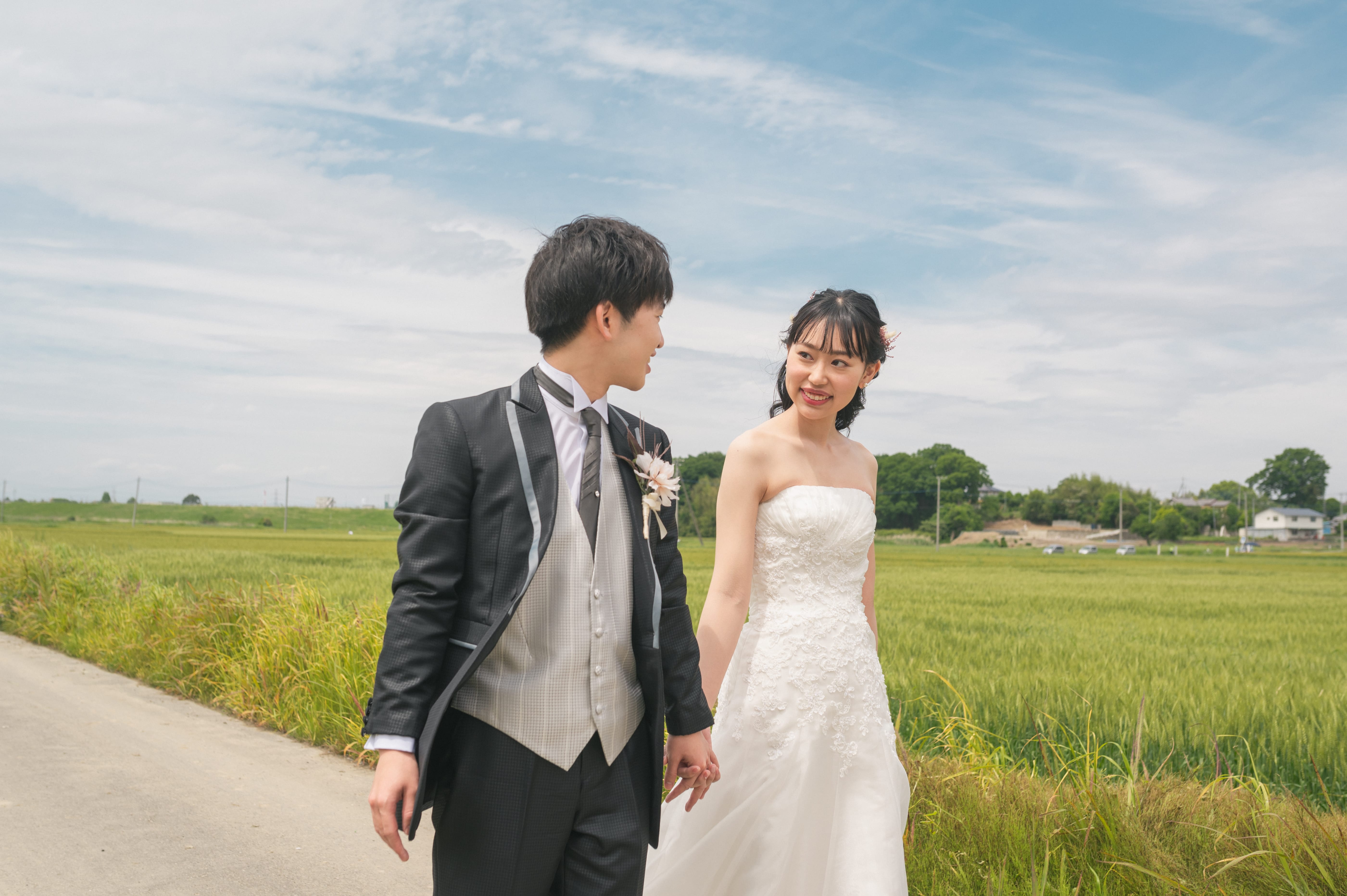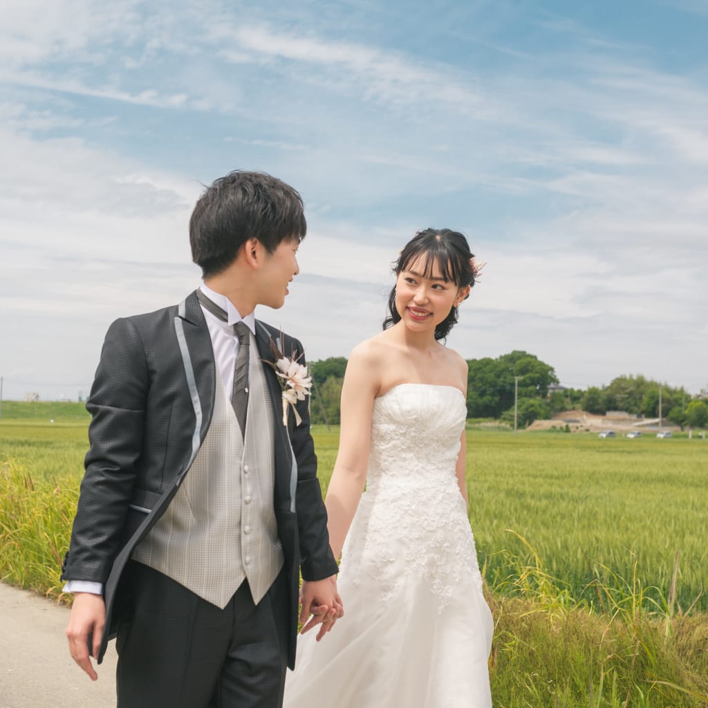 新婦さんの表情を切り取った一枚! のどかな景色と一緒に!