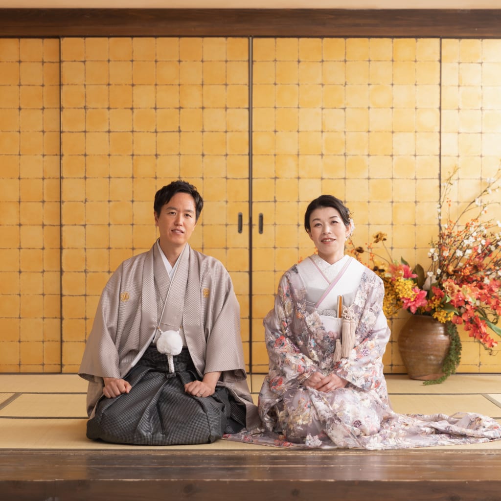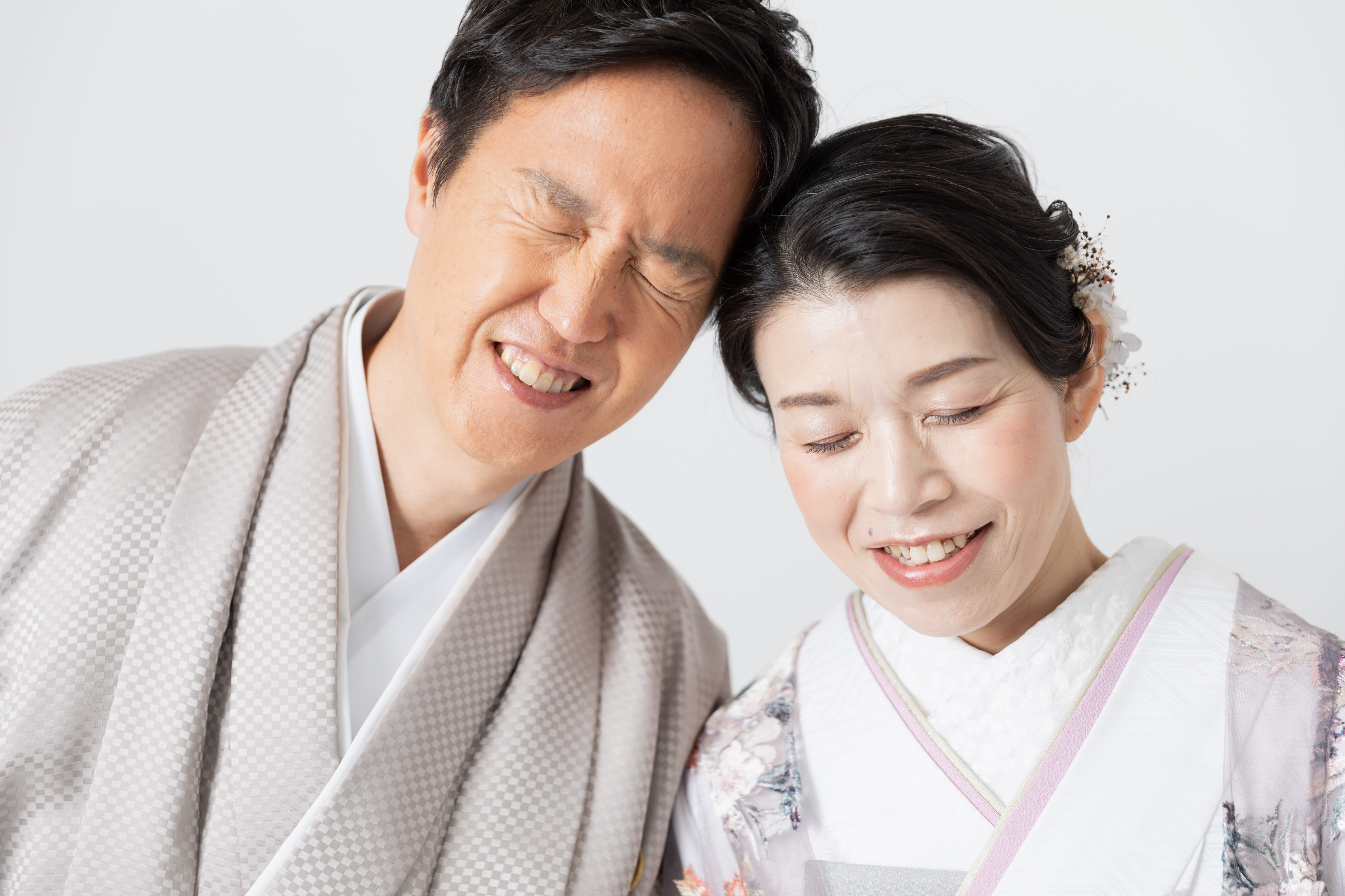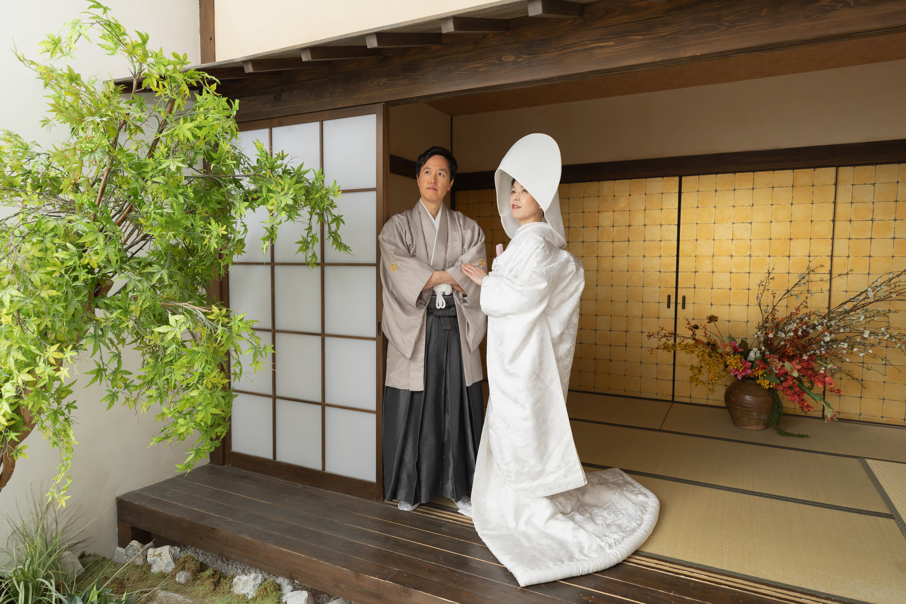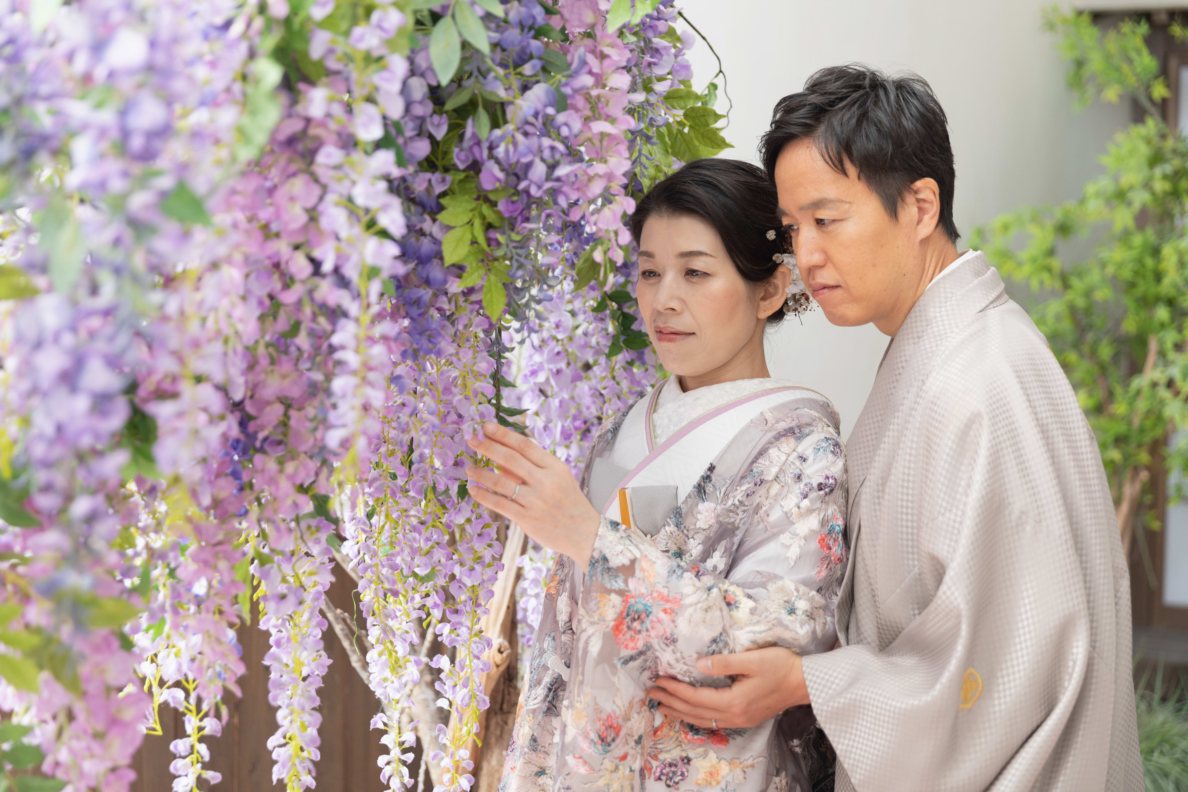 レースの打掛に変更してお二人で手を繋いでぎゅっとくっついて!