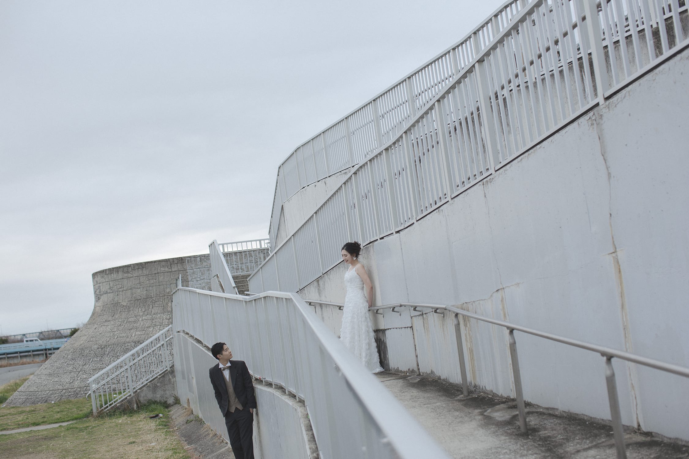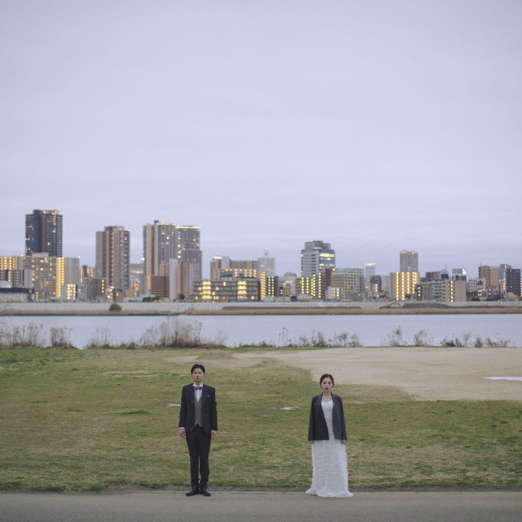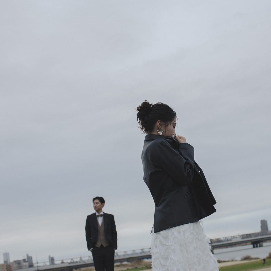 映画のワンシーンのようなウェディングフォトを、大阪の真ん中を流れる淀川の河川敷でも。