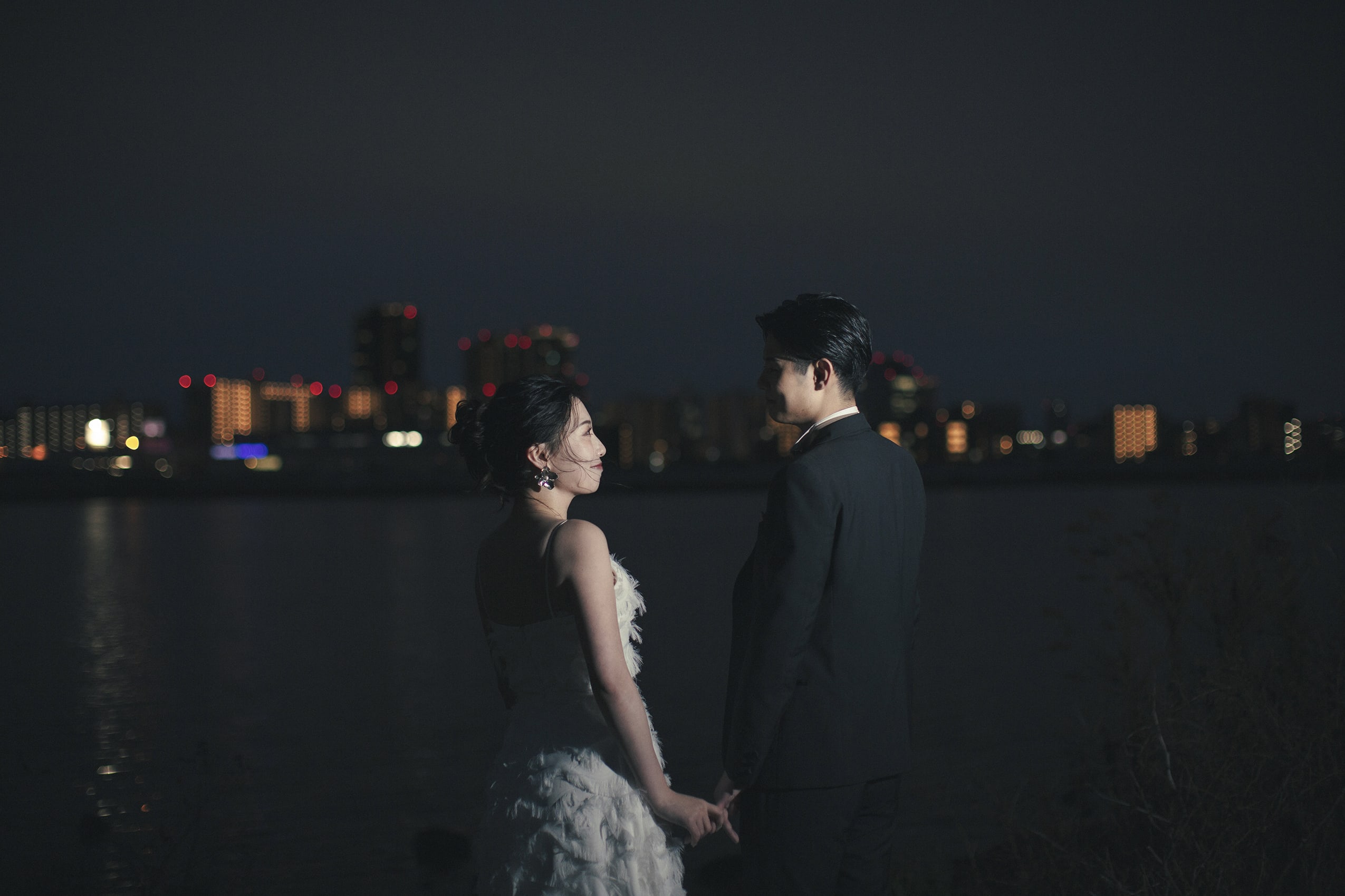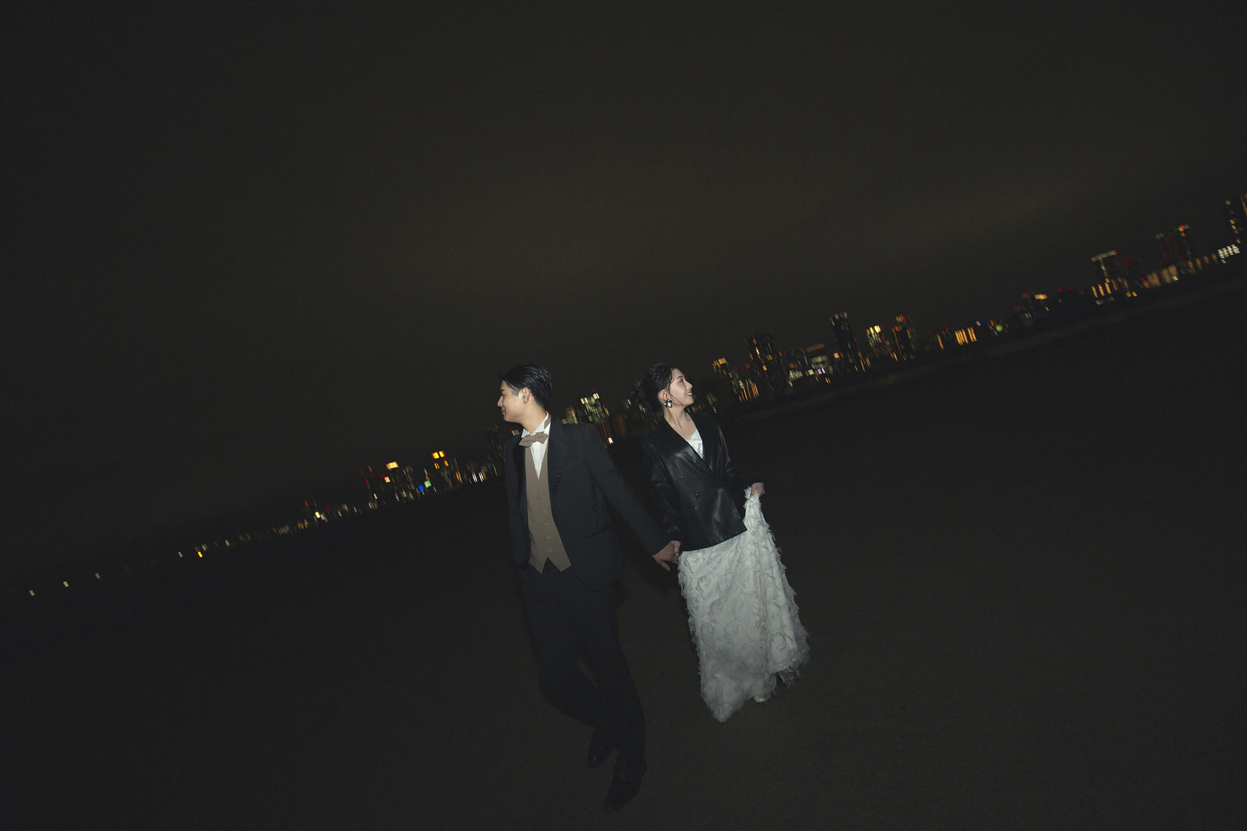 大阪の真ん中、淀川河川敷の夜景でフォトウェディング