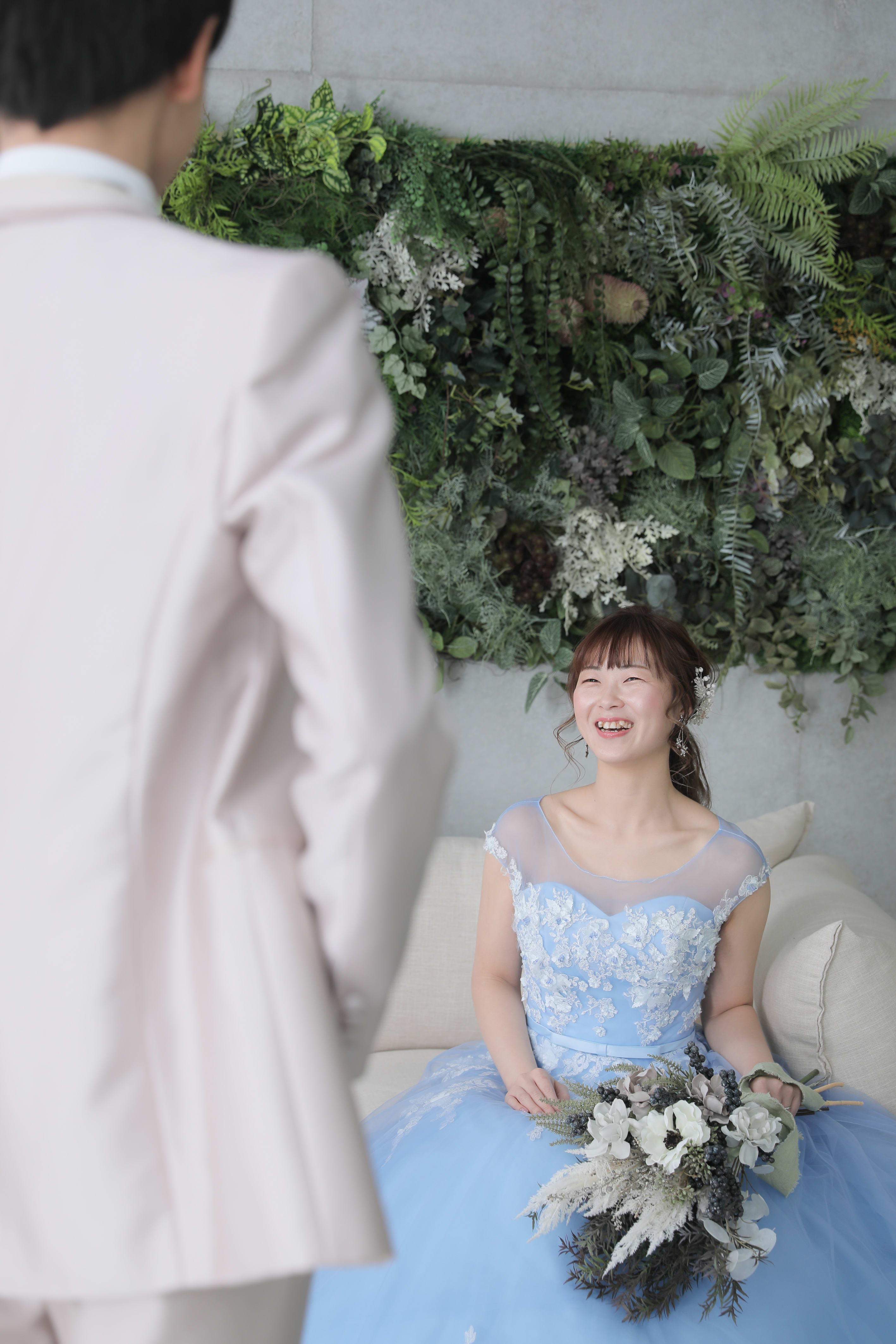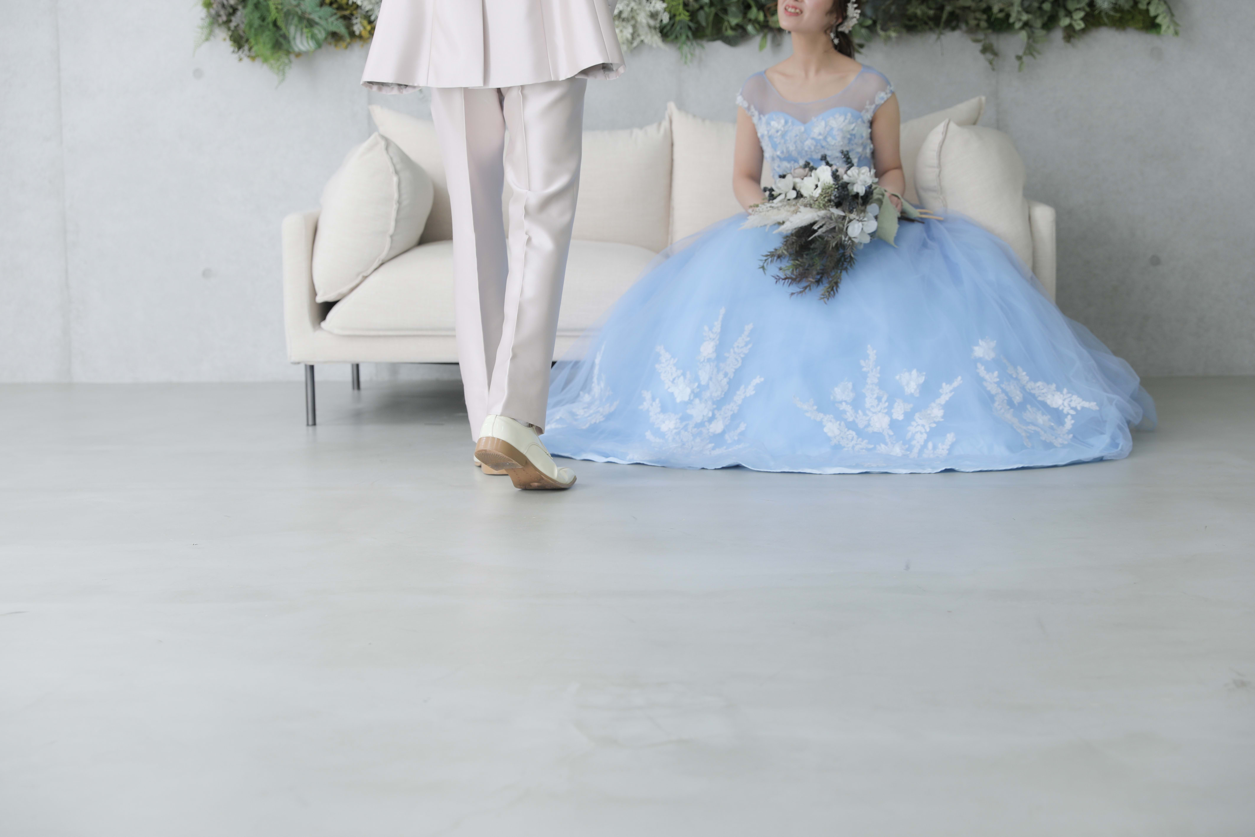爽やかなブルーのカラードレスで