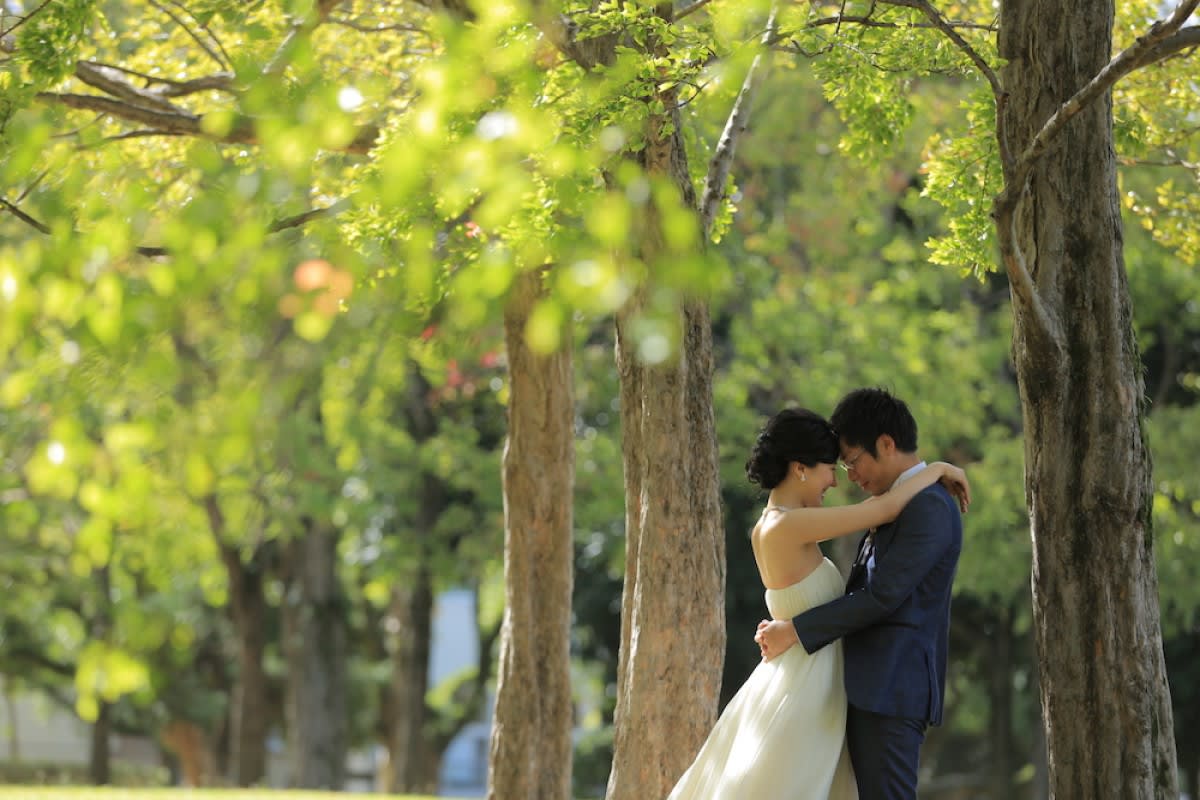 新郎様はデニムのタキシード、新婦様はデニムのジャケットを羽織ってデニムコーデに♡