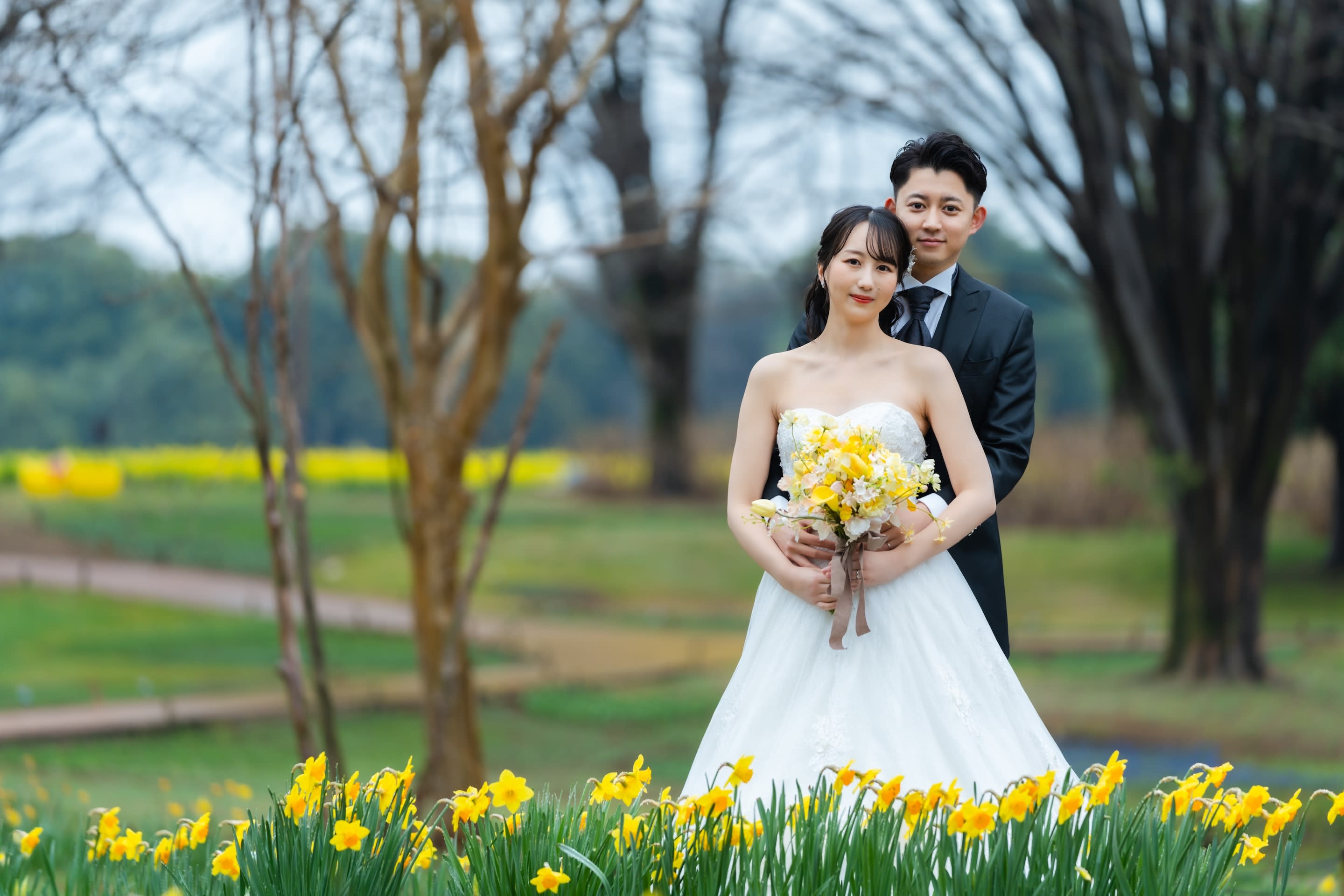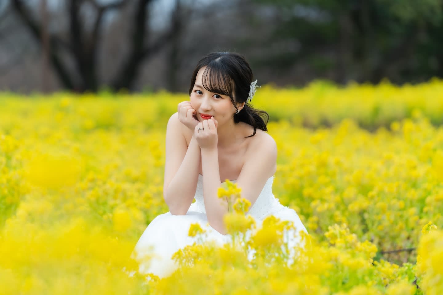下からのアングルで幻想的なお写真も。黄色のブーケが菜の花にマッチしていて可愛いです!