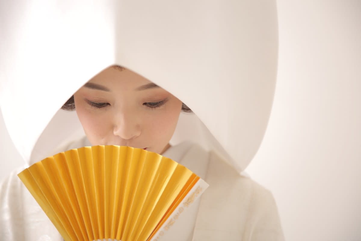 白無垢でも洋髪が主流になってきましたがやっぱり鬘・綿帽子も素敵ですね。 本格和装もリーズナブルに叶います。
