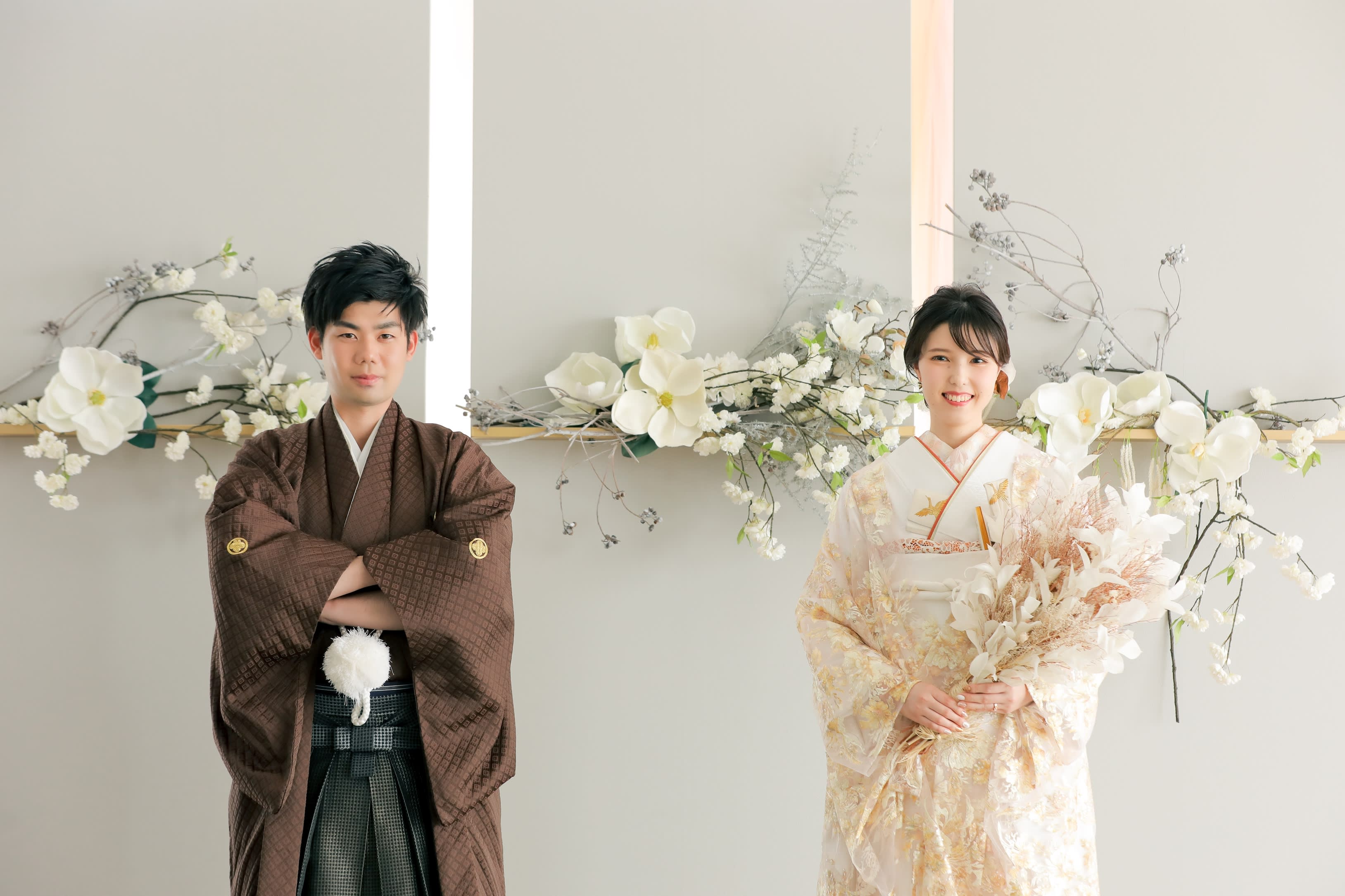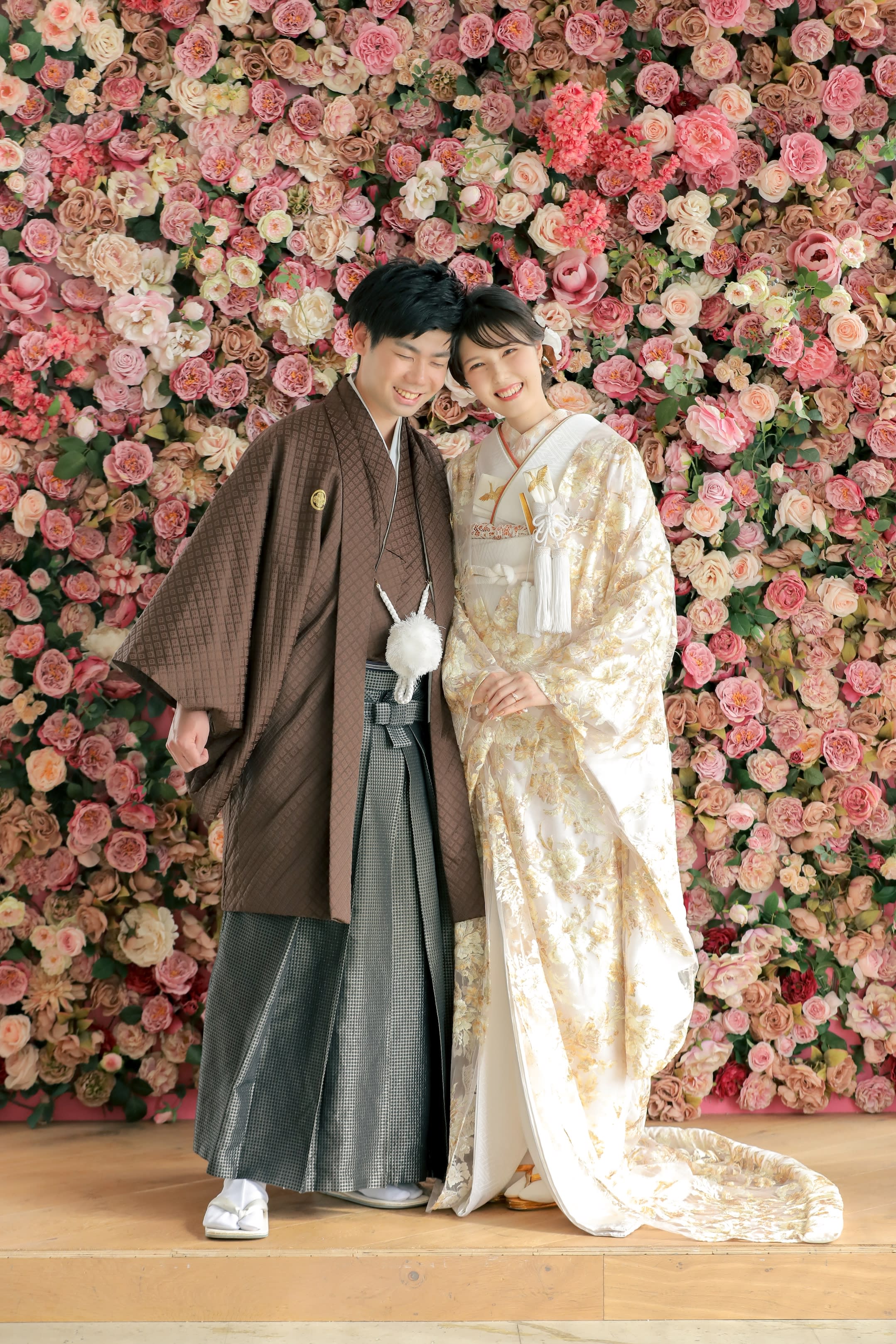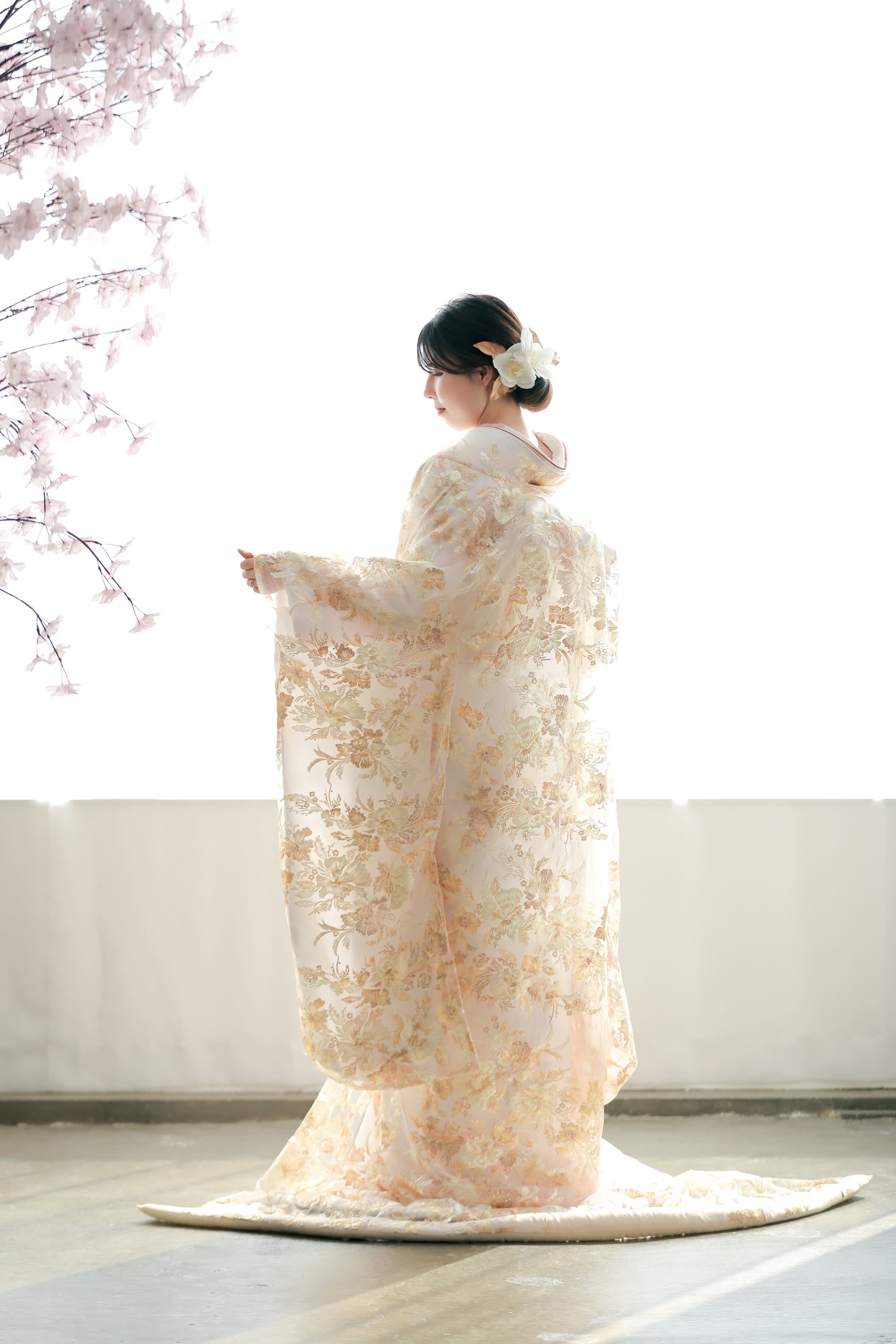 新作のレースの打掛けと、ハウススタジオのお花の背景がとっても可愛かったです!♡