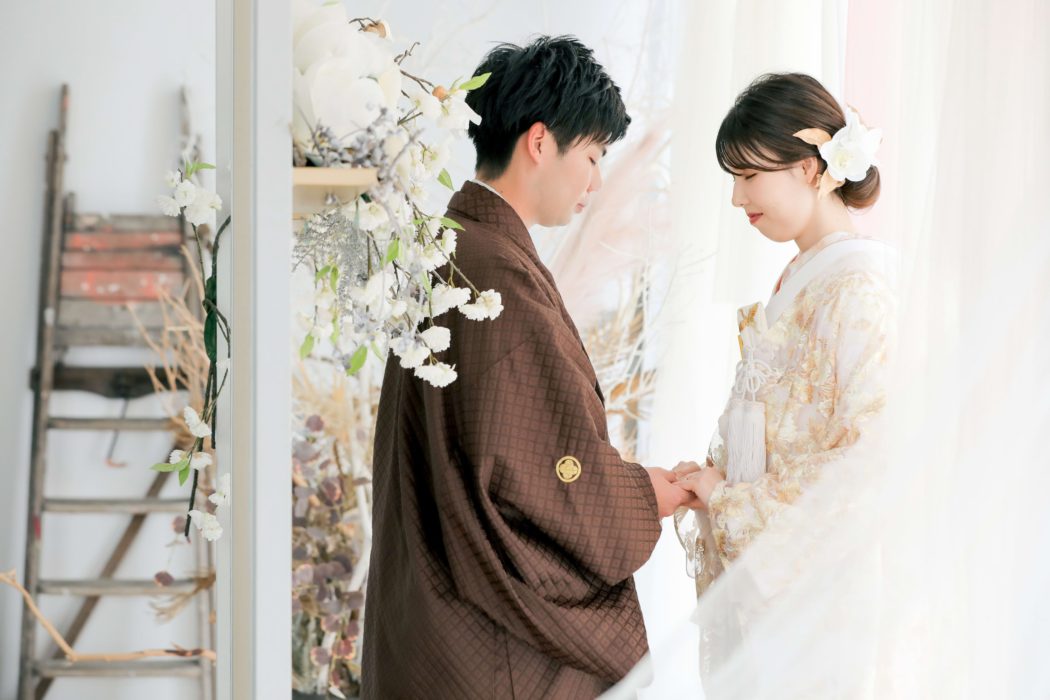 レースの打掛けだけではなく、白無垢もお召しいただきました!可愛いも正統派も、どちらも撮影が叶います☆