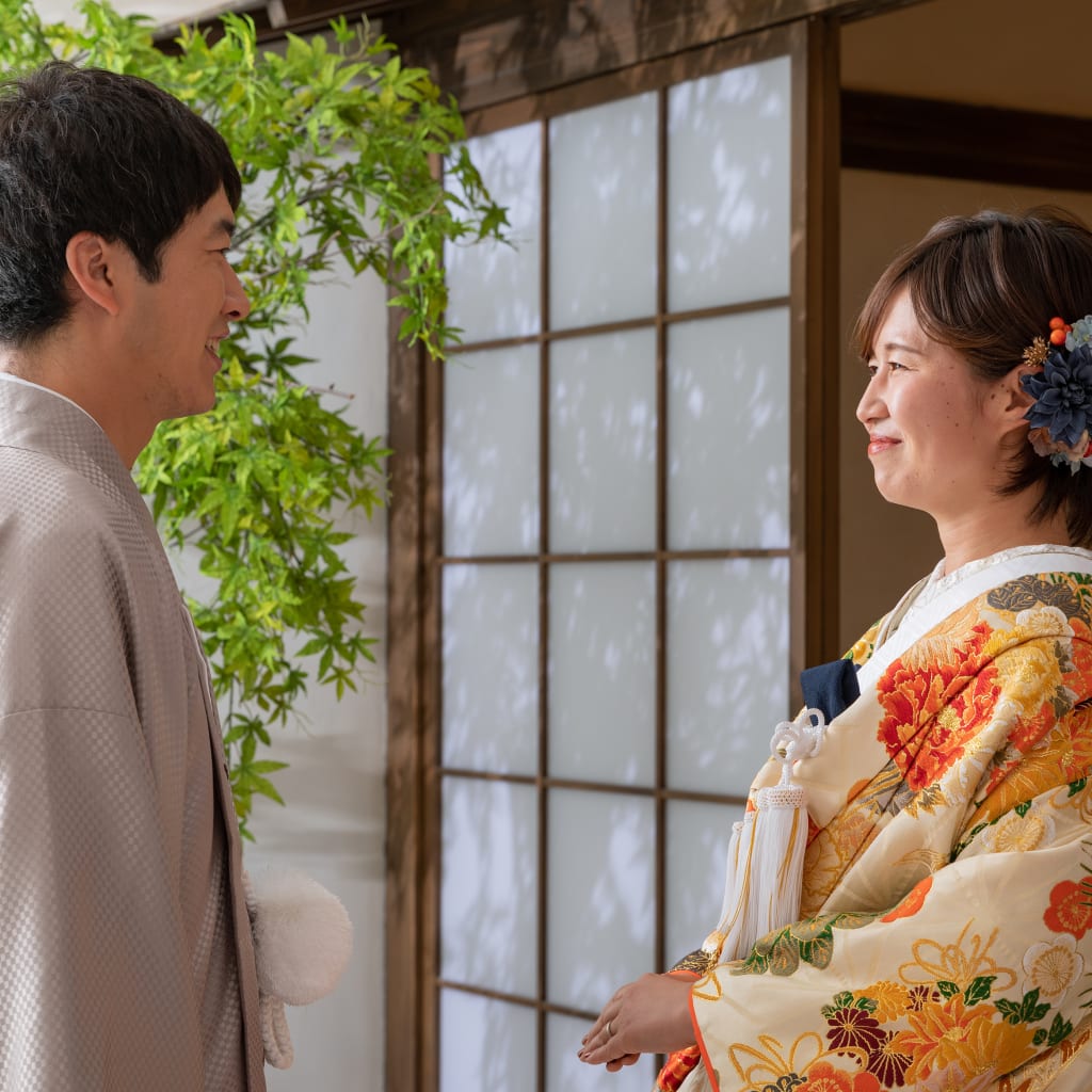 落ち着いた雰囲気の椿の壁ですが、今回は少し可愛く撮ってみました!お二人とも笑顔がとても素敵です!