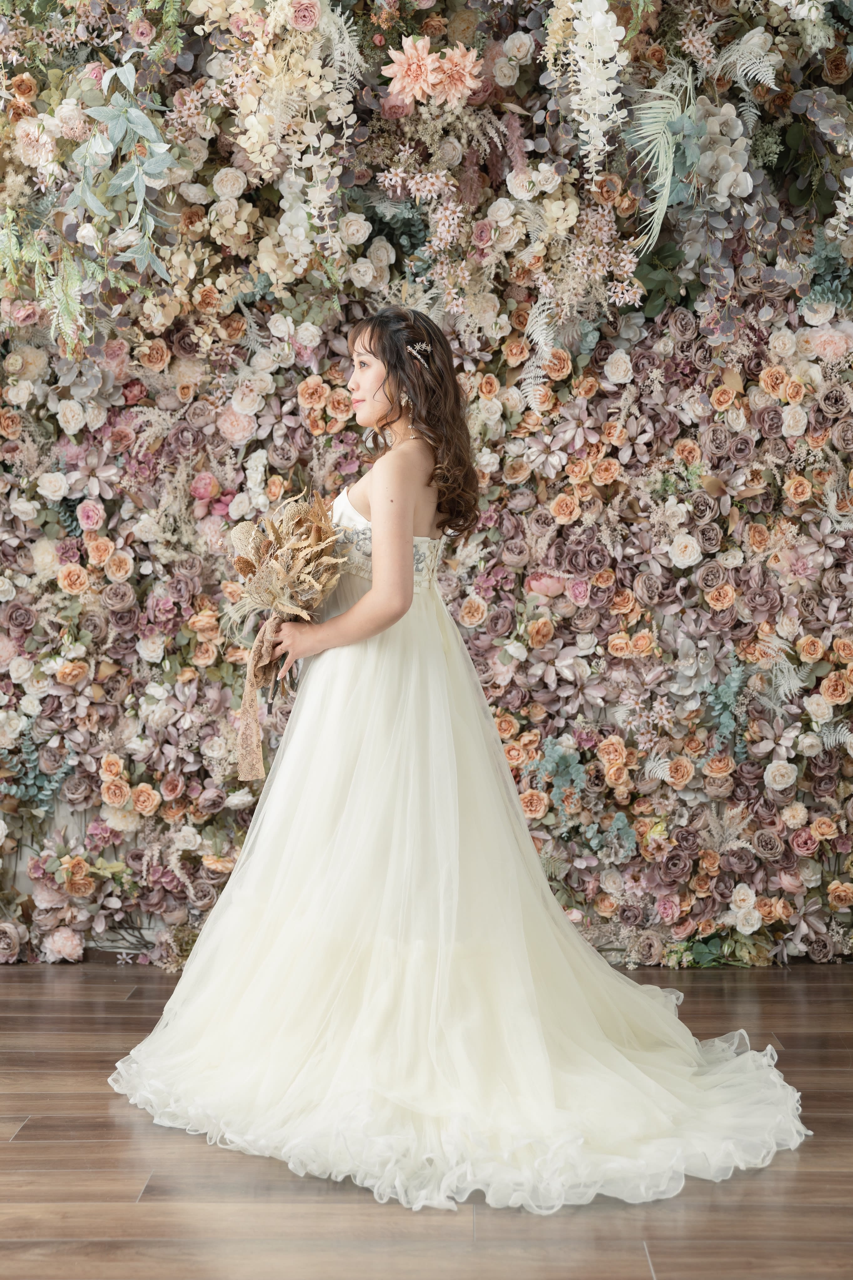 お二人で寄り添ってお鼻こつんのショット。 レースも相まって印象的な1枚に◎