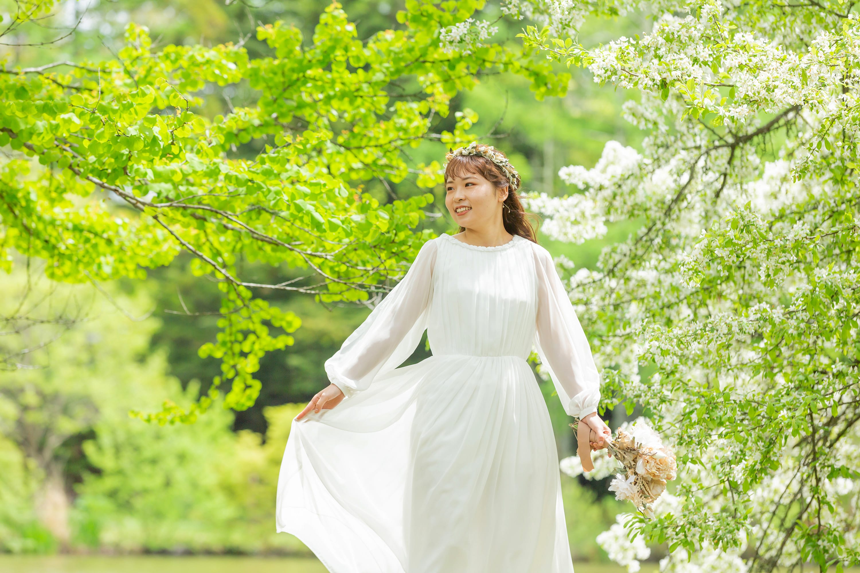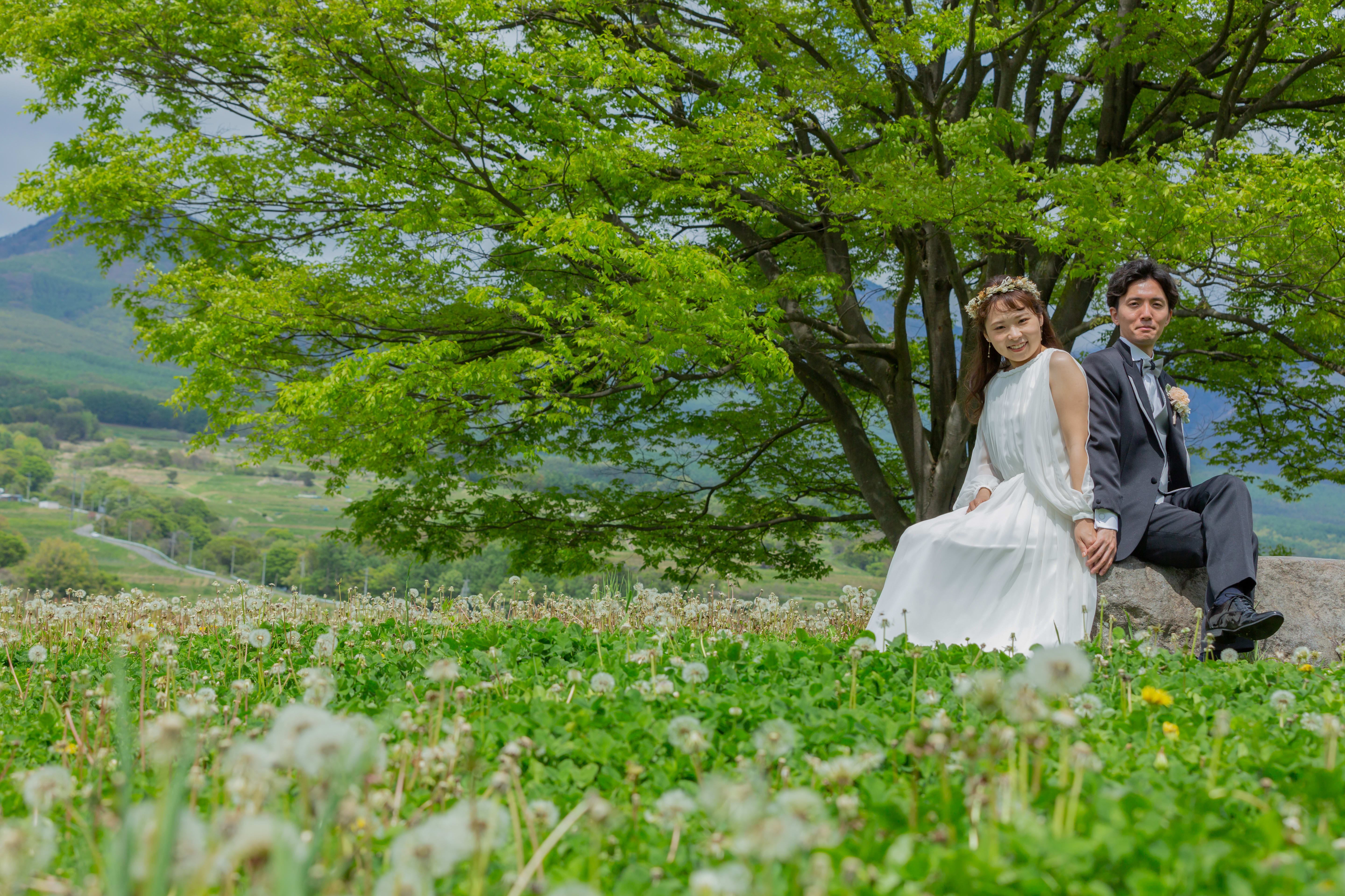 大きな木のところで撮りましょう!晴れたら爽やか。曇るとシックな世界に変わります。