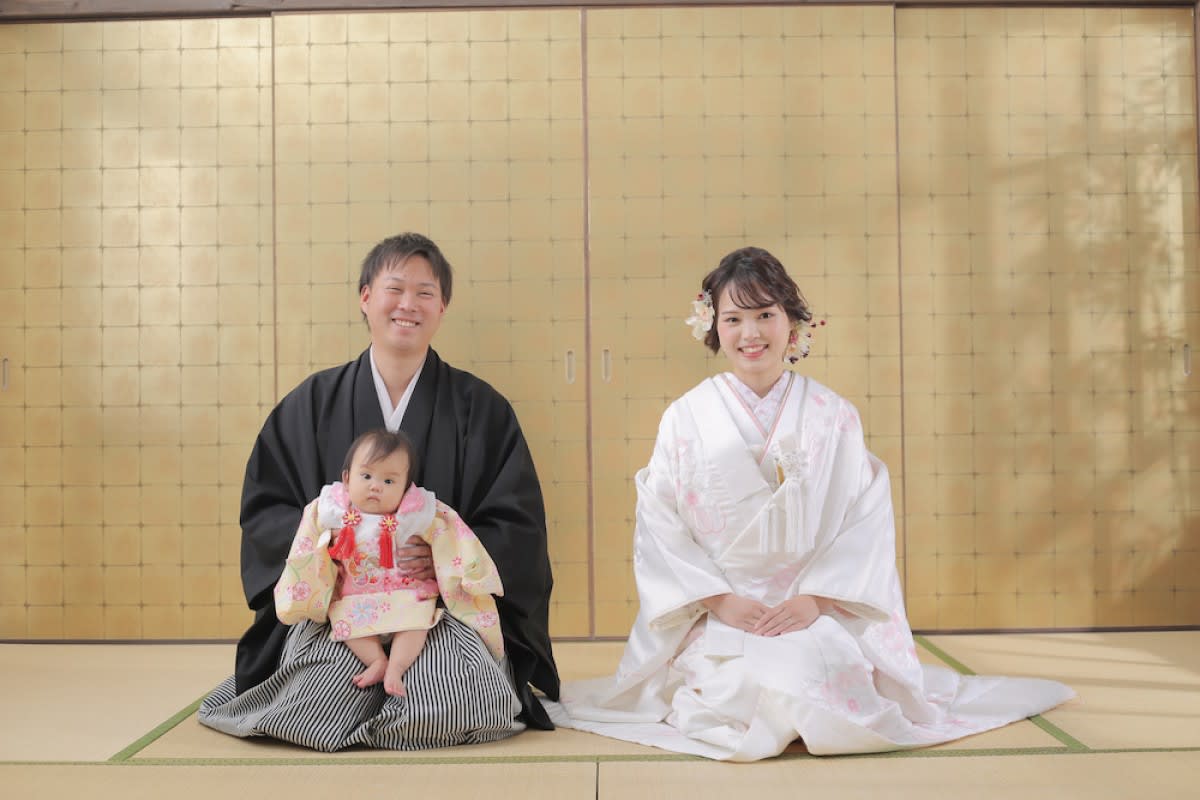 日本庭園はペットの入園NGなので当スタジオでワンちゃんと一緒に撮ることに。