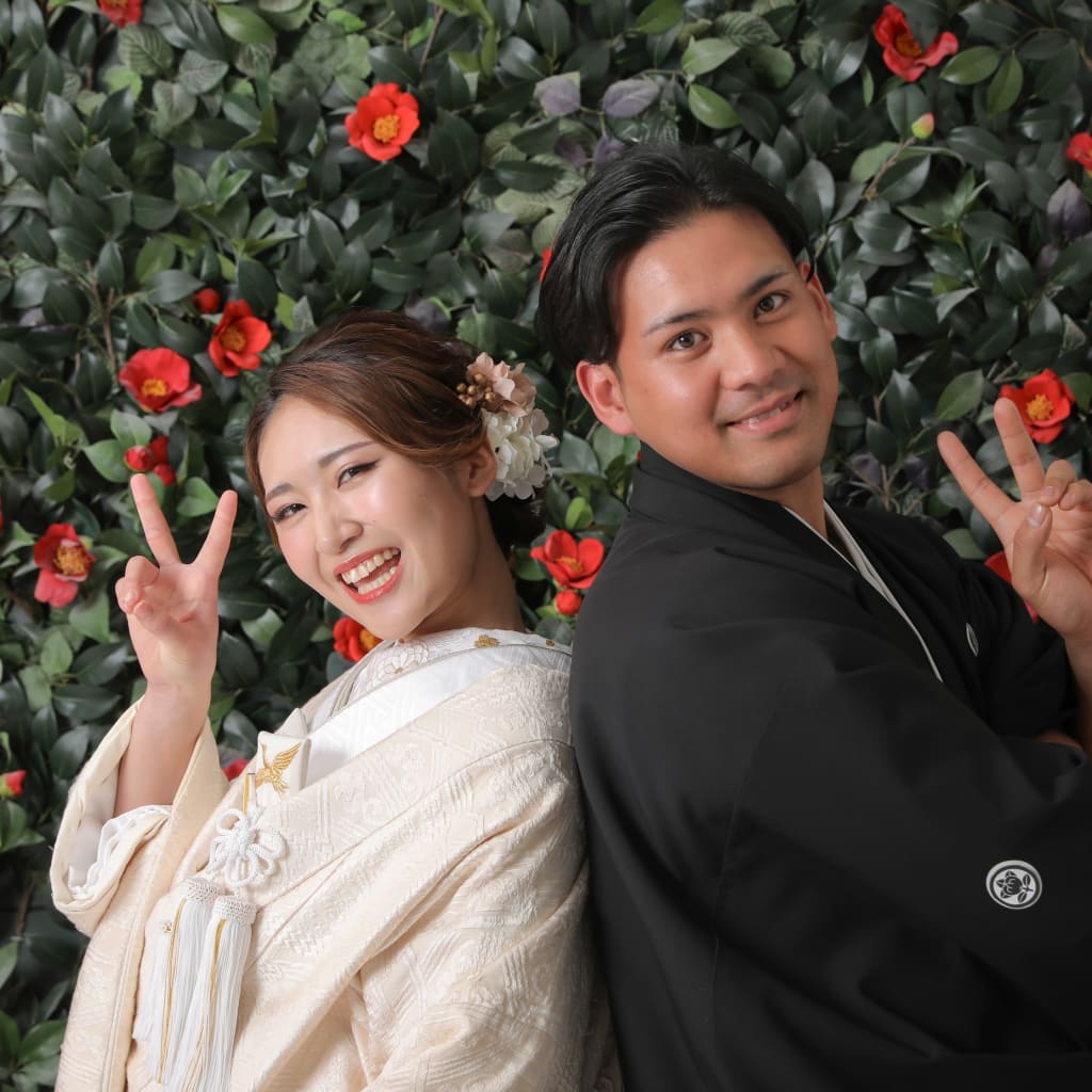 紅白和傘のお写真もお撮りできます!!広いお庭の雰囲気で撮影するのもおすすめです!!