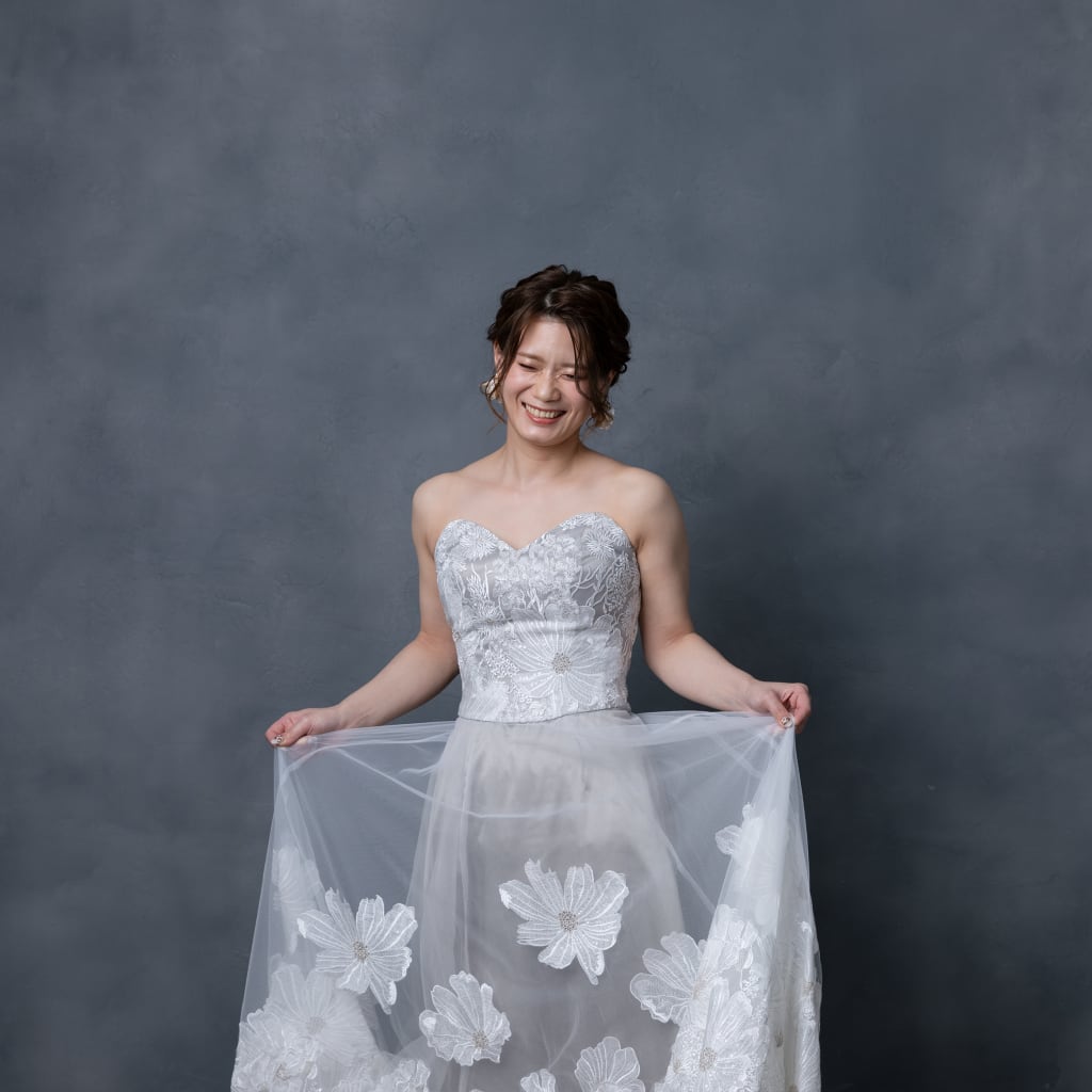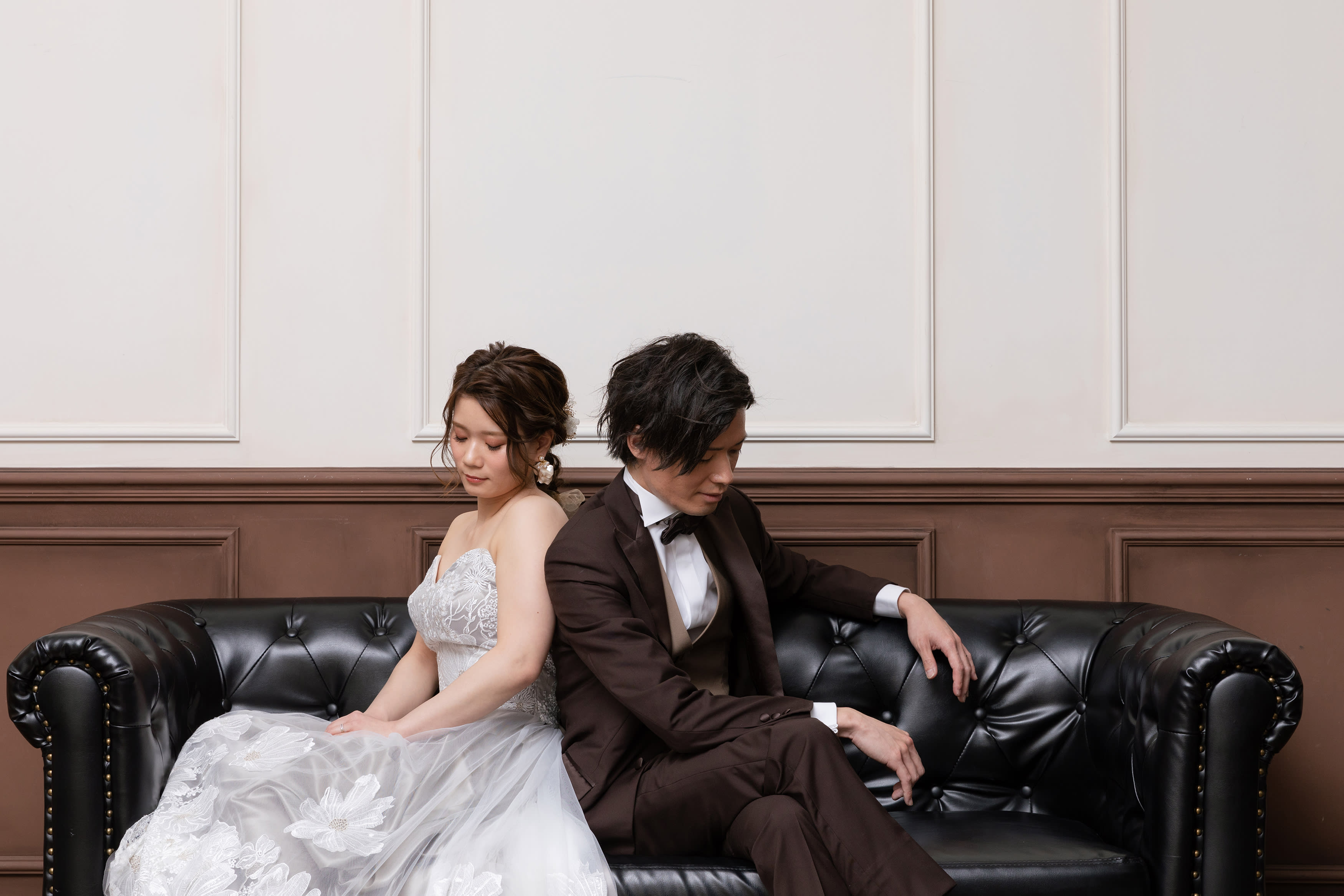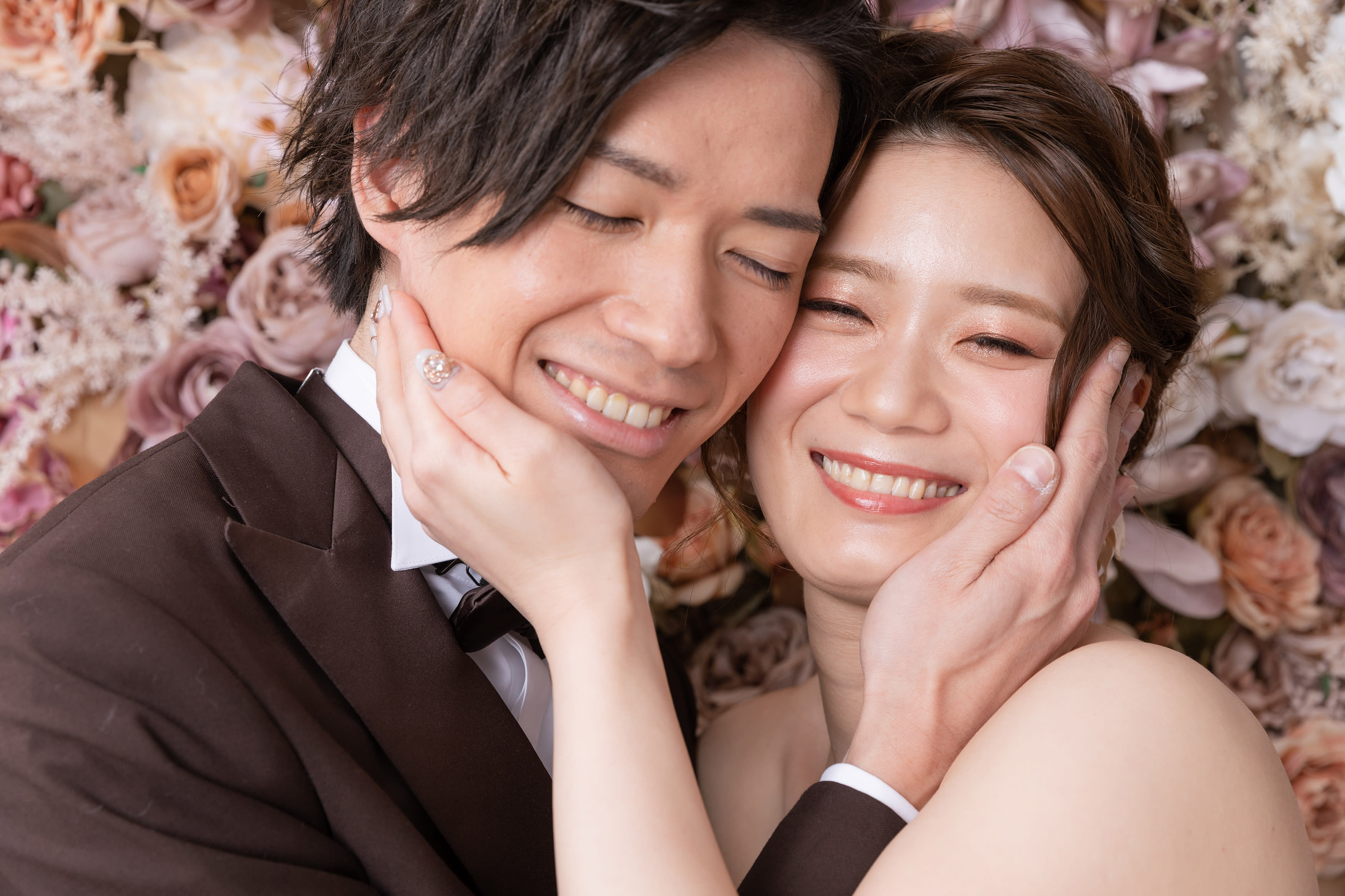 窓の前で、日が差し込んでる雰囲気を作りました!お二人の笑顔がとても素敵です!